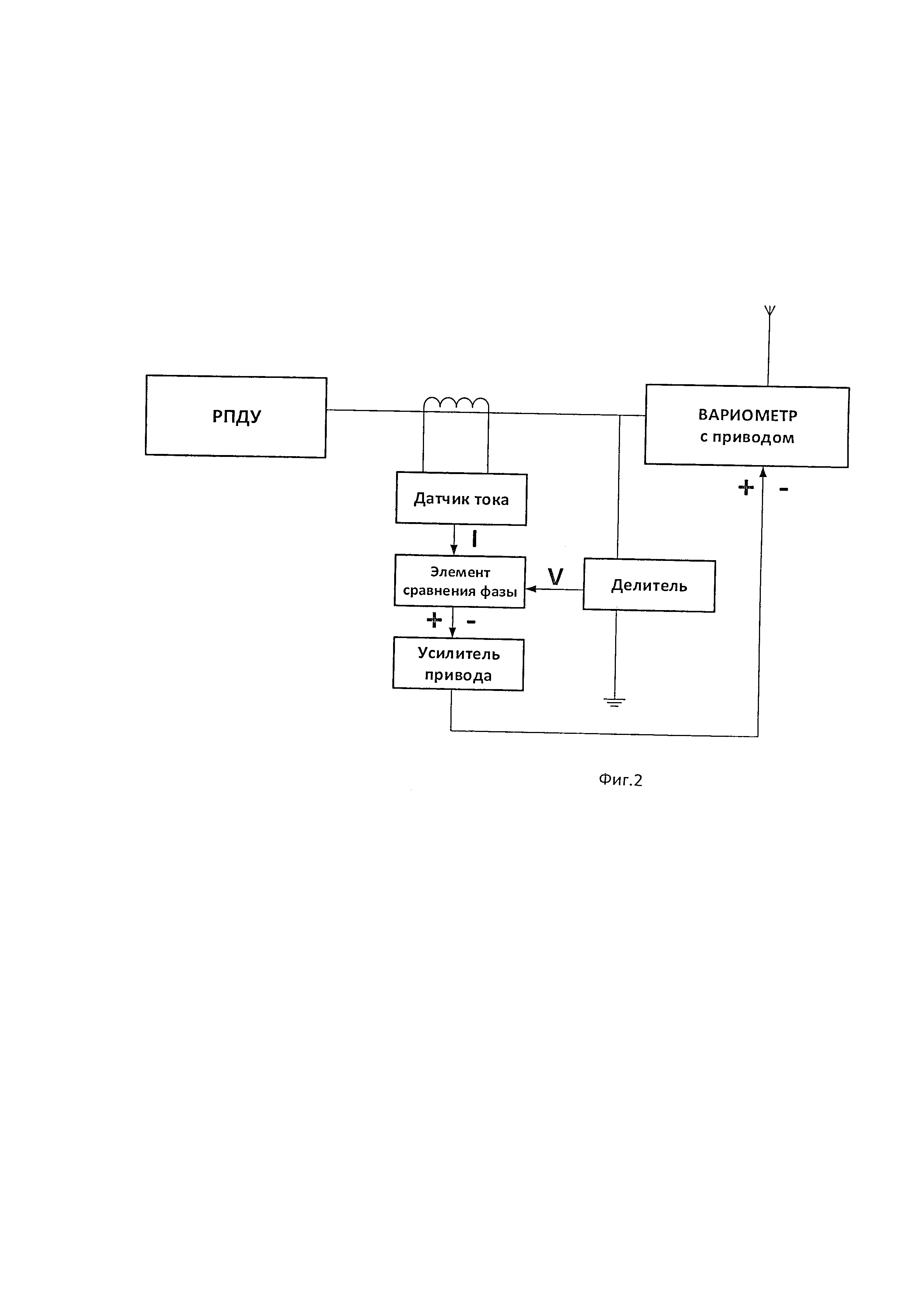 Изобретение относится к технике радиосвязи и может быть использовано в контурных системах мощных передатчиков. Известен вариометр, содержащий ротор и статор, каждый из которых выполнен с магнитными системами, на которых расположены обмотки из последовательно соединенных секций. Известный вариометр состоит из двух круглых дисков из магнитного материала с П-образным сечением. На этих дисках расположена восьмерочная намотка, которая создает в них магнитные потоки, направленные от одного полюсного выступа к другому. При расположении дисков, когда эти потоки направлены от одного выступа к другому. При расположении дисков, когда эти потоки совпадают, общая индуктивность минимальна [1]. Недостатком устройства является то, что обмотки ротора и статора не имеют магнитной экранировки и подвергаются наводкам, что приводит к низкой помехоустойчивости устройства. Наиболее близким к предлагаемому устройству является вариометр, содержащий ротор в виде катушки, размещенной на каркасе, и статор в виде катушки, размещенной на каркасе, ротор установлен внутри статора с возможность вращения внутри статора, причем ось вращения катушки ротора и ось вращения катушки статора взаимно перпендикулярны [2]. Недостатком устройства-прототипа является большое время перестройки с одной частоты на другую. Задача изобретения - сокращение времени перестройки передатчика с одной частоты на другую. Поставленная задача достигается тем, что вариометр, содержащий витки первой и второй катушек, размещенных таким образом, что каркас первой катушки расположен внутри каркаса второй катушки, и установленных с возможностью перемещения поворота первой катушки вокруг оси, согласно изобретению каркасы первой и второй катушек размещены на одной оси с возможностью встречного поворота влево или вправо, при этом ось вращения выполнена из изоляционного материала и закреплена одним концом в основании вариометра, а другим к дополнительно введенной, огибающей каркас второй катушки, балке, фиксирующей положение вариометра, причем перед настройкой на частоту передатчика витки первой и второй катушек принимают исходное положение перпендикулярно друг другу. Балка может быть выполнена любой формы, например П-образной. К одной балке могут быть прикреплены несколько вариометров, выполненных с возможностью одновременного перемещения поворотов катушек. На фиг. представлена предлагаемая конструкция вариометра, содержащая основание 1, каркас первой катушки 2, витки первой катушки 3, каркас второй катушки 4, витки второй катушки 5, ось 6, балка 7. Предлагаемое устройство работает следующим образом. Перед настройкой передатчика на частоту осуществляется коммутация элементов высокочастотного тракта передатчика в соответствии с таблицей настройки на заданную частоту, при этом витки первой 3 и второй 5 катушек вариометра, обеспечивающие согласование выхода передатчика с антенной, устанавливаются в среднее, исходное положение - перпендикулярно друг другу. В этом случае переменная индуктивность вариометра приобретает среднее значение. С подачей мощности в антенну с токового трансформатора («датчик тока») и делителя напряжения («делитель») поступают сигналы на вход фазоиндикатора («элемент сравнения фазы»), где происходит сравнение фаз тока и напряжения. В случае если 