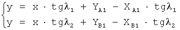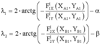 - значения частных производных по X и по Y функции F2(x,y) в точке B1(XB1,YB1) соответственно.