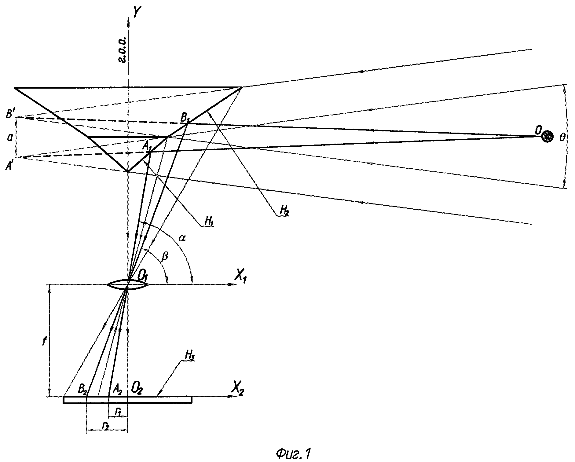 Изобретение относится к панорамным оптическим средствам обнаружения объектов в окружающем пространстве в заданном телесном угле. Известны способы, обеспечивающие формирование изображения с большим полем зрения с тем, чтобы можно было получить как можно больше информации об изменениях, происходящих вокруг. В частности, это касается необходимости распознавания появляющихся объектов с одновременным определением расстояния до них. Для этой цели можно использовать видеокамеру с широкоугольным объективом, например FISH EYE (объектив «рыбий глаз»), но и она имеет недостаточное поле зрения. Известен способ формирования панорамного изображения, предложенный компанией Apple Computer, с использованием обычной 35-мм камеры и программы QuickTime.RTM.VR (QTVR). В соответствии с этим способом камеру, оборудованную широкоугольным объективом (фокусное расстояние составляет 15-18 мм), устанавливают на вращаемый вокруг вертикальной оси штатив и последовательно регистрируют 12 или более снимков через каждые 30 градусов, охватывая, таким образом, круговой обзор. Затем снимки «сшиваются» с помощью специальной программы, формируя панорамное изображение. Однако данный процесс не обеспечивает единовременного режима наблюдения за объектом, т.к. каждый снимок делается в различное время. Кроме того, наличие механического движения камеры также является определенным недостатком. Известен также способ формирования панорамного изображения, в соответствии с которым используют множество плоских отражающих поверхностей совместно с множеством видеокамер, обращенных к ним, причем каждая камера рассматривает чуть больше 90 градусов 50-градусного телесного угла визуализируемого пространства (см. статью V.S. Nalwa "A True Omni-Directional Viewer", AT&T Bell Laboratories Technical Memorandum, BL0115500-960115-01, Jan. 1996, а также европейские патентные заявки №№0982946, 1056292, заявитель: LUCENT TECHNOLOGIES INC., изобретатель V.S. Nalwa, МПК G02B 27/14, G03B 37/00). Недостаток способа в необходимости иметь множество воспринимающих датчиков, чтобы одновременно охватить 360-градусное изображение окружающего пространства. Известны также способы формирования панорамного изображения окружающего пространства на поверхности единого фотоприемного устройства, воспринимающего через оптическую систему переноса изображения свет, отраженный от зеркальной поверхности, имеющей форму тела вращения. При этом тело вращения может иметь различные формы. В частности, это может быть конус или сфера (см., например, международную заявку WO 2001/044870, приоритет от 14.12.2000, заявитель UNIVERSITE DE MONTREAL, МПК G03B 37/00, 37/04). Подобный способ, описанный в патенте США №6542184, приоритет от 08.03.2000, МПК G02B 13/06, G03B 37/00, Driscoll Jr. et al., может быть, в числе прочего, использован для определения местонахождения объекта в окружающем пространстве на зарегистрированном панорамном изображении. Этот способ и выбран прототипом заявляемого способа. Сущность известного способа заключается в формировании на светочувствительной поверхности плоского многоэлементного фотоприемника панорамного изображения наблюдаемого участка окружающего пространства с помощью имеющей форму тела вращения выпуклой светоотражающей поверхности, направляющей отраженный от нее свет из окружающего пространства к оптической системе переноса наблюдаемого участка окружающего пространства на светочувствительную поверхность фото