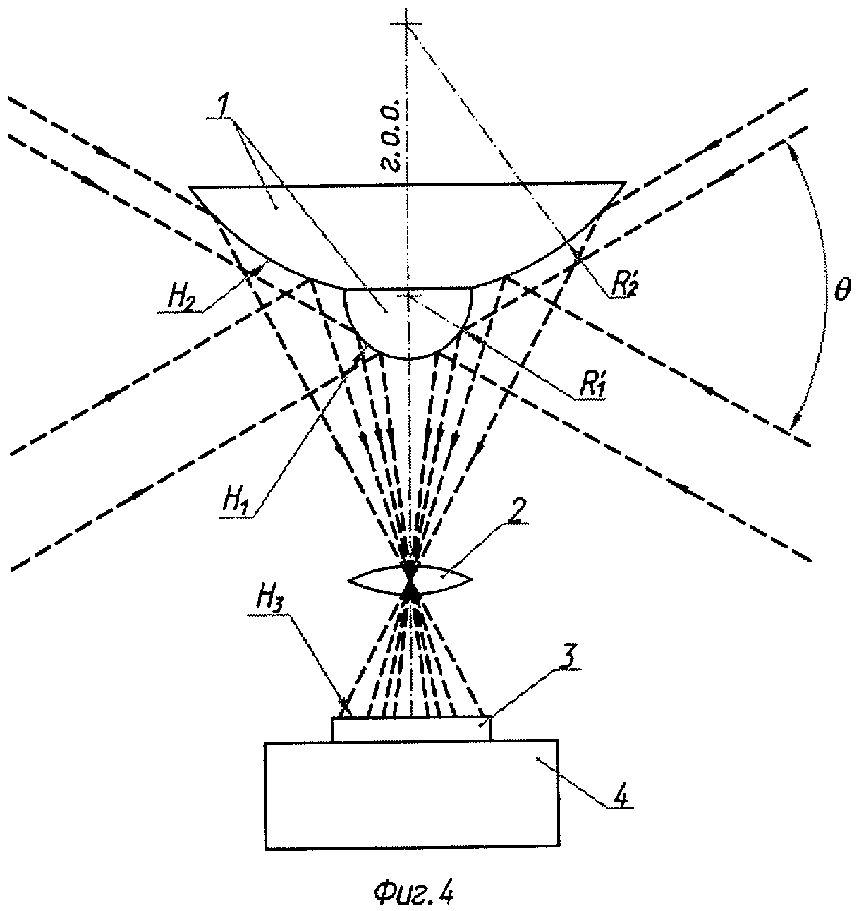 переходит во вторую сферическую поверхность (Н2) с большим радиусом
