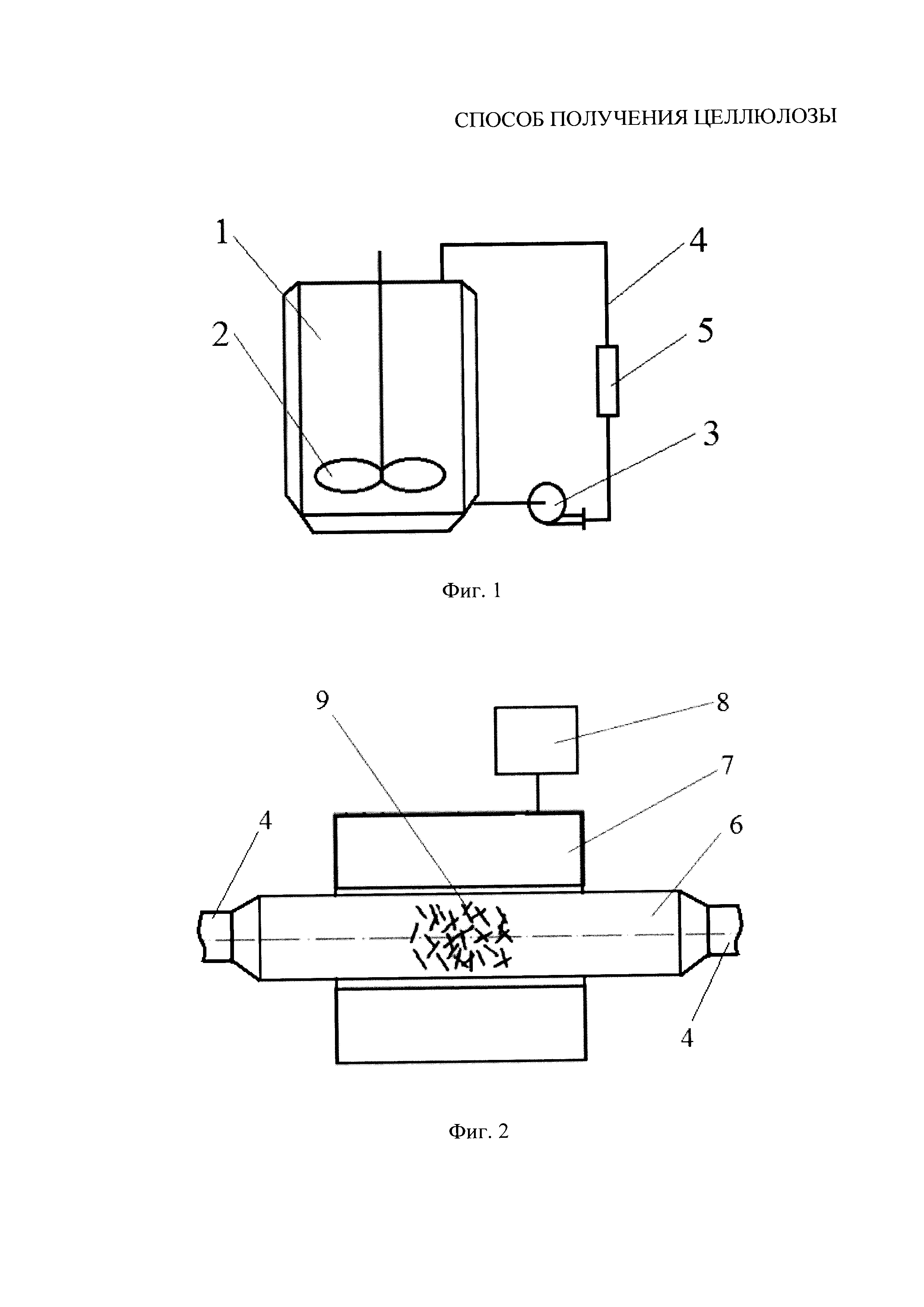 1. Способ получения целлюлозы, включающий дробление и очистку целлюлозосодержащего материала, варку в щелочном растворе, термомеханохимическую активацию целлюлозосодержащего материала, промывку, отбелку, промывку и сушку, отличающийся тем, что варку целлюлозосодержащего материала совмещают с термомеханохимической активацией, которую проводят вне емкости варки непрерывно в возвратном потоке с использованием ультразвукового поля и/или потоком анизотропных ферромагнитных тел. 2. Способ по п. 1, отличающийся тем, что объем щелочного раствора целлюлозосодержащего материала, перемещаемого из емкости варки, за время операции щелочной варки превышает объем раствора, находящегося в емкости варки. 3. Способ по п. 1, отличающийся тем, что термомеханохимическую активацию выполняют в одном аппарате или в нескольких, установленных последовательно.