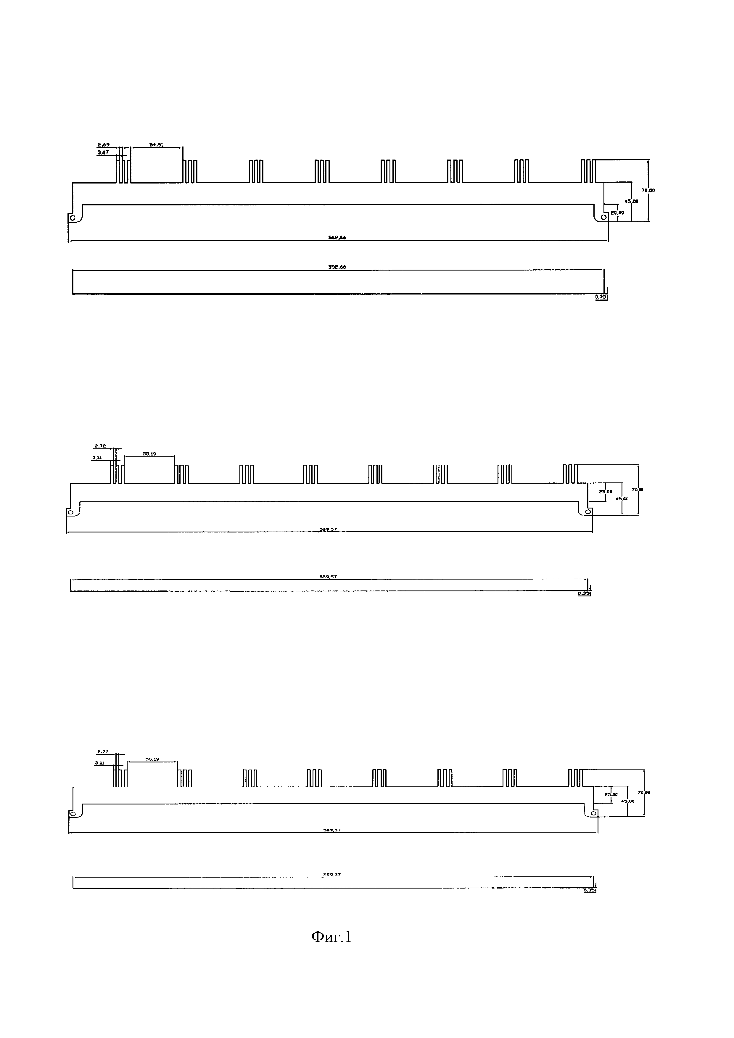 Изобретение относится к электротехнике, преимущественно к изготовлению электрических машин. Оно может быть использовано, например, в двигателе тягового электропривода и мотор-колесе с совмещенной обмоткой «Славянка». Известен способ соединения выводов секций или катушек обмоток электрических машин, заключающийся в параллельном или последовательном соединении выводов между собой с помощью сварки или пайки их с последующим изолированием путем обмотки вручную лентой или надевания изолирующих трубочек. Этот способ трудоемок, отличается низким качеством соединения и большим расходом электроизоляционных материалов. Известны способ и устройство соединения (а.с. СССР №249456, опубл. 15.11.75, бюл. №42 - аналог и прототип), снижающие объем ручного труда и расход материалов при одновременном повышении качества и надежности соединения выводов, при этом отпадает надобность в обвязке благодаря прочности соединения и отсутствию на лобовых частях изолированных соединений и катушек. В этом способе на торце статора размещают соосно шайбы из электрокартона с отверстиями, в них устанавливают медные перемычки в виде проволочных скоб, спинки которых зажаты кольцевыми частями шайб, а концы выводят наружу и с помощью сварки соединяют с выводами катушек и сетью питания. Недостаток этого способа заключается в том, что в случае совмещенных обмоток (звезда в треугольнике) и большого числа пар полюсов, например, 2p=16 и более, использование указанного способа с технической точки зрения затруднено, а большое количество необходимых скоб увеличивает толщину лобовой части до неприемлемого уровня. Технический результат предлагаемого изобретения заключается в повышении эксплуатационных характеристика синхронной машины за счет выравнивания величин электрического сопротивления секций и катушек обмотки. Кроме того, снижается трудоемкость сборки обмотки статора за счет сварки или пайки выводов секций или катушек, возможной механизации и автоматизации, повышается надежность соединений и теплоотвод обмотки. Указанный технический результат достигается тем, что устройство для соединения электрических элементов машины электрической вращающейся включает изолирующие слои, проводники между ними и контактные соединения (отводы) контактов. Устройство многослойное, в отличие от прототипа содержит пластинчатые проводники, разделенные изолирующими слоями в виде сэндвич-структуры. Устройство имеет цилиндрическую форму в виде обечайки при соосном монтаже ее на корпус машины или форму плоского кольца при монтаже ее на торце корпуса и соответственно фазам питающей цепи состоит как минимум из трех проводящих слоев. Монтаж устройства желательно осуществлять с обеспечением теплового контакта с корпусом. Для первого варианта монтажа плоскостная развертка изолирующих слоев имеет вид прямоугольника (Фиг. 1), для второго варианта каждый из этих слоев имеет вид шайбы. Проводящие слои имеют контактные лепестки (отводы), соединенные с обмоткой и другими электрическими элементами машины и выступающие за пределы одного из внешних краев изолирующих слоев (Фиг. 2, 3) напротив соответствующих фазных выводов секций и катушек обмотки, а также вблизи других элементов машины так, что каждый проводящий слой из указанных первых трех является общей цепью каждой фазы и 