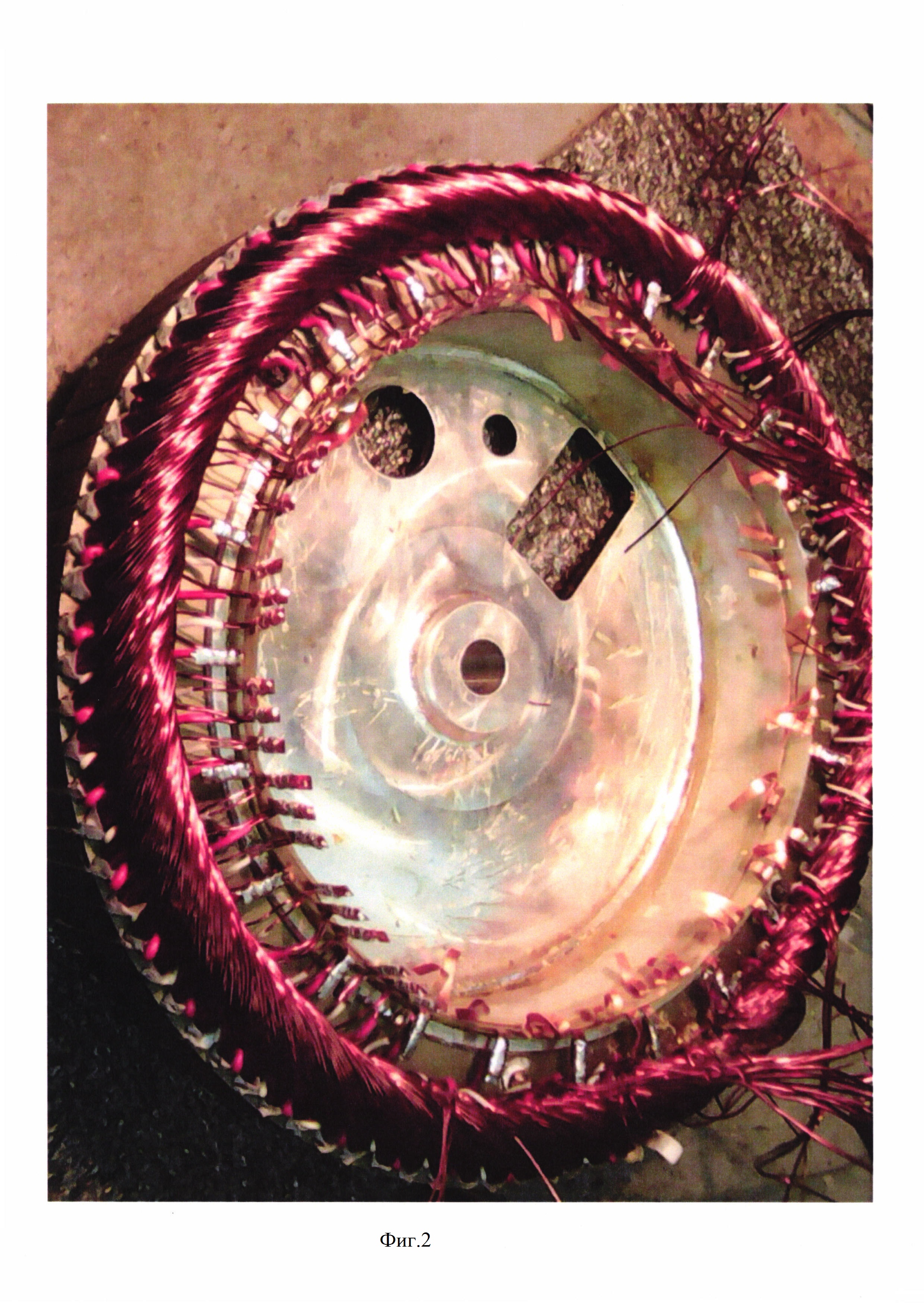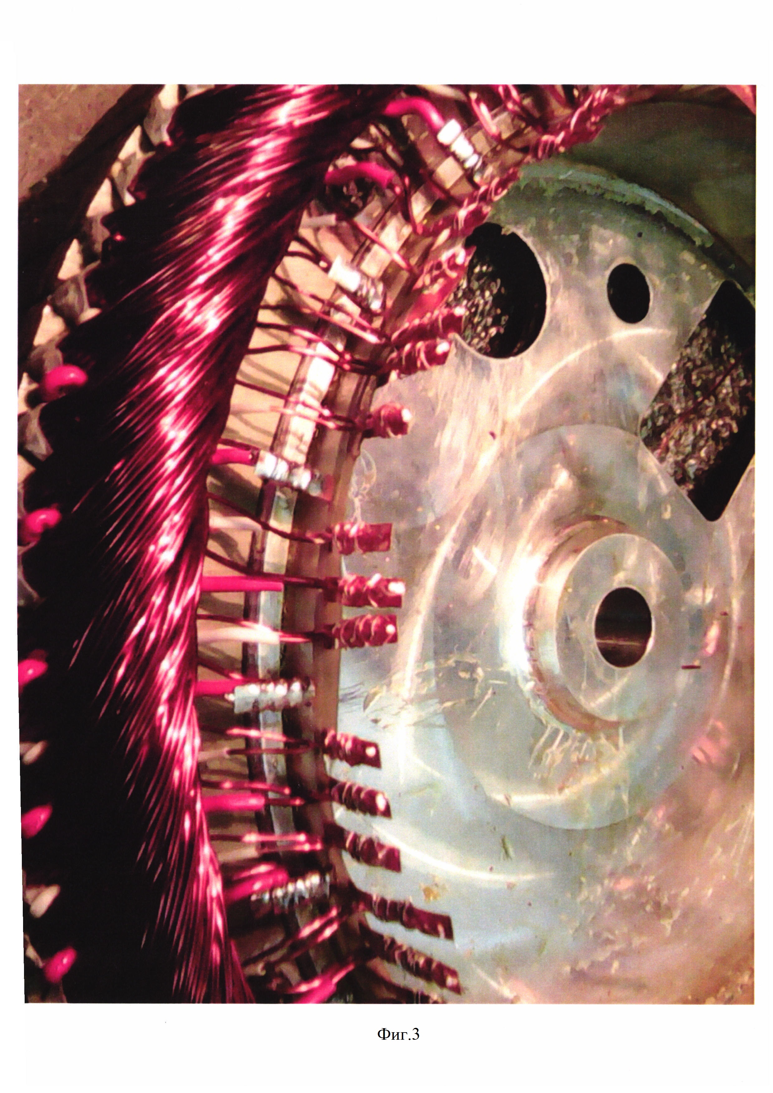 1. Устройство для электрического соединения элементов схемы машины электрической вращающейся, включающее изолирующие слои, проводники между ними и контактные соединения (отводы) контактов, отличающееся тем, что устройство многослойное, содержит пластинчатые проводники, разделенные изолирующими слоями в виде сэндвич-структуры, иимеет цилиндрическую форму в виде обечайки при соосном монтаже ее на корпус машины или форму плоского кольца при монтаже ее на торце корпуса и соответственно фазам питающей цепи состоит как минимум из трех проводящих слоев, при этом для первого варианта монтажа плоскостная развертка каждого из изолирующих слоев имеет вид прямоугольника, для второго варианта каждый из этих слоев имеет вид шайбы, причем проводящие слои имеют контактные лепестки (отводы), соединенные с обмоткой и другими электрическими элементами машины и выступающие за пределы одного из внешних краев изолирующих слоев напротив соответствующих фазных выводов секций и катушек обмотки, а также вблизи других элементов машины так, что каждый проводящий слой из указанных первых трех является общей цепью каждой фазы и через соответствующий лепесток подключен к одному из фазных вводов питающей цепи, количество прочих проводящих слоев и, соответственно, лепестков определяется количеством сигнальных и других элементов машины, соединенных с проводящими слоями. 2. Устройство по п. 1, отличающееся тем, что при наличии в обмотке схемы «звезда» оно содержит дополнительно проводящий слой для соединения нулевой точки «звезды».