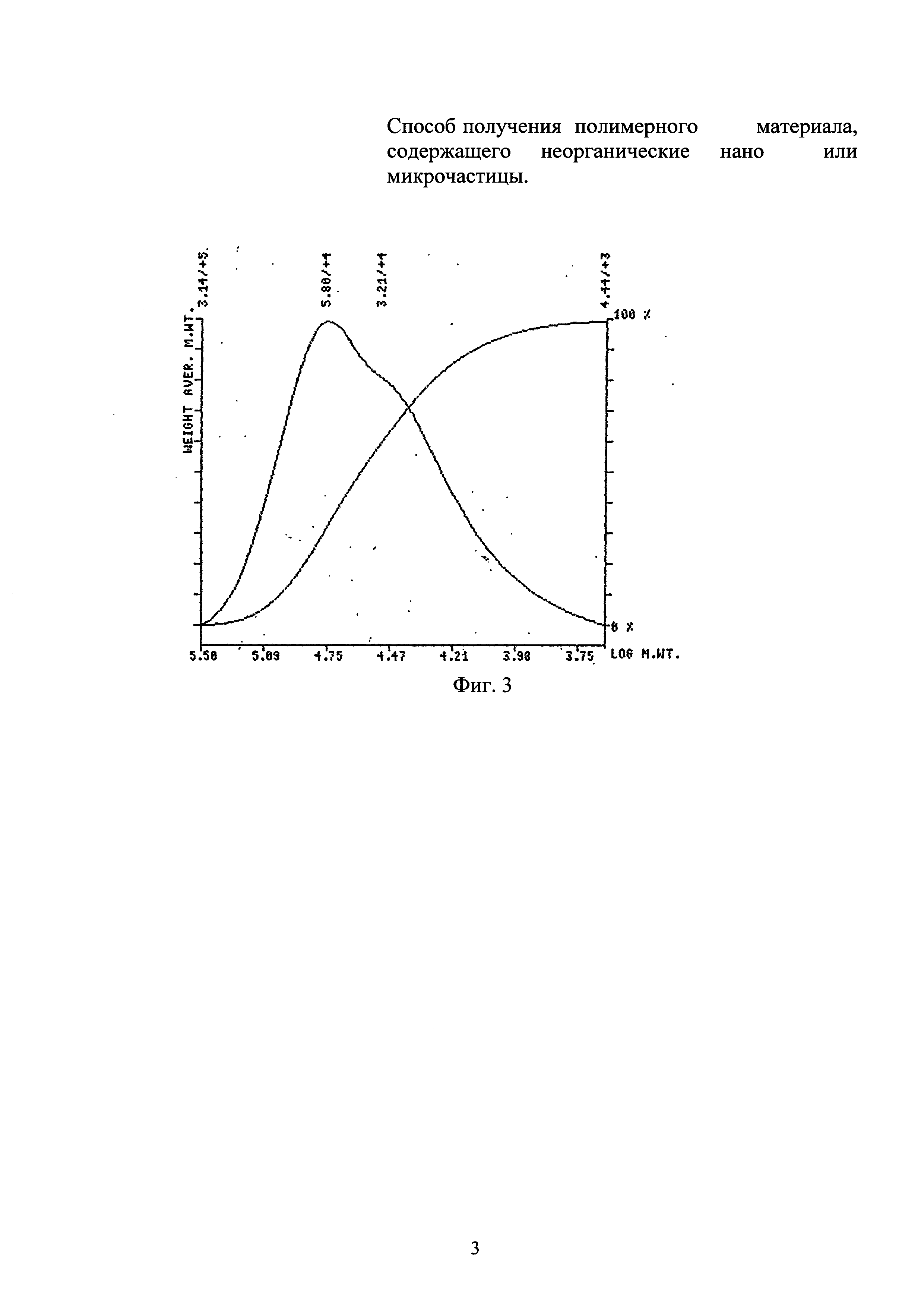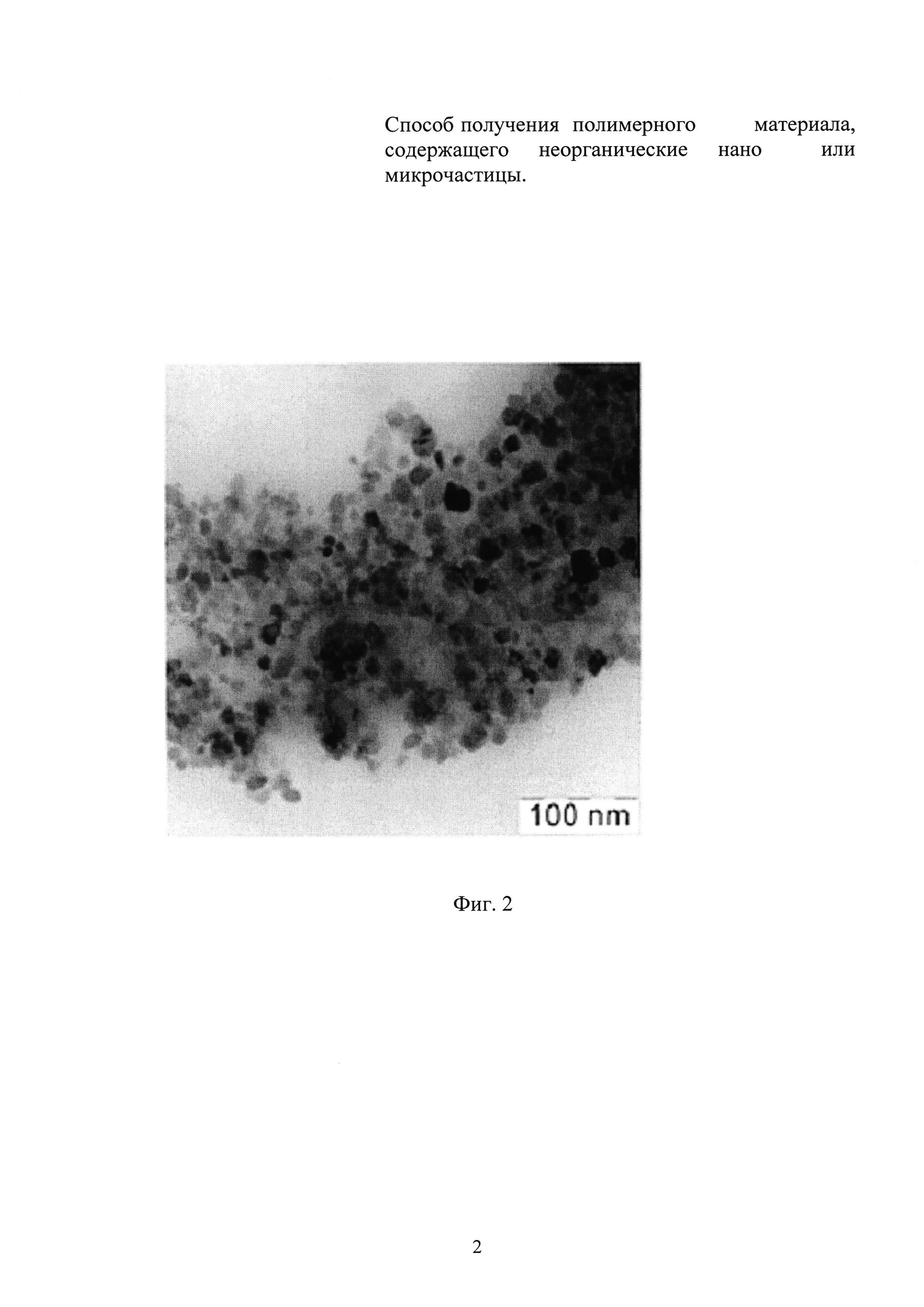 Изобретение относится к области химии высокомолекулярных соединений и нанотехнологиям и касается, в частности, способа получения полимерного материала, содержащего неорганические нано- или микрочастицы, который может найти применение в технике, например, в качестве: полимерных материалов с улучшенными механическими свойствами, газопроницаемых материалов, наполнителей резин, каучуков и нано-катализаторов. В химии и технологии полимерных материалов одним из приоритетных направлений является создание композитных частиц на основе полимеров и неорганических частиц, в которых полимер принимает участие в стабилизации наночастиц, предотвращая их агломерацию. Первыми начали проводить исследования в области синтеза монодисперсных полимерных микросфер, содержащих неорганические наночастицы, Угельстад и сотр. [Пат. США №4530956] на примере магнитных наночастиц. При иммобилизации неорганических наночастиц в полимерные микросферы или объем полимера решаются такие проблемы, как защита неорганического материала полимерной оболочкой; повышение механических свойств полимерных материалов и агрегативной устойчивости дисперсий, снижение газопроницаемости материалов за счет полимерных пленок и др. Известна статья [S.C. Warren, L.C. Messina, F.J. DiSalvo, U. Wiesner // Ordered Mesoporous Materials from Metal Nanoparticle-Block Copolymer Self-Assembly // Science, 2008, V. 320. P. 1748-1752], где описана технология, благодаря которой металлические наночастицы, покрытые полимерной пленкой, самоорганизуются в упорядоченные структуры. Образующийся пористый материал может быть использован как эффективный катализатор для топливных элементов, работающих на водороде, и некоторых промышленных процессов. Известен способ получения полимерных материалов, содержащих неорганические наночастицы, который состоит в механическом захвате неорганических частиц полимером [Hertzog В., Mottl Т., Yim D., Mathiowitz E. Scientific and clinical applications of magnetic carriers. - NY: Plenum Press, 1997. P. 77-92]. Их получали выпариванием растворителя, метиленхлорида, из дисперсии, содержащей смесь полистирола (молекулярная масса ~50000 г/моль) и наночастиц оксида железа, имеющих диаметр 200 нм, эмульгированной в водном растворе ПВС при механическом перемешивании. Твердые частицы промывали водой и лиофилизировали. Полученные микросферы имели диаметр в диапазоне нескольких сотен микрометров и содержали до 50% неорганического материала от общей массы. Однако они имели широкое распределение по размерам и не обладали сферической и регулярной формой. Существует способ получения полимерного материала, который позволяет вводить наночастицы в уже сшитую полимерную матрицу путем адсорбции или осаждения в гель [Safarik I., Safarikova M. // Magnetic techniques for the isolation and purification of proteins and peptides // BioMagnetic Research and Technology. - 2004. - V.2. - P. 7]. Однако из-за слабой фиксации неорганических наночастиц внутри микрогеля промывка любым буферным раствором может привести к десорбции и высвобождению неорганических наночастиц, что является главным их недостатком при использовании. В патенте США №4530956 предложены полимерные материалы в виде суспензии, которые диспергируются в растворы солей различных металлов, а включение неорганического материала в полимер осуществляется либо осаждением, либо окислительно-восстановительной реакцией между ионами металла. Пористые полимерные микросферы (ППМ) получали затравочной полимеризацией 