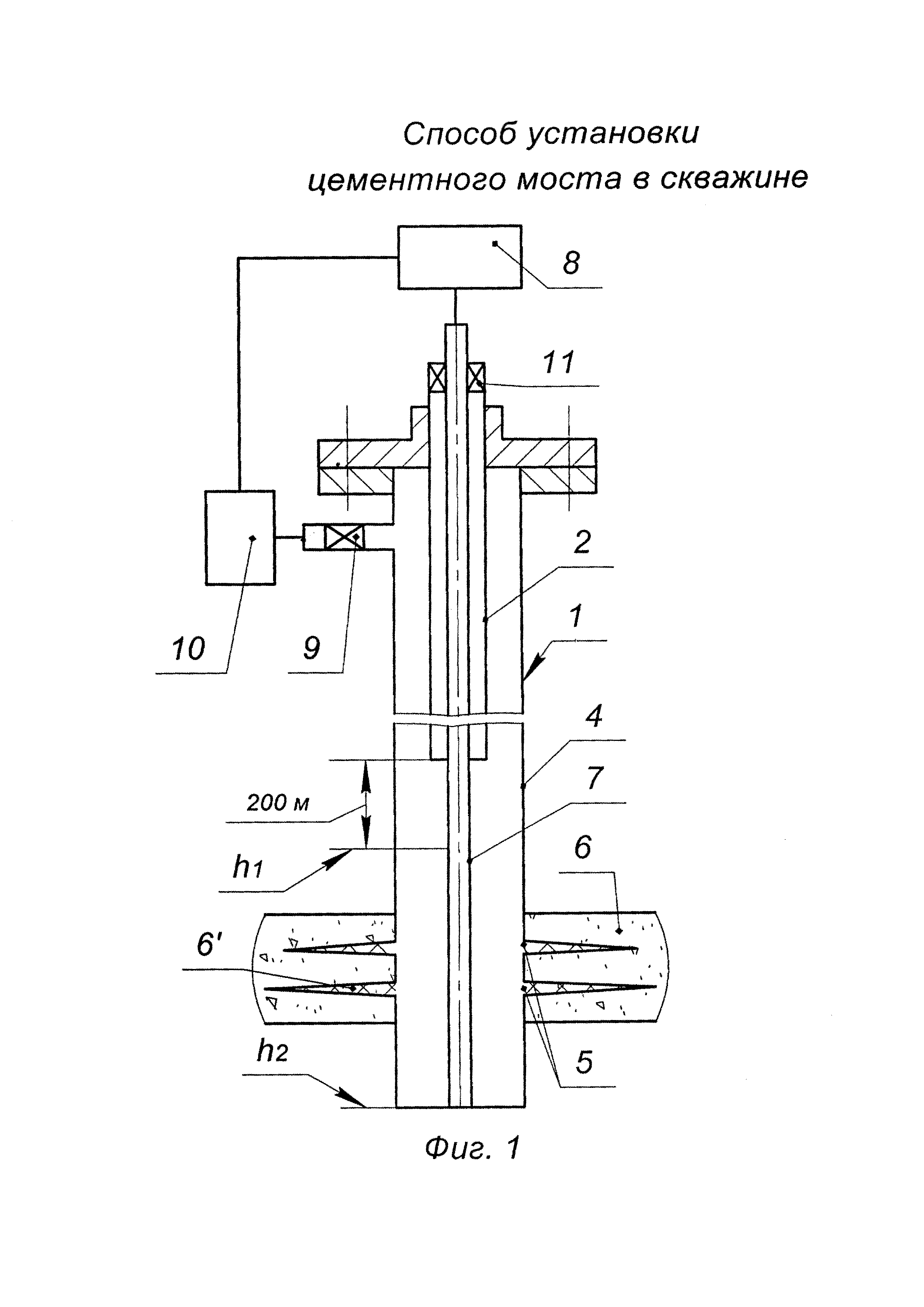 Изобретение относится к нефтегазодобывающей промышленности, а именно к установке цементных мостов в эксплуатационных колоннах скважин при временном отключении продуктивной части отдельных пластов или части пласта и ликвидации скважин. Известен способ установки цементного моста в скважине с открытым интервалом перфорации, включающий спуск в незаглушенную скважину без извлечения скважинного оборудования безмуфтовой длинномерной трубы (БДТ) для прокачки и продавки цементного раствора (Трахтман Г.И. Эффективность ремонта скважин за рубежом, Обзорная информация, Серия "Нефтепромысловое дело", Выпуск 5 (77), ВНИИОЭНГ, 1984, с. 15-28). Недостатками способа являются: - во-первых, высокое давление продавки цементного раствора, возникающее в БДТ диаметром 38,1 или 45,44 мм, ограничивающее высоту установки цементного моста в скважине; - во-вторых, низкая эффективность за счет ухода цементного моста в интервалы перфорации пласта вследствие отсутствия их предварительной герметизации; - в-третьих, низкая прочность на сжатие цементного моста, что приводит к его разрушению и потере герметичности при последующей эксплуатации скважины; - в-четвертых, высокая вероятность прихвата БДТ при спуске ее в скважину без извлечения скважинного оборудования. Также известен способ установки цементного моста в скважине с открытым интервалом перфорации (патент RU №2198998, МПК Е21В 33/13, опубл. 20.02.2003 г., Бюл. №5), включающий спуск в незаглушенную скважину без извлечения скважинного оборудования БДТ для прокачки и продавки цементного раствора. При этом прокачку последних 0,2-0,3 м3 цементного раствора производят при производительности 2-3 л/с с одновременным подъемом БДТ, а окончание продавки цементного раствора из БДТ должно совпасть с подъемом БДТ до верхней отметки цементного моста. Недостатками способа являются: - во-первых, высокое давление продавки цементного раствора, возникающее в БДТ диаметром 38,1 или 45,44 мм, ограничивающее высоту установки цементного моста в скважине; - во-вторых, низкая эффективность за счет ухода цементного моста в интервалы перфорации пласта вследствие отсутствия их предварительной герметизации; - в-третьих, низкая прочность на сжатие цементного моста, что приводит к его разрушению и потере герметичности при последующей эксплуатации скважины; - в-четвертых, высокая вероятность прихвата БДТ при спуске ее в скважину без извлечения скважинного оборудования. Наиболее близким по технической сущности и достигаемому результату является способ установки цементного моста в скважине (патент RU №2235852, МПК Е21В 33/13, опубл. 10.09.2004 г., Бюл. №25), включающий закачку в заданный интервал тампонажного раствора, вымывание излишков тампонажного раствора, проведение ожидания затвердевания цемента (ОЗЦ), испытание цементного моста на прочность и герметичность. При этом в скважину, находящуюся под давлением, с помощью колтюбинговой установки спускают до забоя колонну гибких труб (ГТ). Открывают задвижки на трубном и затрубном пространствах. Ствол скважины заполняют через нее газовым конденсатом. Башмак колонны ГТ поднимают до интервала установки цементного моста, готовят в блоке приготовления тампонажный раствор смешиванием цементного раствора с замедлителем схватывания и реагентом, повышающим текучесть раствора. Закачивают через колонну ГТ вначале буф