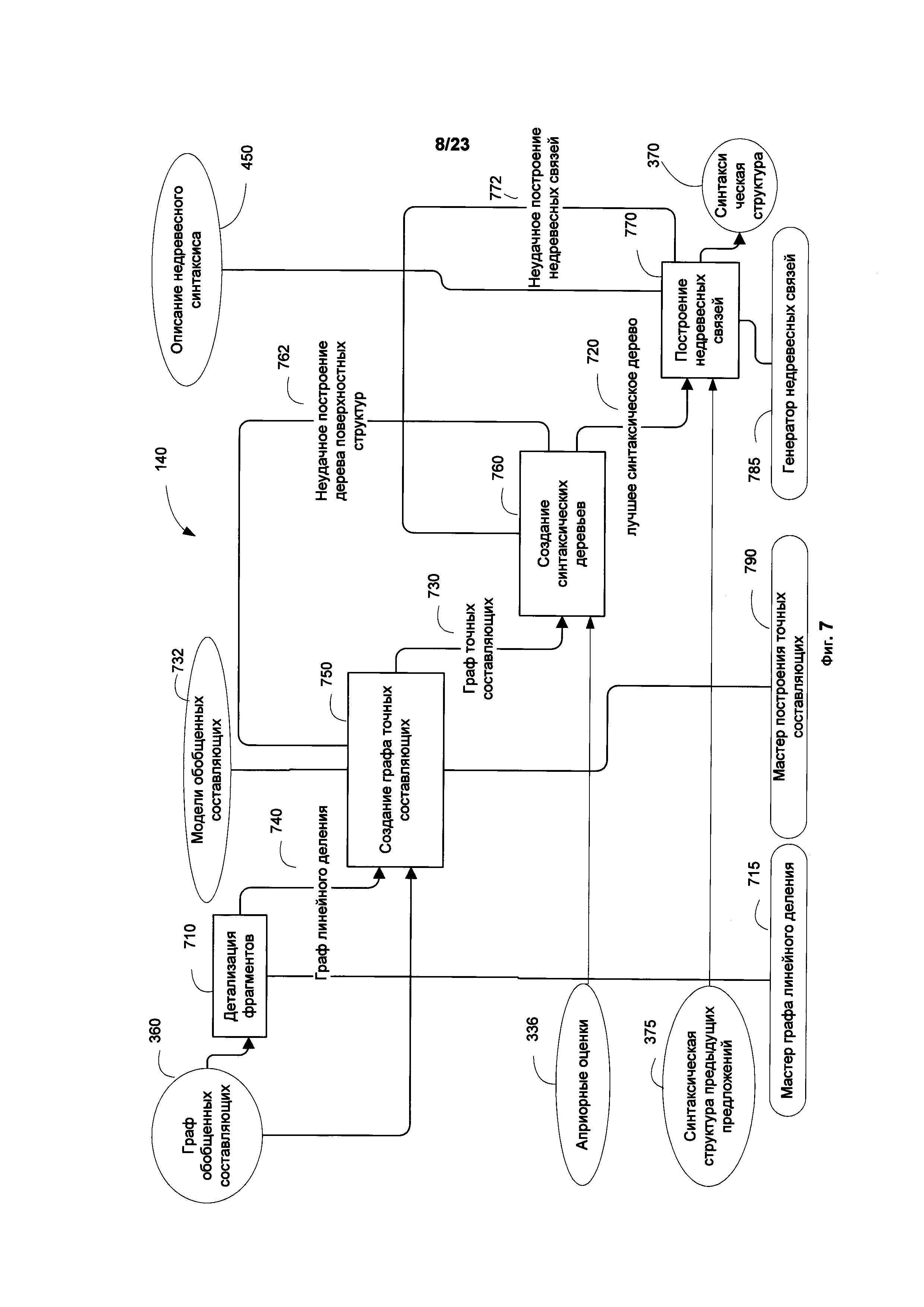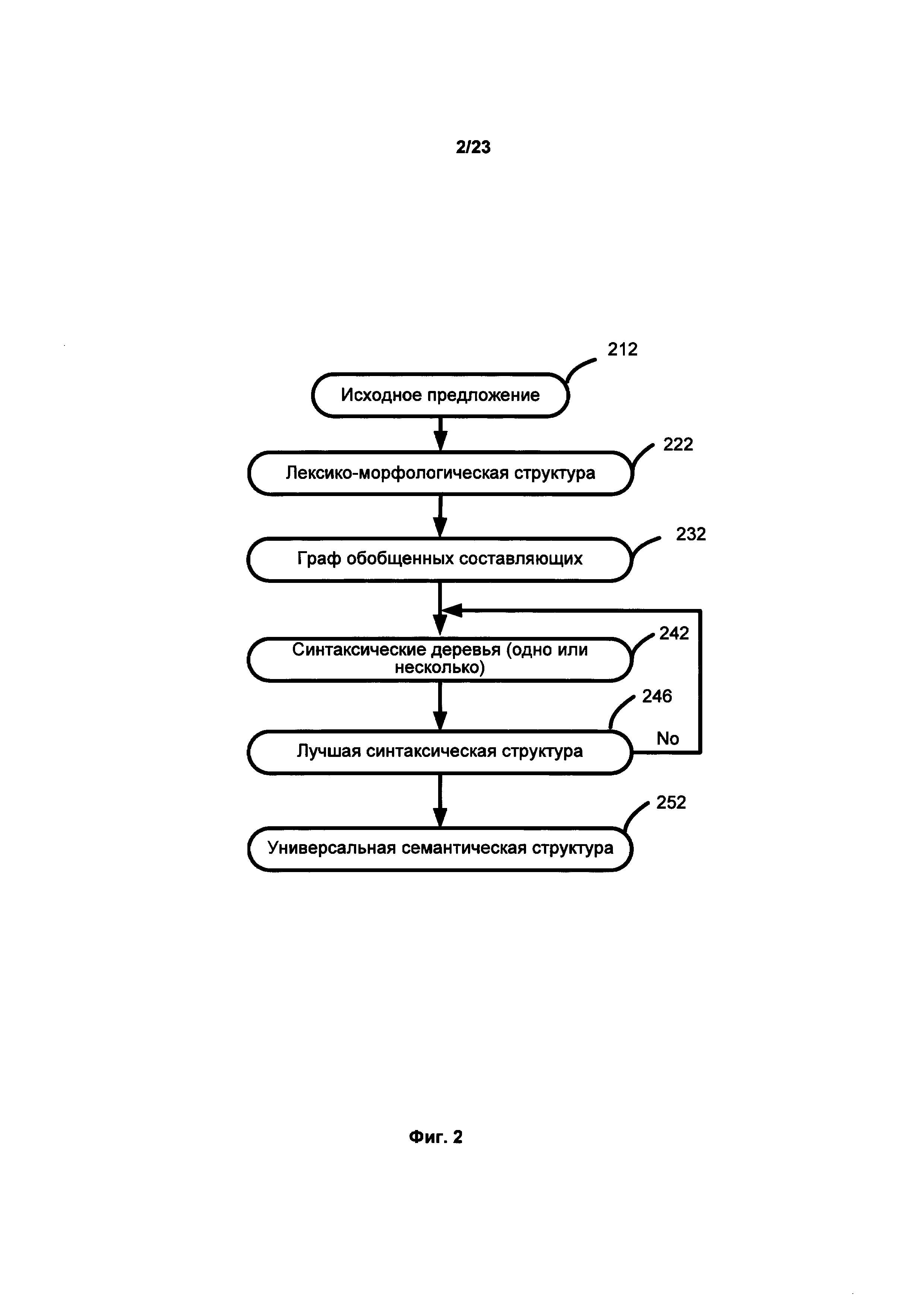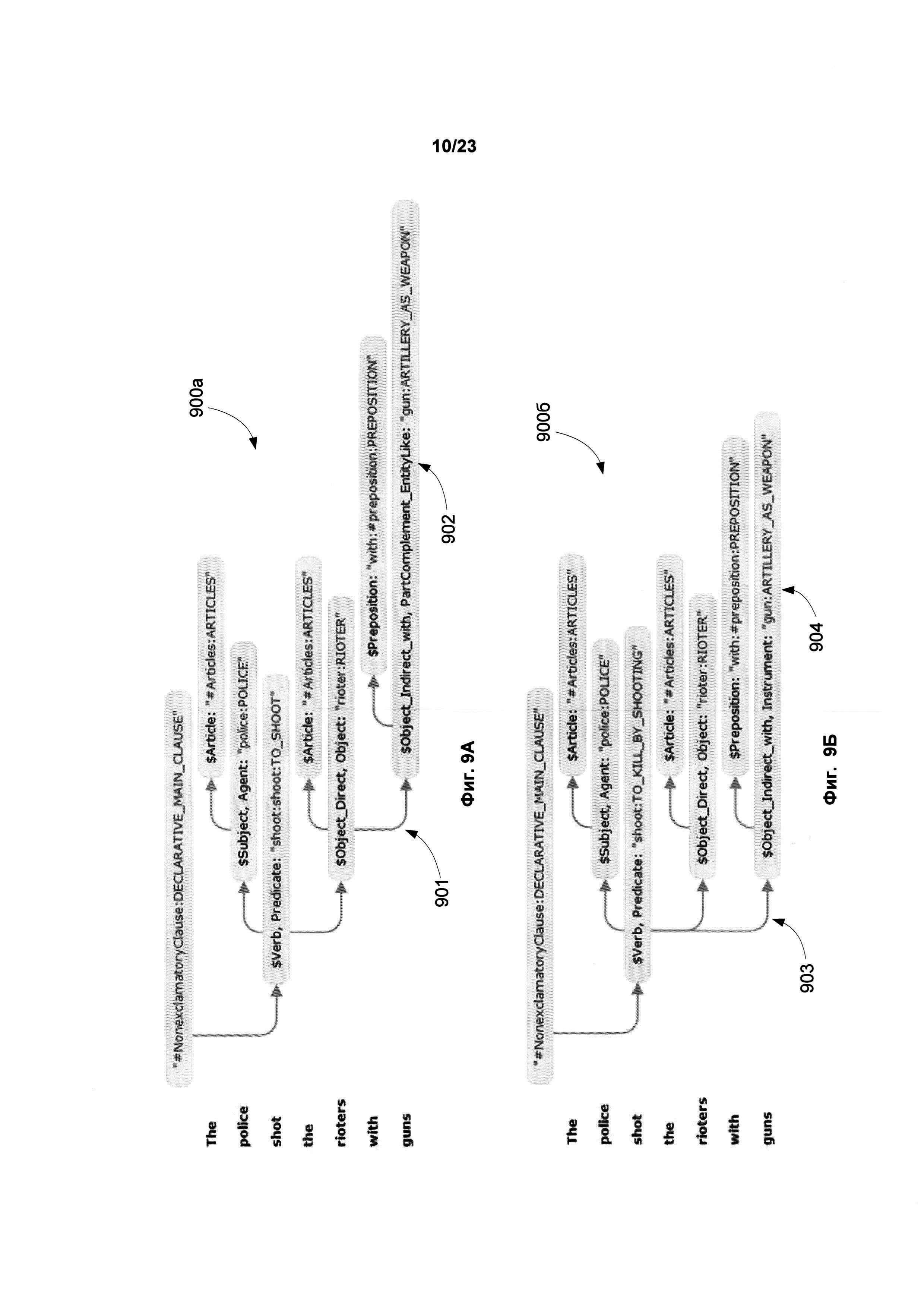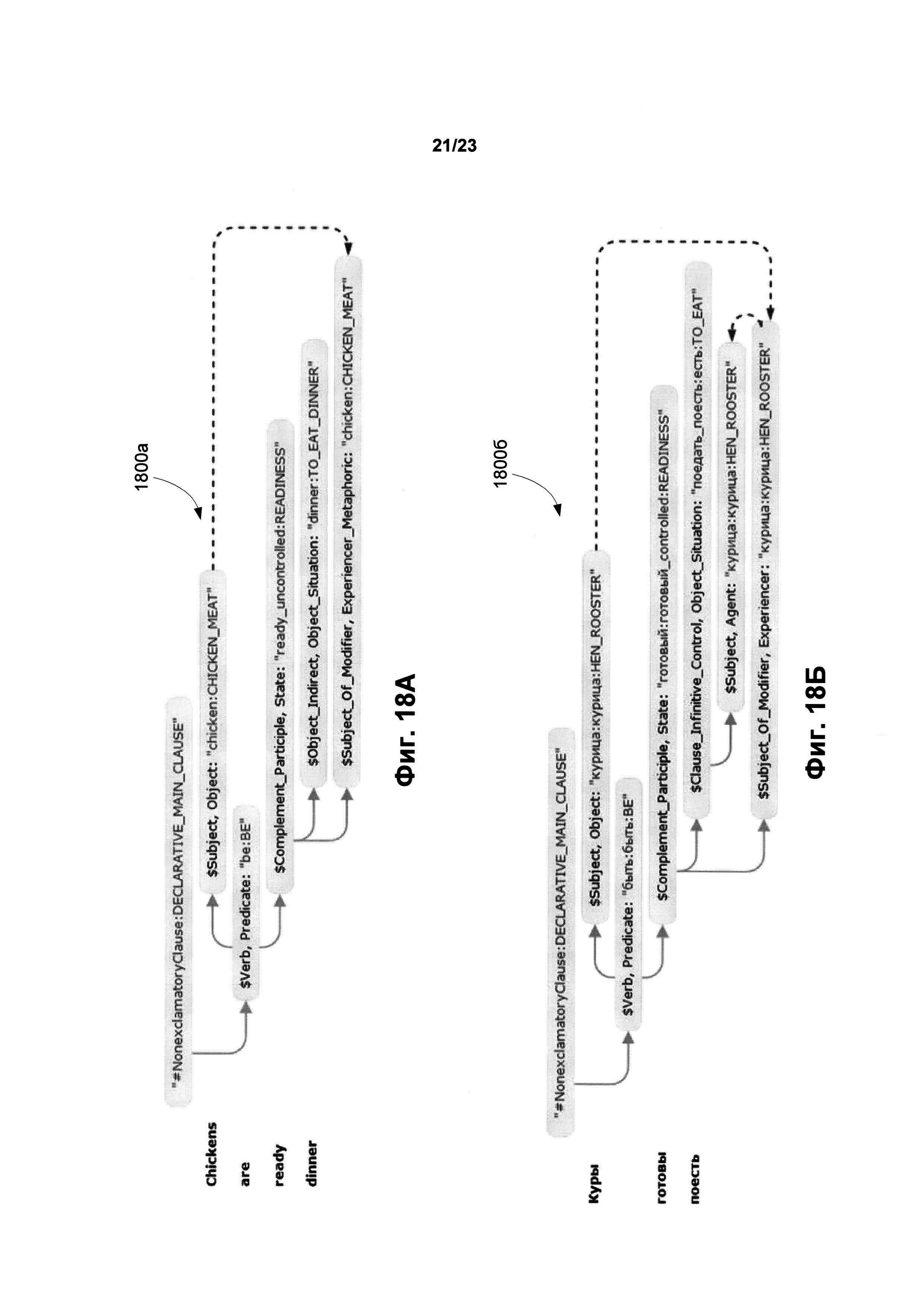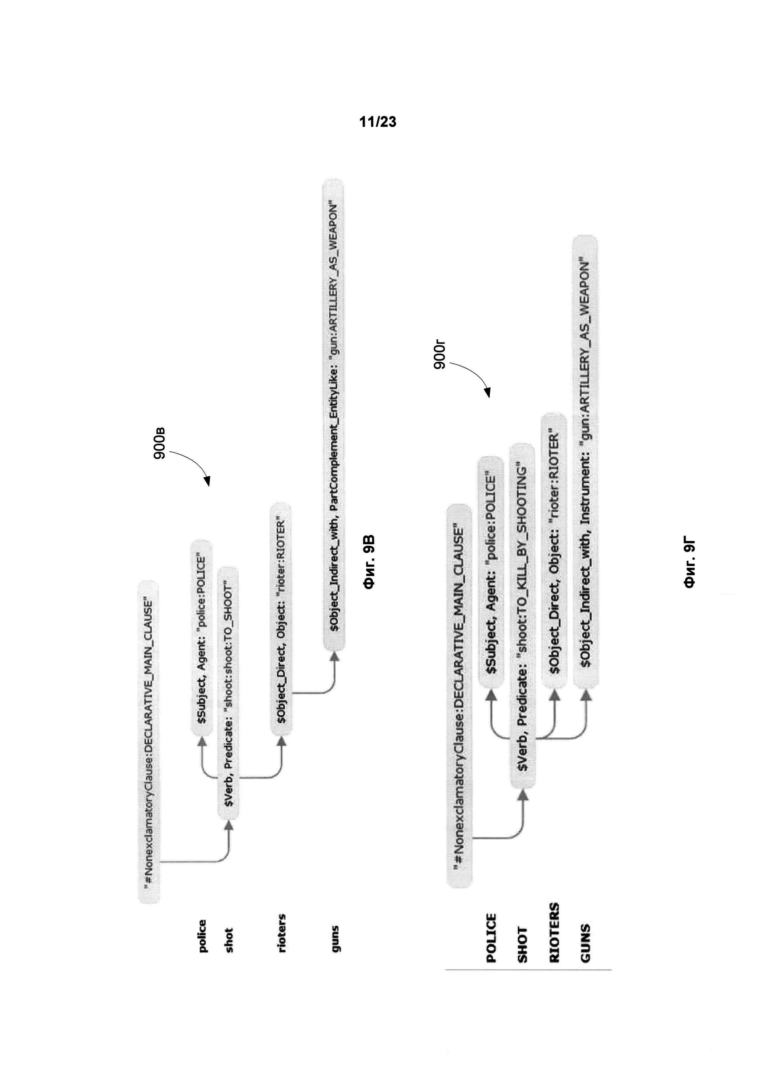 УРОВЕНЬ ТЕХНИКИ [0001] Зачастую при составлении документации, в частности на двух и более языках, приходится сталкиваться с фразами, имеющими неоднозначность в толковании. В результате этого данные фразы могут быть неверно интерпретированы. Чтобы избежать неоднозначности в настоящее время проверка составленных документов зачастую полностью осуществляется вручную. Помимо этого существуют множество статей и руководств, которые содержат правила и рекомендации о том, как правильно писать и составлять документы, в том числе юридические документы и правовые акты, чтобы избежать неоднозначности в их толковании. Неверное толкование документации может иметь негативные последствия. Данные статьи и руководства обычно содержат формализованный набор правил, которым должен следовать специалист. Одним из лучших способов проверки на наличие неоднозначности в документе является независимая проверка документа несколькими людьми. Однако, в силу ряда причин, даже такая проверка может быть выполнена формально, халатно или непрофессионально. В частности, человек, проверяющий документ, может не обладать достаточными филологическими знаниями для того, чтобы выявить неоднозначные фразы и предложения. Задача окажется еще более трудоемкой для человека, не являющегося носителем языка, поскольку обнаружение неоднозначности требует глубокого знания лексики, синтаксических и морфологических правил, исключений и т.д. В то время как привлечение высококвалифицированных профессионалов - носителей языка, имеющих филологическое образование, может быть довольно затратным мероприятием, которое не всегда может быть доступно для компании или частного лица. РАСКРЫТИЕ ИЗОБРЕТЕНИЯ [0002] В настоящем описании представлены системы, машиночитаемые носители и способы выявления языковой неоднозначности в тексте. Иллюстрируемый способ включает в себя анализ предложений из первого текста (с использованием одного или нескольких процессоров) с целью: определения синтаксических связей между обобщенными составляющими предложения; построения графа обобщенных составляющих предложения на основе синтаксических связей и лексико-морфологической структуры предложения; анализа графа с целью выявления множества синтаксических структур предложения; присвоения оценки всем синтаксическим структурам, где оценка отображает вероятность того, что данная синтаксическая структура является верной гипотезой, описывающей, полную синтаксическую структуру предложения. Далее способ включает определение семантических структур, соответствующих синтаксическим структурам, и выбор первой семантической структуры из семантических структур и второй семантической структуры из семантических структур, где первая и вторая семантические структуры имеют соответствующие синтаксические структуры, каждая из которых имеет оценки не ниже порогового значения, и где, первая семантическая структура отлична от второй семантической структуры. Далее способ дополнительно включает в себя обнаружение семантической неоднозначности предложения на основе анализа различий между двумя семантическими структурами. [0003] Приведена иллюстративная система, которая включает в себя анализ предложений из первого текста, с использованием одного или нескольких процессоров, с целью: определ