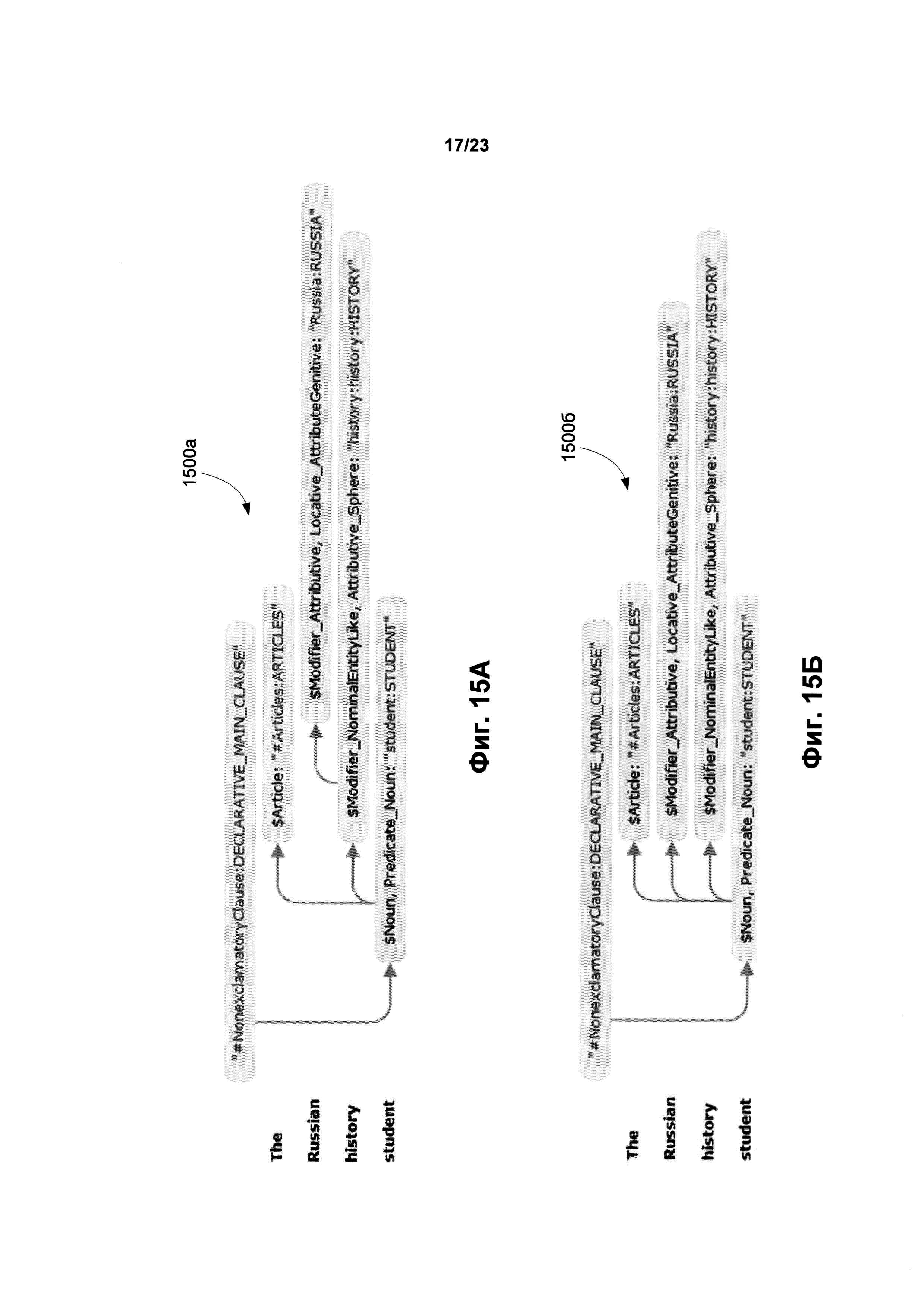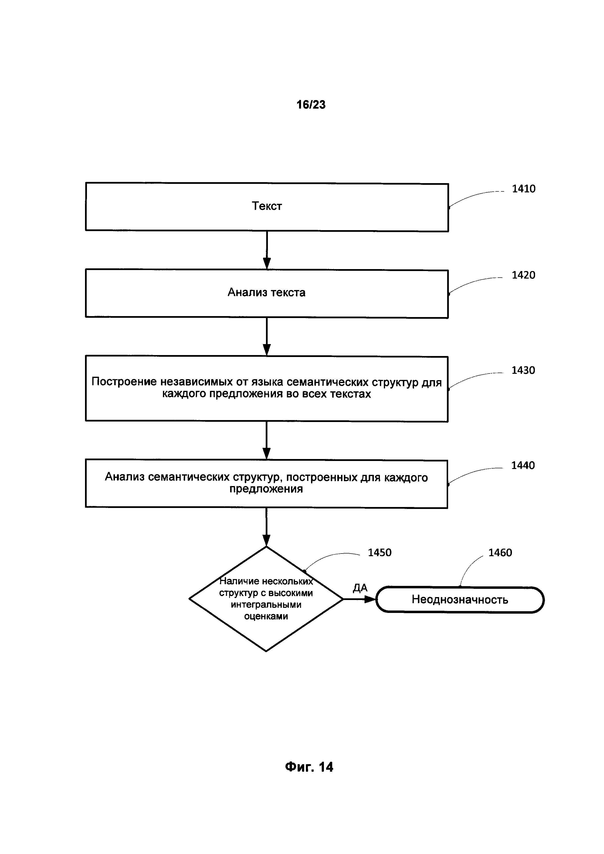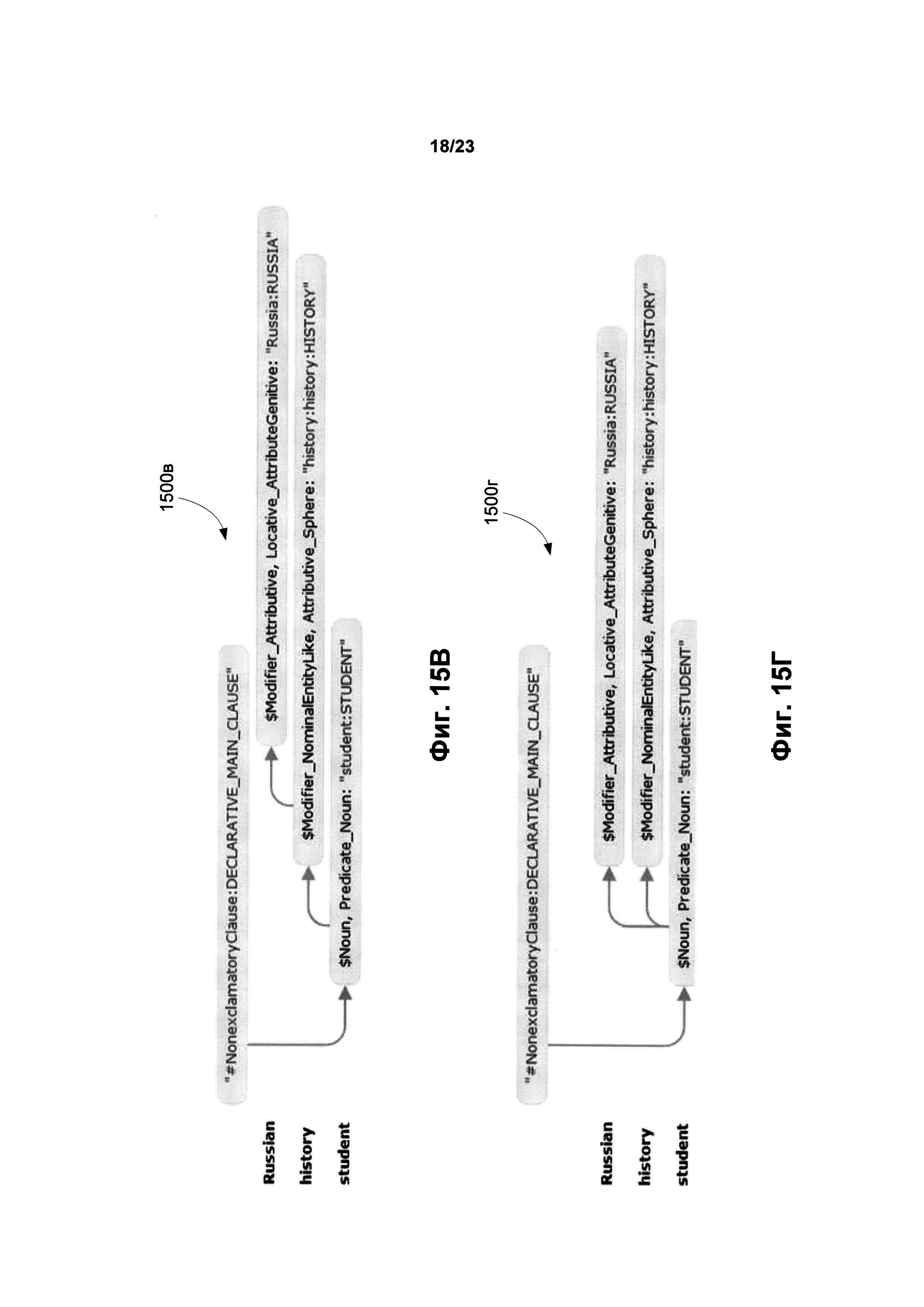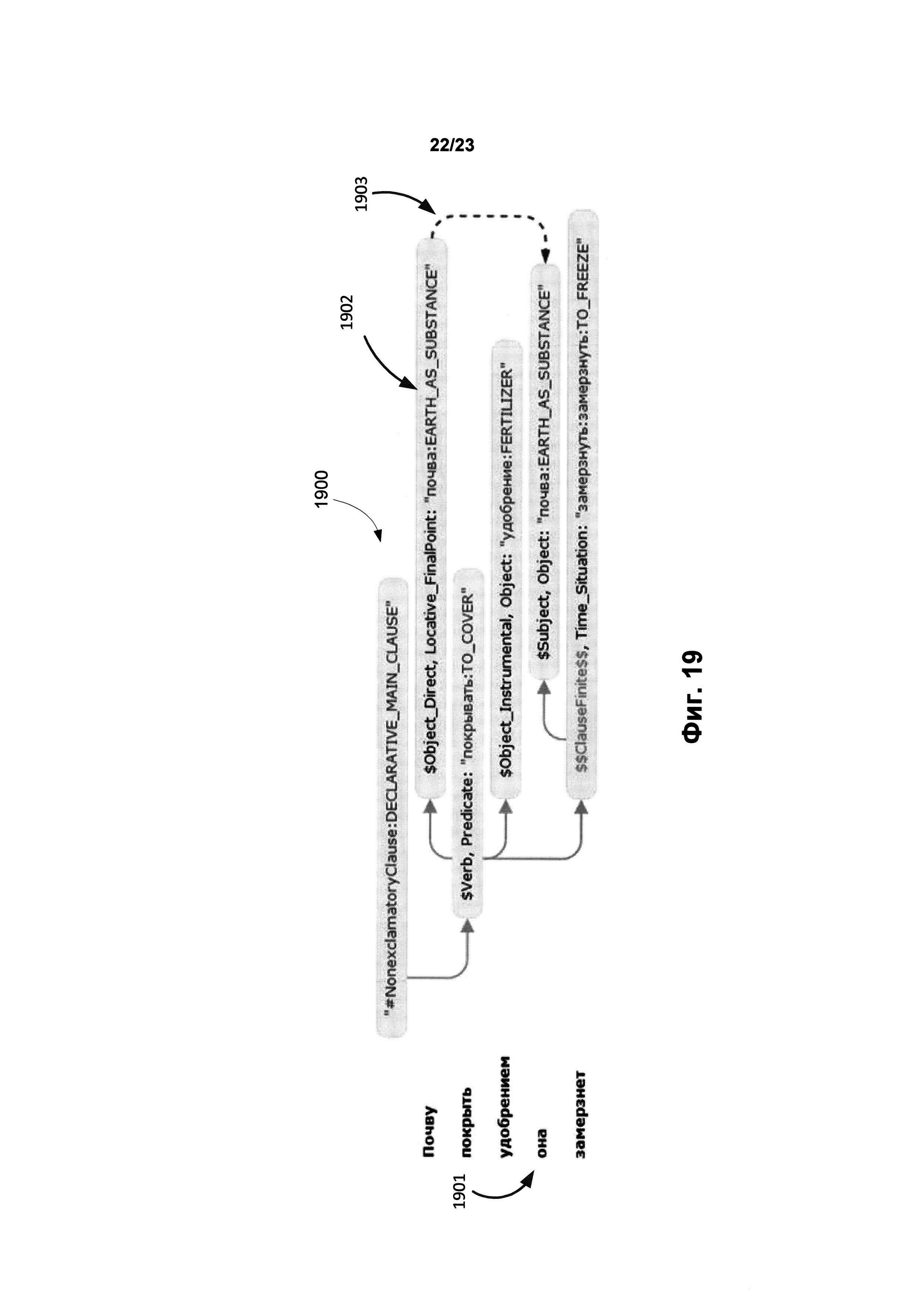 Изобретение относится к обработке текста на естественном языке, в частности к определению смысла предложений в тексте. Техническим результатом является обеспечение возможности автоматически находить и выделять в документе неоднозначные фразы или утверждения, которые могут трактоваться несколькими возможными способами. В способе обнаружения языковой неоднозначности предложение анализируется с целью определения синтаксических связей между его обобщенными составляющими. На основе синтаксических связей и лексико-морфологической структуры предложения строится граф обобщенных составляющих, который анализируется для выявления множества синтаксических структур предложения. Всем синтаксическим структурам присваивается оценка вероятности того, что структура является верной гипотезой о полной синтаксической структуре. Строятся семантические структуры, соответствующие синтаксическим структурам. Выбираются первая и вторая семантические структуры, каждая из которых имеет оценки не ниже порогового значения, причем первая семантическая структура отлична от второй семантической структуры. На основе анализа различий между двумя семантическими структурами устанавливается семантическая неоднозначность в предложении. 3 н. и 17 з.п. ф-лы, 28 ил.