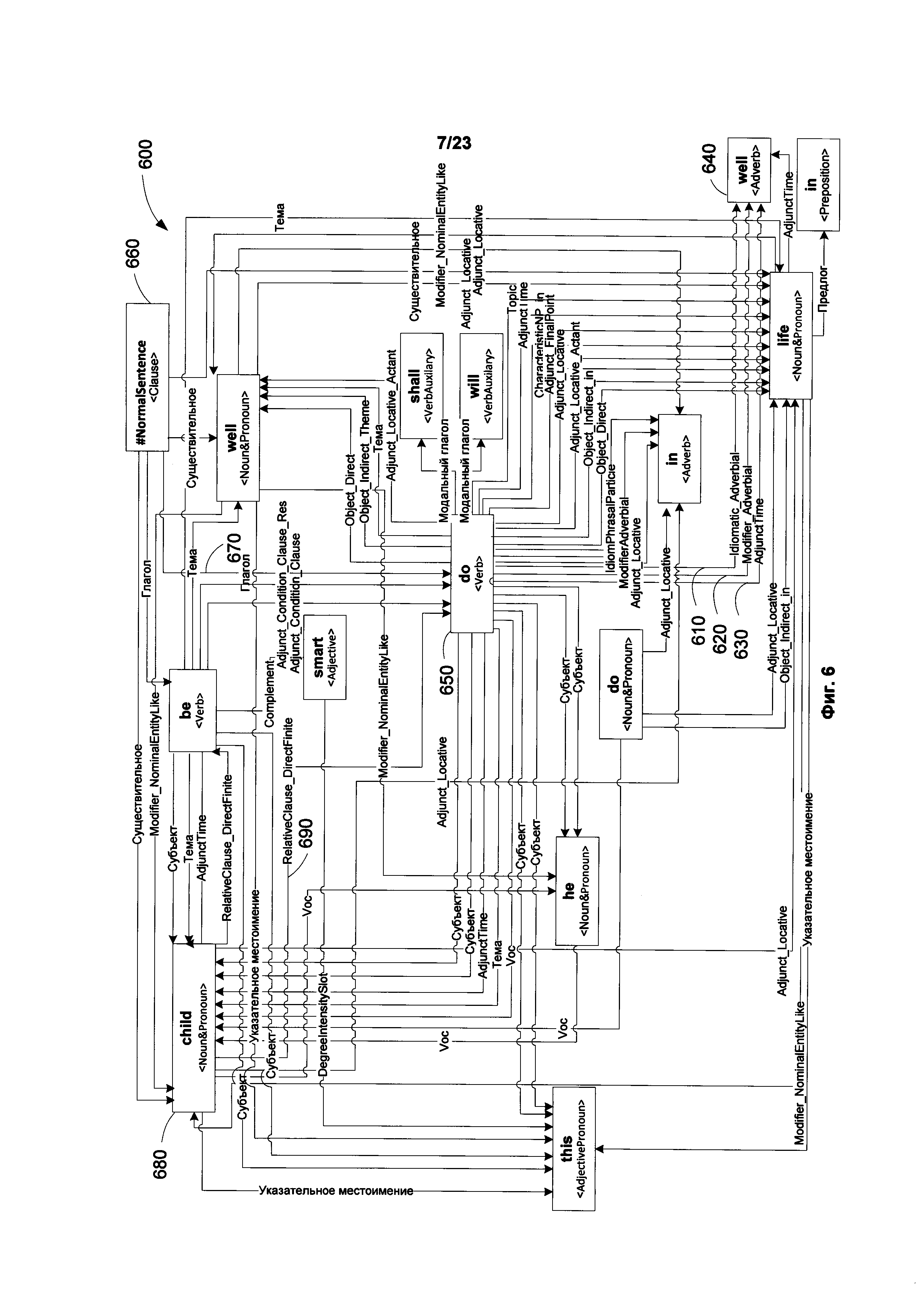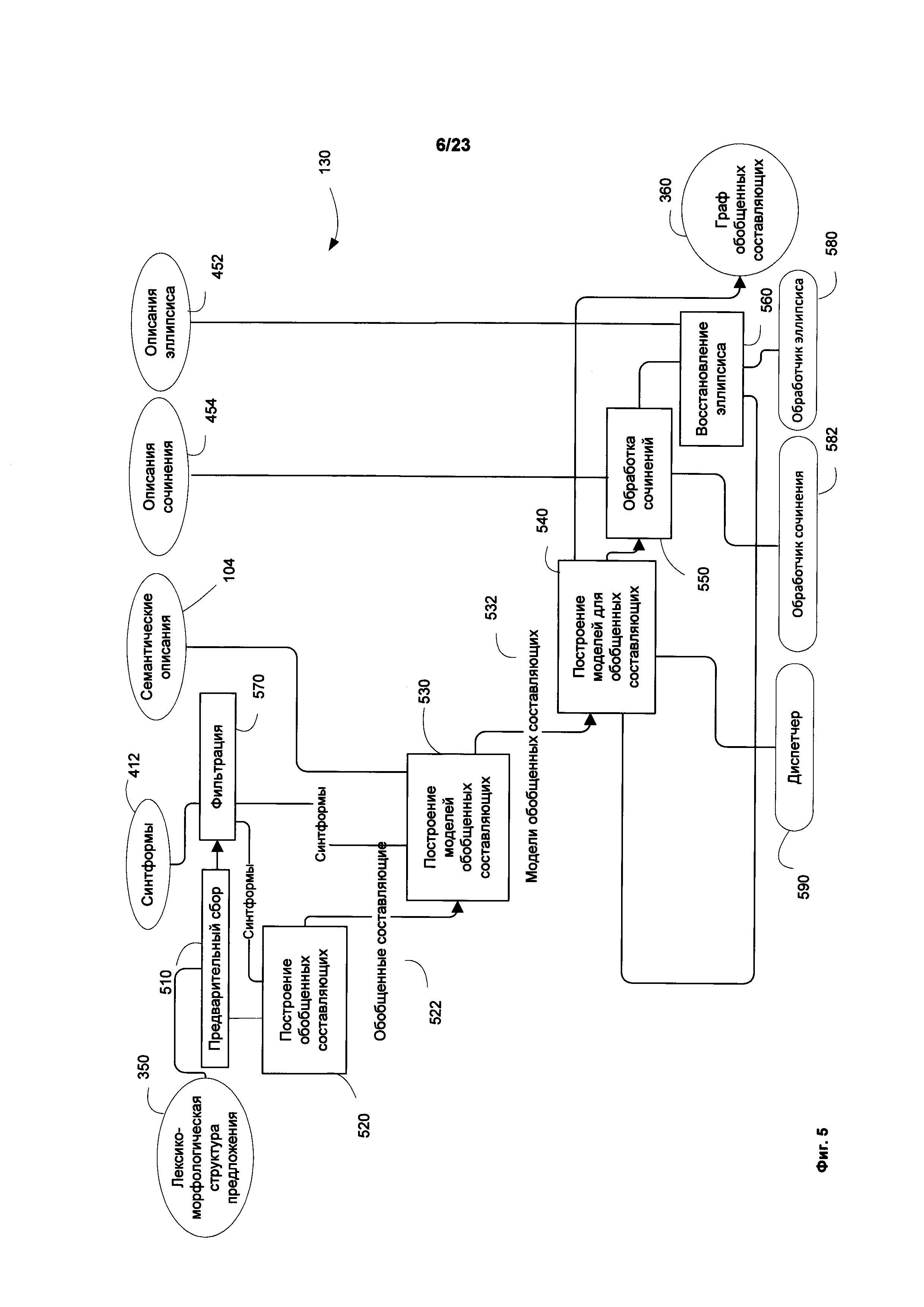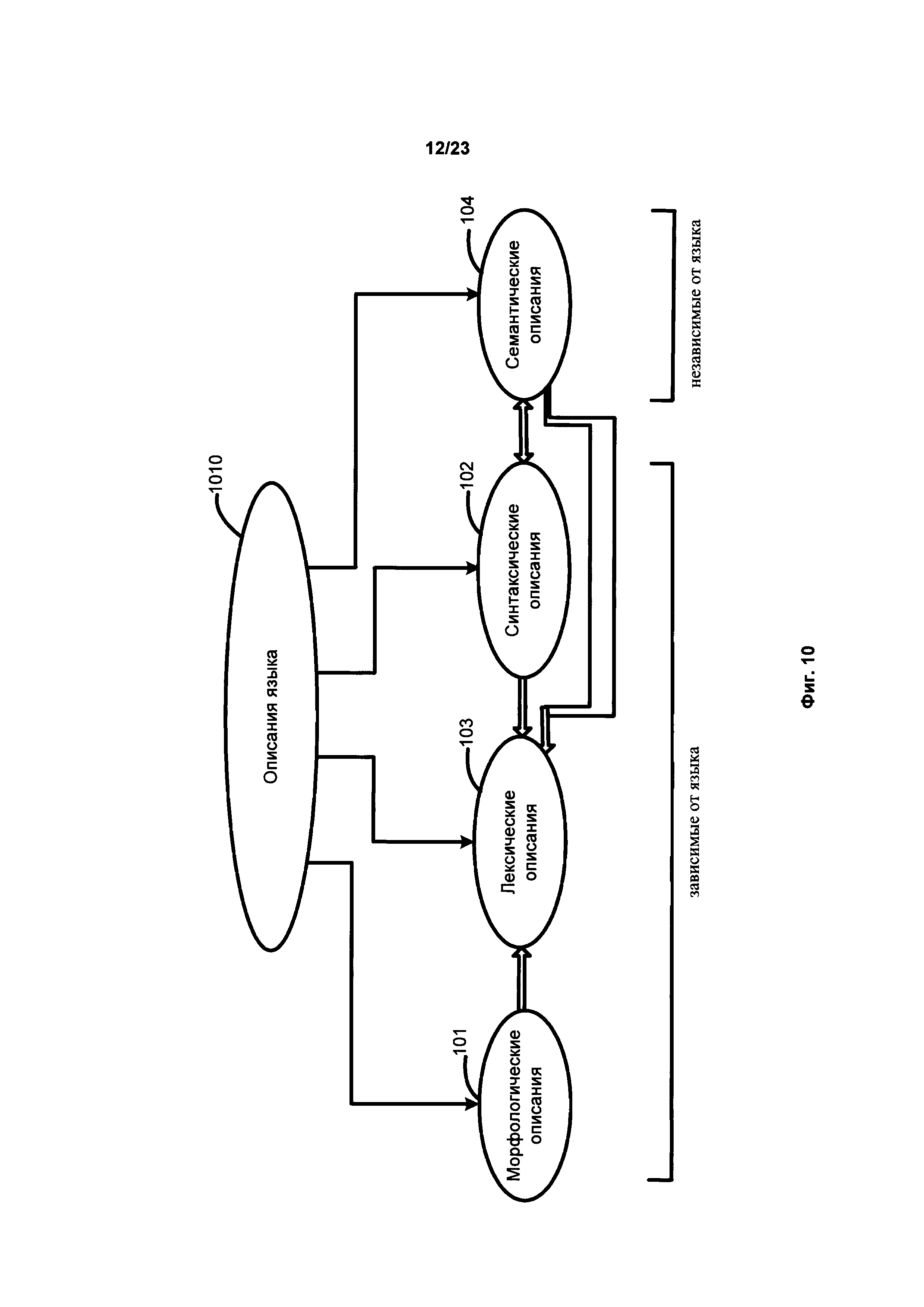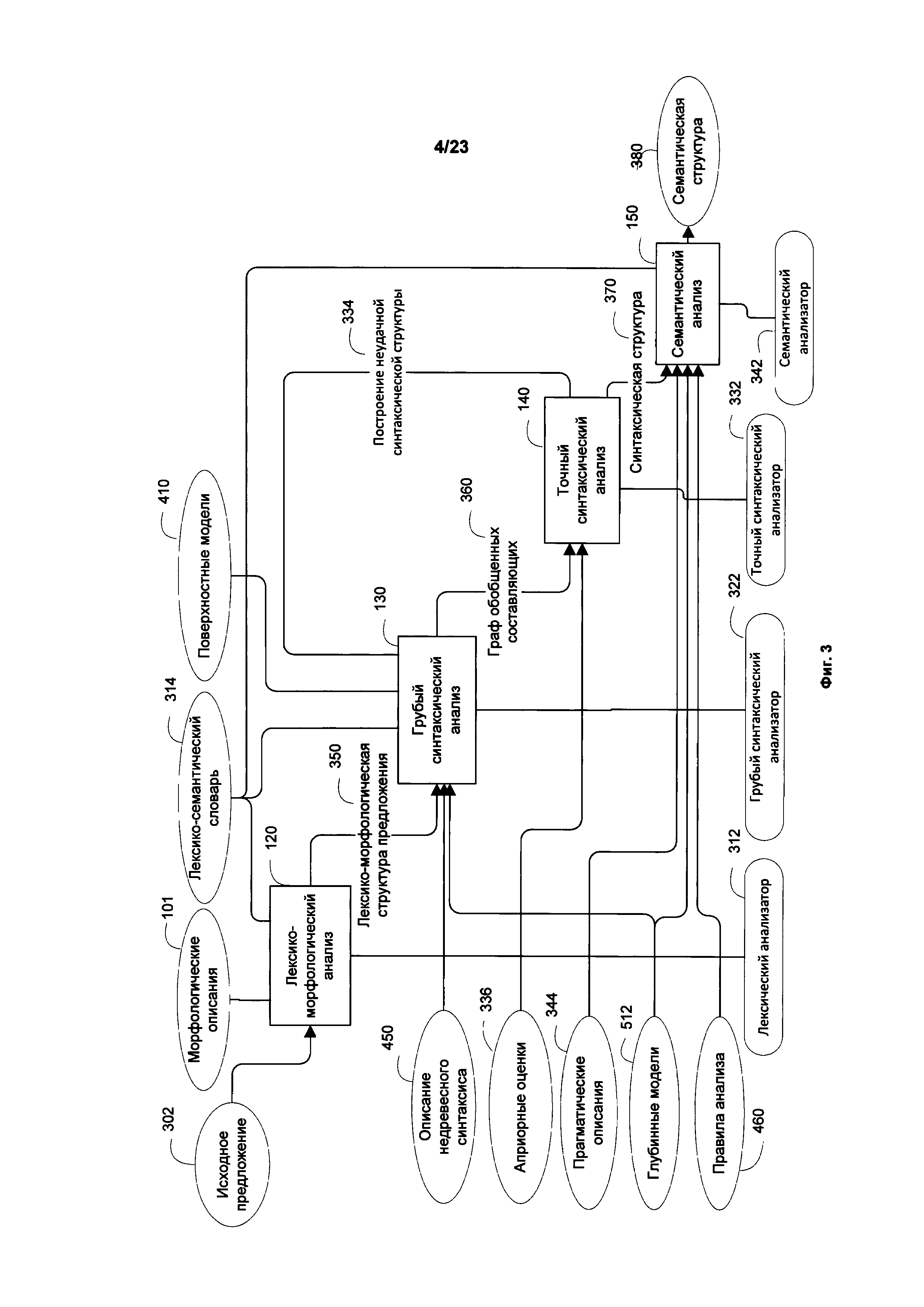 Изобретение относится к обработке текста на естественном языке, в частности к определению смысла предложений в тексте. Техническим результатом является обеспечение возможности автоматически находить и выделять в документе неоднозначные фразы или утверждения, которые могут трактоваться несколькими возможными способами. В способе обнаружения языковой неоднозначности предложение анализируется с целью определения синтаксических связей между его обобщенными составляющими. На основе синтаксических связей и лексико-морфологической структуры предложения строится граф обобщенных составляющих, который анализируется для выявления множества синтаксических структур предложения. Всем синтаксическим структурам присваивается оценка вероятности того, что структура является верной гипотезой о полной синтаксической структуре. Строятся семантические структуры, соответствующие синтаксическим структурам. Выбираются первая и вторая семантические структуры, каждая из которых имеет оценки не ниже порогового значения, причем первая семантическая структура отлична от второй семантической структуры. На основе анализа различий между двумя семантическими структурами устанавливается семантическая неоднозначность в предложении. 3 н. и 17 з.п. ф-лы, 28 ил.