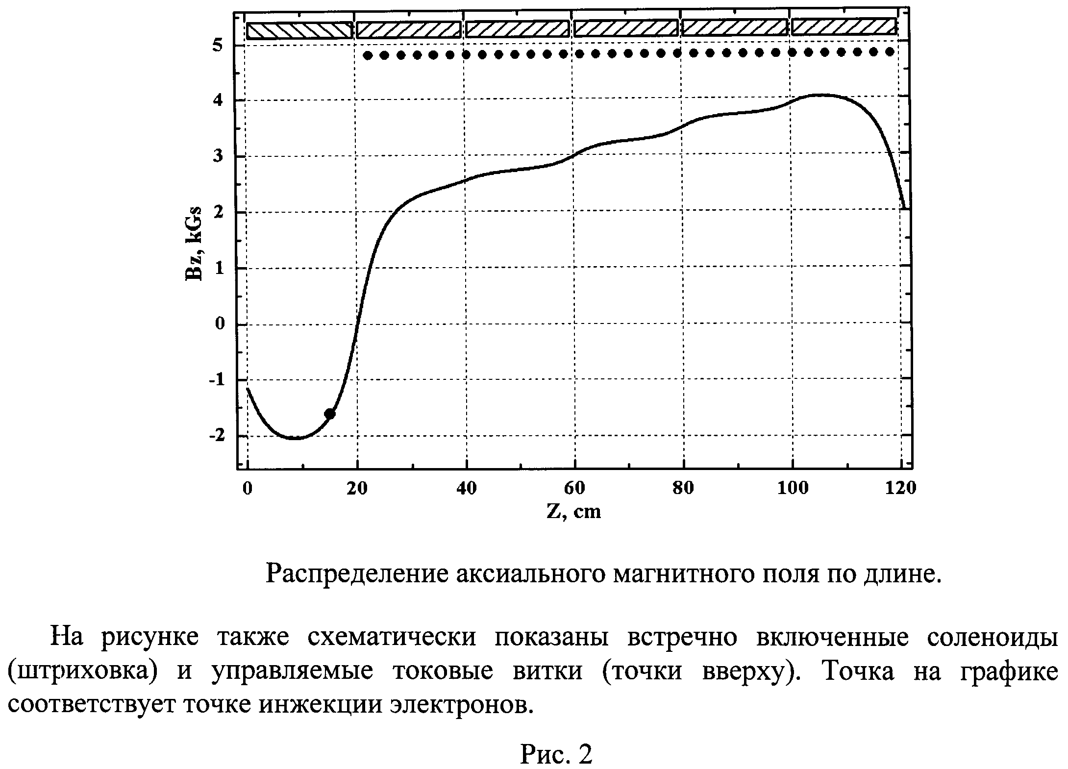 Область техники, к которой относится изобретение Изобретение относится к ускорительной технике. Уровень техники Наиболее близким к заявленному изобретению является аналог /1/, в котором в магнитном поле типа "касп" формируется плотное кольцо электронов, вращающихся с релятивистскими скоростями. Поступательная скорость электронного кольца вдоль его оси после "каспа" - нерелятивистская, что позволяет захватить его в стационарную магнитную ловушку с помощью тормозящего резистивного экрана. Во втором близком аналоге /2/ кольцо формируется в магнитной ловушке и сжимается в нарастающем во времени магнитном поле. Остановившееся кольцо заполняется ионами, с использованием ионизации атомов остаточного газа в камере ускорителя или специальной газовой струи /2/. Вывод электрон-ионного кольца из ловушки осуществляется путем снятия одного из барьеров магнитной ловушки, которое сопровождается уменьшением глубины эффективной потенциальной ямы до нуля. Затем кольцо попадает в область спадающего вдоль оси движения магнитного поля и ускоряется. Если электроны и ионы движутся с одной скоростью в продольном направлении, то получается выигрыш коллективного ускорения ионов по сравнению с прямым их ускорением во внешнем электромагнитном поле. Недостатком захвата сильноточного электронного пучка в стационарную магнитную ловушку в аналоге /1/ являются большие потери пучка, обусловленные большим ускорением электронов собственным зарядом пучка на фронтах импульса тока. Вторым недостатком является использование в работах /1, 2/, а также в других аналогичных работах (например, в /3/), ускорения электрон-ионного кольца в спадающем магнитном поле без внешней фокусировки электронов в направлении движения кольца. Как показали эксперименты в /2, 3/, компактность кольца нарушается на небольшой длине ускорения, электроны убегают вперед от ионов, и ионы не приобретают значительной энергии. Разрыв электронной и ионной компонент характерен также для коллективного метода ускорения ионов в прямолинейных сильноточных электронных пучках при формировании виртуального катода. Поэтому для прямолинейных сильноточных пучков появились предложения и успешные эксперименты по лазерному управлению движением фронта электронного пучка в коллективном ускорителе /3-5/, а также предложение управляемого ступенчатого коллективного ускорителя с использованием отдельных источников сильноточных пучков на каждой ступени /6/. Недостатком способов управляемого коллективного ускорения /3-6/ является необходимость использования мощных релятивистских электронных пучков (с токами в несколько десятков кА), большие потери электронов при ускорении ионов и небольшая частота повторений циклов ускорения. Сущность изобретения Основа предлагаемого решения проблемы управляемого коллективного ускорения ионов состоит в том, что набор энергии ионов осуществляется за счет большого собственного электрического поля электронного сгустка, а фокусировка электронного сгустка в направлении ускорения осуществляется за счет управляемого движения магнитной потенциальной ямы. Известные способы коллективного ускорения ионов основаны на использовании кольцевых или прямолинейных сильноточных электронных пучков /2-3/. Основные трудности коллективного ускорения ионов электронным