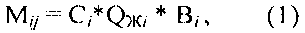 Mij - относительное значение количества индикатора, пришедшего по ВПФ i-й контрольной добывающей скважины на j-е сутки.