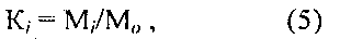 а накопленную массовую долю Mi индикатора, извлеченную из i-й добывающей скважины на поверхность за j суток наблюдений, определяют выражением