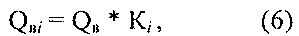 - определяют долю закачиваемого агента (воды) Qв, поступившего в i-ю добывающую скважину от данной нагнетательной, выражением
