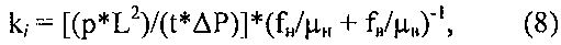- по времени прихода каждой порции индикатора определяют скорость фильтрации, по которой судят о динамической эффективной проницаемости каждого ВПФ.
