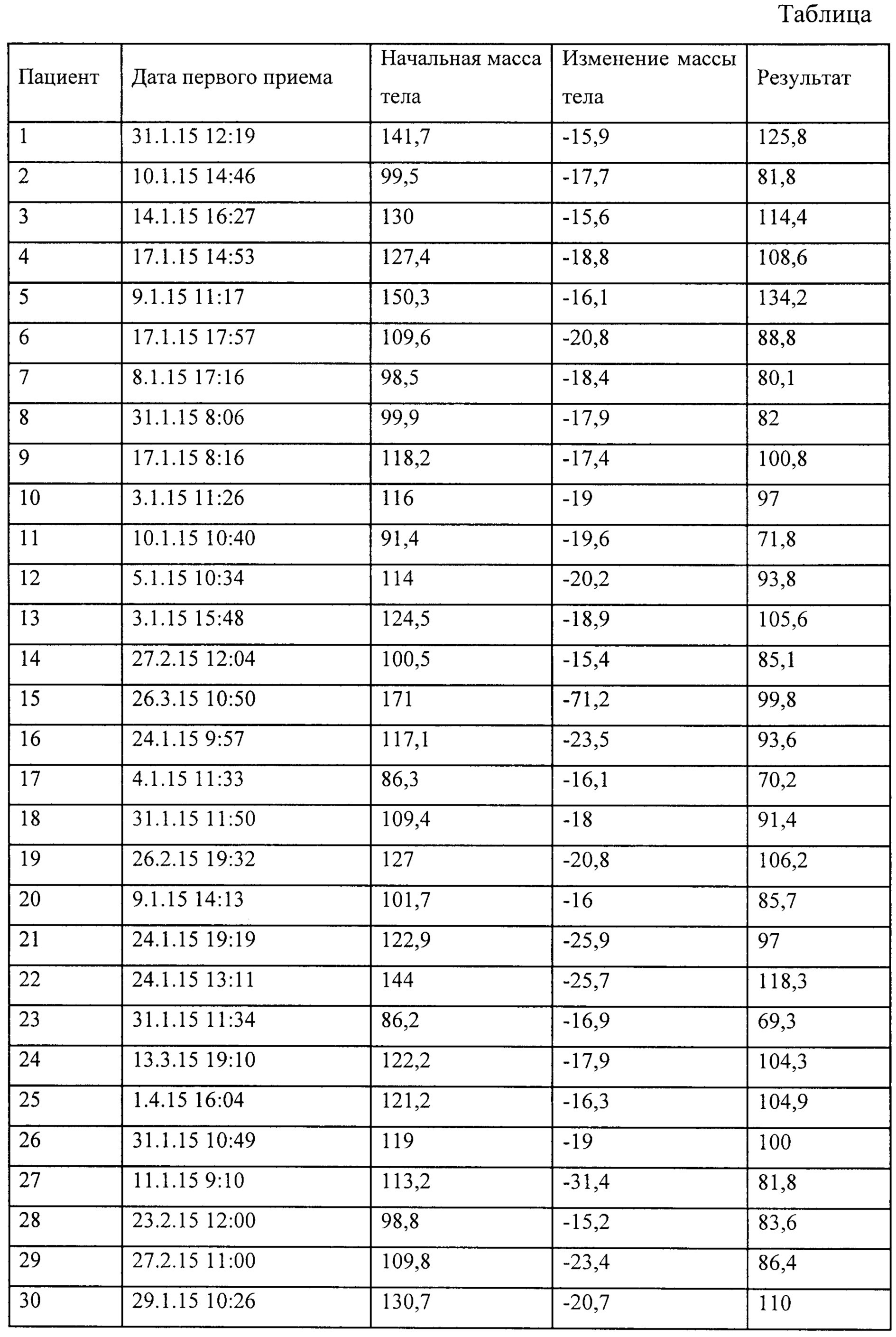 Изобретение относится к области медицины, а именно к способам снижения избыточной массы тела человека. Известен способ коррекции возрастных изменений кожи лица и шеи, при котором производят подкожную имплантацию золотых нитей вдоль нижнего края дермы, не захватывая подкожную клетчатку. Дополнительно осуществляют липосакцию в подбородочной области (RU 2186529, кл. А61В 17/00, опубликовано 10.08.2002). Также известен способ омолаживания кожи, при котором на участке омоложения имплантируют золотые нити и/или биополимерный гель. В субдермальное пространство на уровне внутреннего края дермы имплантируют золотые нити. Биополимерный гель имплантируют субдермально или внутрикожно в нижнюю треть дермы (RU 2135122, кл. A61F 2/02, опубликовано 27.08.1999). Недостаток известных способов состоит в их травматичности, поскольку предусматривает использование золотых нитей, которые через определенное время требуют удаления. Кроме того, в известных способах не задействованы рефлексогенные зоны человека, воздействие на которые способствует снижению веса. Известен способ пролонгированного воздействия на акупунктурные точки посредством иглы для рефлексотерапии, состоящей по меньшей мере из двух изогнутых стержней с заостренным концом, а другим концом закрепленных на держателе (RU 2388453, кл. А61Н 39/08, опубликовано 10.05.2010). Известный способ позволяет снизить у пациента избыточный вес и артериальное давление. Также известен способ коррекции веса тела человека, использующий иглорефлексотерапию, а именно воздействие иглой соответствующей конструкции на акупунктурные точки, в частности AT17 и AT18, проведение ее под кожей и выведение наружу в области другой акупунктурной точки (RU 2581492, кл. А61Н 39/00, опубликовано 20.04.2016). Недостаток обоих названных способов состоит в их травматичности, поскольку предусматривает использование игл, которые через определенное время требуют удаления, при этом время нахождения игл в теле не может быть длительным, а следовательно, эффект от воздействия в достаточной степени пролонгированным. Технический результат изобретения состоит в снижении травматичности при проведении предложенного способа с одновременным увеличением времени воздействия на организм человека, обеспечивающего пролонгированный эффект, способствующий закреплению полученных результатов и исключению рецидивов набора лишнего веса. Кроме того, предложенный способ позволяет: - ускорить обменные процессы организма человека; - существенно снизить его аппетит; - ускорить в несколько раз процесс снижения веса по сравнению с обычным иглоукалываем и рефлексотерапией; - оказать гарантированный лифтинговый эффект, предотвращая обвисание кожи в процессе потери человеком веса. Названный технический результат обеспечен в изобретении посредством следующей совокупности признаков. Способ снижения массы тела состоит в том, что в биологически активные точки на теле человека, отвечающие за активацию обмена веществ в организме, и/или усиление процесса жиросжигания, и/или блокировку аппетита, через иглу вводят гиалуроновую кислоту, формируя «гиалуроновую нить» в подкожно-жировой клетчатке, при этом нить устанавливают на глубину от 0,3 мм до 3 см вдоль кожного покрова. Клинически наилучшие результаты получены при установке указанных нитей в десять точек, отвечающих за все вышеперечи