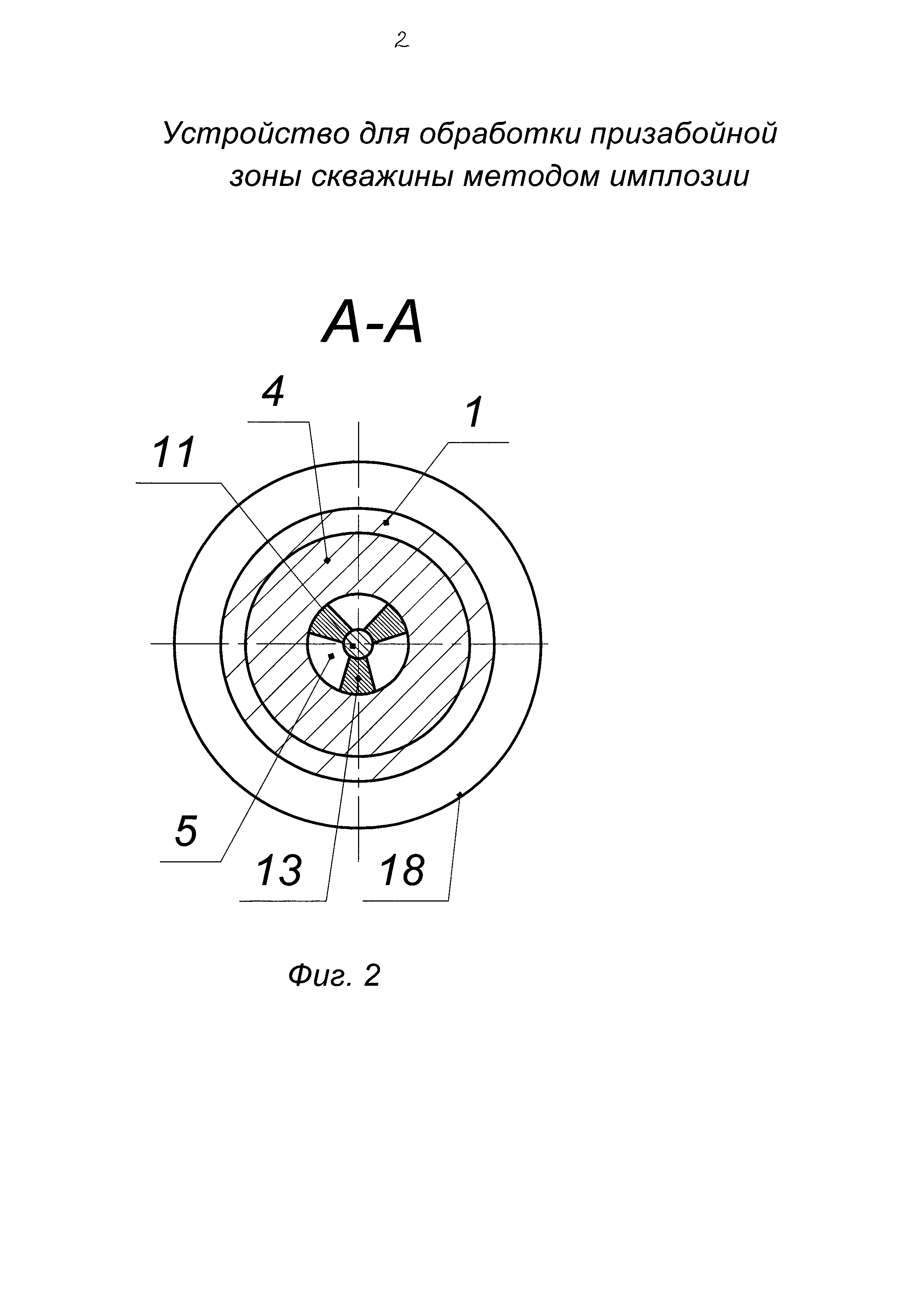 Устройство для обработки призабойной зоны скважины методом имплозии, содержащее корпус с верхним и нижним рядами радиальных каналов, размещенные в корпусе нижний ступенчатый поршень с осевым каналом и верхний подпружиненный поршень с осевым каналом, шаровой клапан с седлами, установленный между нижним ступенчатым и верхним подпружиненным поршнями и имеющий возможность перекрытия осевого канала верхнего поршня, отличающееся тем, что в шаровом клапане выполнен центральный канал, в котором жестко установлен шток, при этом нижний конец штока размещен в осевом канале нижнего ступенчатого поршня и пропущен сквозь нижний центратор, жестко закрепленный в осевом канале нижнего ступенчатого поршня, причем верхний конец штока размещен в осевом канале верхнего подпружиненного поршня и пропущен сквозь верхний центратор, жестко закрепленный в осевом канале верхнего подпружиненного поршня, при этом верхний подпружиненный поршень и нижний ступенчатый поршень имеют возможность ограниченного осевого перемещения в корпусе с центрированием относительно шарового клапана со штоком, при этом на верхнем торце нижнего ступенчатого поршня и на нижнем торце верхнего подпружиненного поршня выполнены седла шарового клапана в виде цилиндрических выборок.