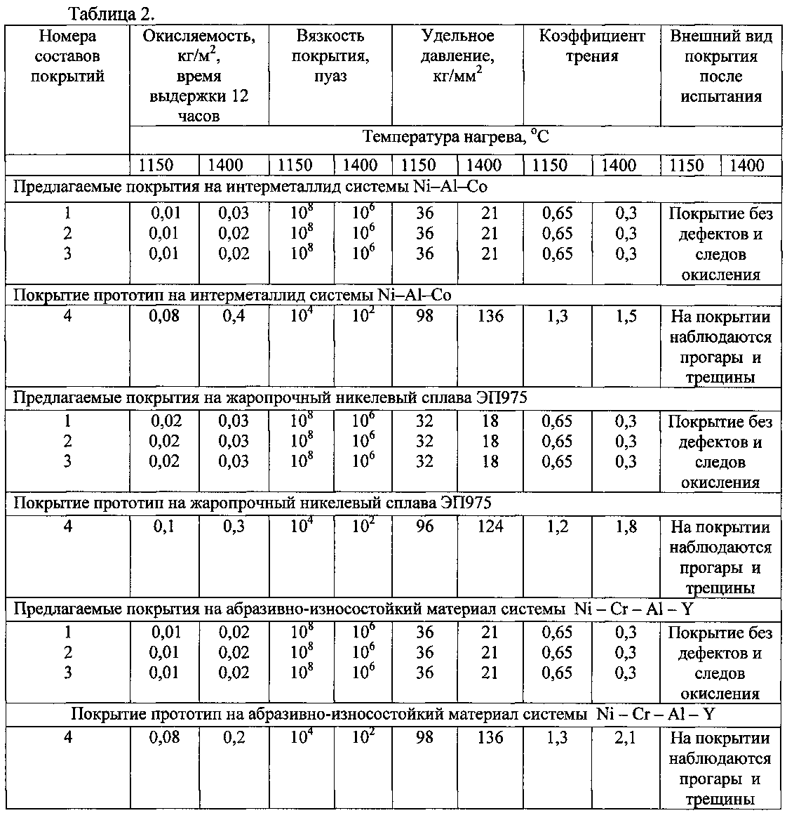 Изобретение относится к области производства силикатных материалов, которые могут быть использованы как защитные покрытия от окисления и в качестве высокотемпературной смазки при технологических нагревах в процессе изготовления деталей и полуфабрикатов в машиностроении и в других отраслях народного хозяйства. Известно защитное технологическое покрытие следующего химического состава, мас.%: (RU 2404933 C1, 27.11.2010). Известно также защитное технологическое покрытие следующего химического состава, мас.%: (RU 2151110 C1, 20.06.2000). Известно также защитное технологическое покрытие следующего химического состава, мас.%: (RU 2190584 C2, 10.10.2002). Известно также защитное технологическое покрытие для сталей и сплавов следующего химического состава, мас.%: (RU 2345963 C1, 10.02.2009). Известно также защитное технологическое покрытие для сталей и сплавов следующего химического состава, мас.%: (RU 2379238 C1, 20.01.2010). Известно также защитное технологическое покрытие следующего химического состава, мас.%: (RU 2379239 C1, 20.01.2010). Наиболее близким аналогом, взятым за прототип, является защитное технологическое покрытие следующего химического состава, мас.%: (RU 2312827 C1, 20.12.2007). Недостатками известных защитных технологических покрытий являются повышенные значения удельного давления и коэффициент трения, недостаточная жаростойкость, а также вязкость при высокотемпературных нагревах до 1400°C. Техническим результатом изобретения является повышение жаростойкости, вязкости, понижение значений удельного давления и коэффициента трения покрытия при температурах нагрева штамповок до 1400°C. Технический результат достигается за счет того, что предложено защитное технологическое покрытие, включающее SiO2, MgO, Na2O, 3CaO·Al2O3, Al2O3·MgO, Al2O3, при этом оно дополнительно содержит B2O3, Bаморфный, NiAl2O4, NiSiO4 при следующем соотношении компонентов, мас.%: Рентгеноструктурный и химический анализы предлагаемого защитного технологического покрытия показали, что введение в него B2O3, Bаморфный, NiAl2O4, NiSiO4 при заявленном содержании и соотношении компонентов приводит к тому, что в процессе технологических нагревов в покрытии образуются температуроустойчивые фазы 3CoO·Al2O3·SiO2, 3CoAl2O4, Al6Si2O3, 5CaO·3Al2O3, обеспечивающие повышение жаростойкости, вязкости, снижение удельного давления и коэффициента трения покрытия при температурах нагрева штамповок до 1400°C. Примеры осуществления. Технологический процесс изготовления шликера для защитного технологического покрытия проводился следующим образом. Для получения фритты защитного технологического покрытия брали следующие компоненты: SiO2; MgO; Na2O; 3CaO·Al2O3; Al2O3·MgO; B2O3; Bаморфный; NiAl2O4; NiSiO4; Al2O3 в пропорциях, указанных в таблице 1. Их поместили в фарфоровый барабан с алундовыми шарами в соотношении 1:1,5 и проводили размол и перемешивание компонентов в течение 3 часов на валковой мельнице. Варку фритты проводили в алундовых тиглях в камерной печи. Далее приготавливали шликер покрытия путем размола фритты и перемешивания компонентов с добавлением 250 мл водопроводной воды в фарфоровом барабане валковой мельницы в течение 36 часов. Готовый шликер покрытия выгружали в полиэтиленовую емкость, где в течение 5 суток проходило старение шликера. Шликер с вязкостью 21 Па·с, определенной вискозиметром ВЗ 246, наносили краскораспылителем на образцы: интерметаллида Ni-Al-Со, жаропрочного никелевого сплава ЭП975 и обра