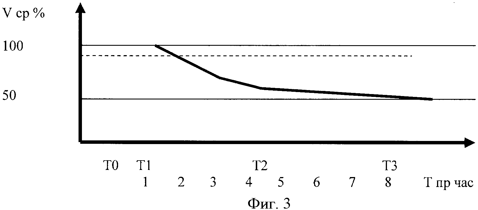 1. Область техники Изобретение относится к области добычи жидких полезных ископаемых, в основном, в нефтедобывающей промышленности, и может быть использовано при глубинно-насосной эксплуатации, в частности, нефтяных скважин. 2. Уровень техники Известен способ добычи нефти, в котором выбирают насос с производительностью, соответствующей максимальной для данной скважины скорости притока нефти, и осуществляют регулирование числа оборотов двигателя так, чтобы отток жидкости был равен ее максимальному притоку. В итоге имеет место непрерывный, равномерный процесс откачки жидкости. По данному способу мощность насосной установки однозначно определяются дебитом, соответственно, расход энергии фиксируется (патент РФ №2280151, МПК Е21В 43/12). Недостатком способа является отсутствие возможности для экономии электроэнергии, расходуемой в процессе работы насосной установки. Известны способы, реализующие циклический режим работы. К ним относится принятый в части способа за наиболее близкий аналог способ добычи скважинной жидкости, в котором размещают глубинно-насосное оборудование на рациональной глубине и осуществляют перекачку жидкости в систему нефтесбора насосом, с возможностью его работы в циклическом режиме штатной добычи жидкости, с выбором насоса откачки мощностью П1>>П2, где П1 - номинальная производительность насоса; П2 - ожидаемый дебит жидкости (патент РФ №2190087, МПК 7 Е21В 43/00). Недостаток способа состоит в том, что он не обеспечивает возможность получения заданного дебита при минимальном расходе энергии. Способ предполагает оптимизацию по комплексу параметров только величины дебита. В перечень параметров, по которым ведется оптимизация в известном техническом решении, расход энергии на подъем жидкости не входит. В части устройства за наиболее близкий аналог принято устройство комплектное ШГС5805-ИЭ (АРЕЖ. 656427.001 ТУ, Москва, 2004), включающее ключ 1, блок управления 3, причем первый вход ключа 1 соединен с силовой электросетью, второй вход - с выходом блока управления 3. Выход ключа 1 связан с шиной питания электропривода насоса и входом блока измерителя 2. Выход блока 2 соединен с входом блока управления 3. Недостаток устройства состоит в том, что оно не обеспечивает автоматическое регулирование управляющих параметров, при которых заданный дебит реализуется с минимальными затратами электроэнергии. 3. Сущность изобретения 3.1. Задача Техническая задача состоит в минимизации расходов электроэнергии при обеспечении заданного дебита жидкости. Технический результат заключается возможности получения заданного дебита при минимальных затратах электроэнергии. 3.2. Перечень чертежей На фиг.1 представлена временная диаграмма работы оборудования при циклическом режиме работы. На фиг.2 приведена кривая восстановления давления, характеризующая процесс заполнения скважины после откачки жидкости и выключения насосного оборудования. На фиг.3 представлена зависимость средней скорости притока жидкости от времени простоя насосного оборудования в циклическом режиме работы. На фиг.4 представлена блок-схема устройства управления, где: 1 - ключ, 2 - блок измерителя, 3 - блок управления, 4 - первый модем, 5 - канал связи, 6 - второй модем, 7 - блок регулятора. 3.3. Отличительные признаки Способ, в отличие от известного способа, включает следующие операции. Н