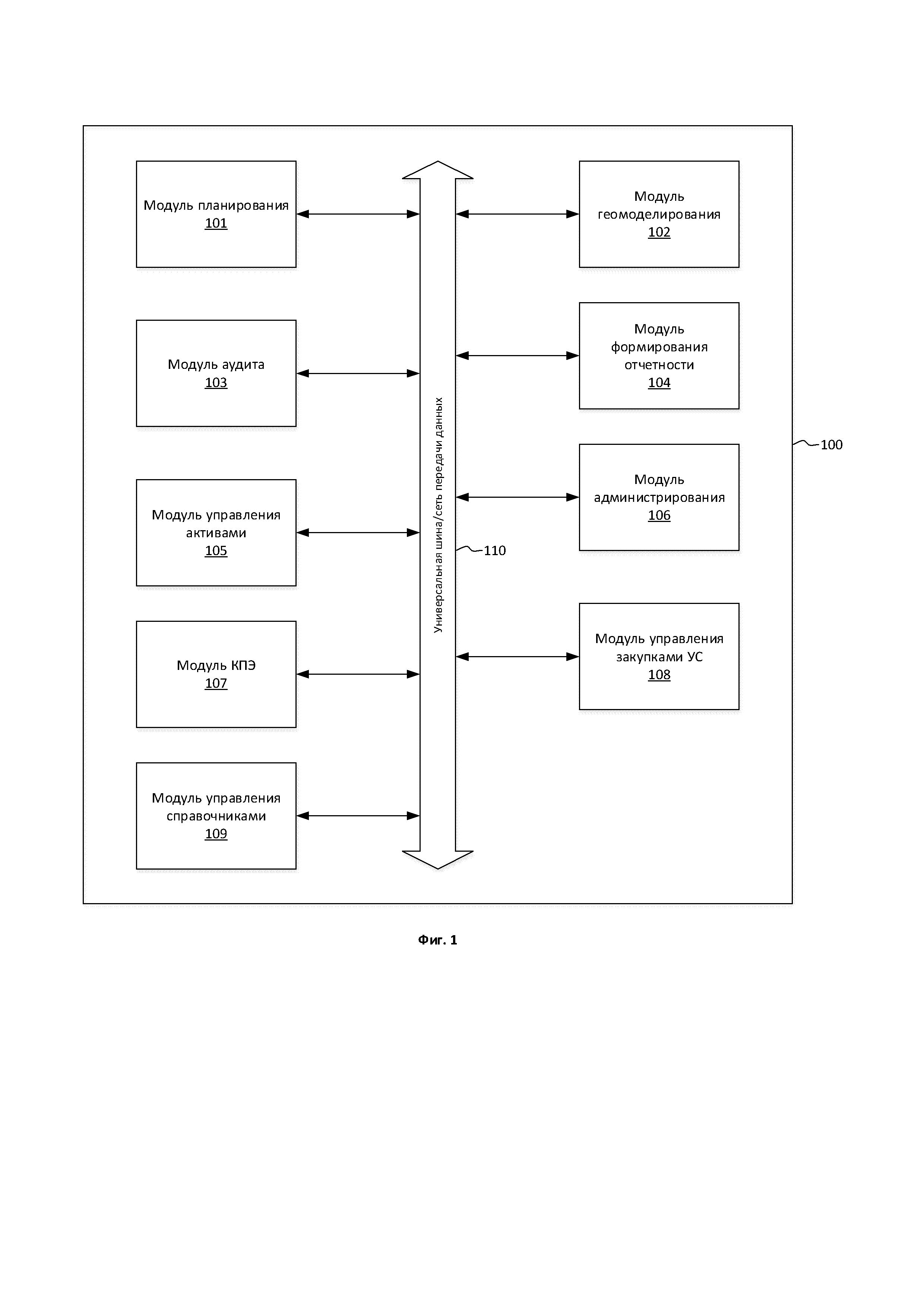 1. Автоматизированная система управления сетью устройств самообслуживания (УС), содержащая модули обработки данных, которые включают в себя: - модуль планирования, осуществляющий обработку данных УС для автоматизированного генерирования бизнес-планов развития сети УС и контроль выполнения бизнес-планов; - модуль геомоделирования сети УС, обеспечивающий обработку данных и анализ географических местоположений для размещений УС, а также выполненный с возможностью отображения на цифровой карте информации об УС, включающей по меньшей мере данные месторасположения УС и идентифицирующую информацию УС; - модуль аудита, выполняющий мониторинг действий пользователя системы и ведения на основании фиксируемой информации системного журнала; - модуль управления активами, осуществляющий формирование заявок на выполнение работ и контроль их исполнения, контроль эксплуатации и сопровождения УС, мониторинг состояния активов; - модуль формирования отчетности, обеспечивающий генерирование отчетов на основании шаблонов отчетов и обеспечивающий функционал по настройке структуры формирующих отчетов; - модуль администрирования, выполняющий обработку процессов доступа к системе, в частности политик доступа пользователей системы и параметров системы; - модуль управления закупками УС, осуществляющий обработку информации по договорам поставщиков, данных, относящихся к закупке УС, контроль исполнения поставок УС; - модуль ведения ключевых показателей эффективности (КПЭ), осуществляющий ведение реестра КПЭ, формирование на основании показателей КПЭ матрицы КПЭ для отчетных периодов, отслеживание достижения КПЭ; - модуль управления справочниками, осуществляющий реализацию механизма защиты целостности данных. 2. Система по п. 1, характеризующаяся тем, что модуль планирования дополнительно осуществляет в онлайн режиме контроль расходования бюджета при реализации бизнес-планов на основании данных эксплуатации УС. 3. Система по п. 2, характеризующаяся тем, что модуль планирования выполнен с возможностью в реальном времени отслеживать и классифицировать расходы, а также вычислять общую стоимость владения. 4. Система по п. 1, характеризующаяся тем, что модули располагаются в едином вычислительном устройстве и объединены единой шиной. 5. Система по п. 1, характеризующаяся тем, что по меньшей мере два модуля располагаются на различных вычислительных устройствах и объединены между собой каналами передачи данных. 6. Система по любому из пп. 4, 5, характеризующаяся тем, что вычислительное устройство представляет собой персональный компьютер, сервер или мейнфрейм.