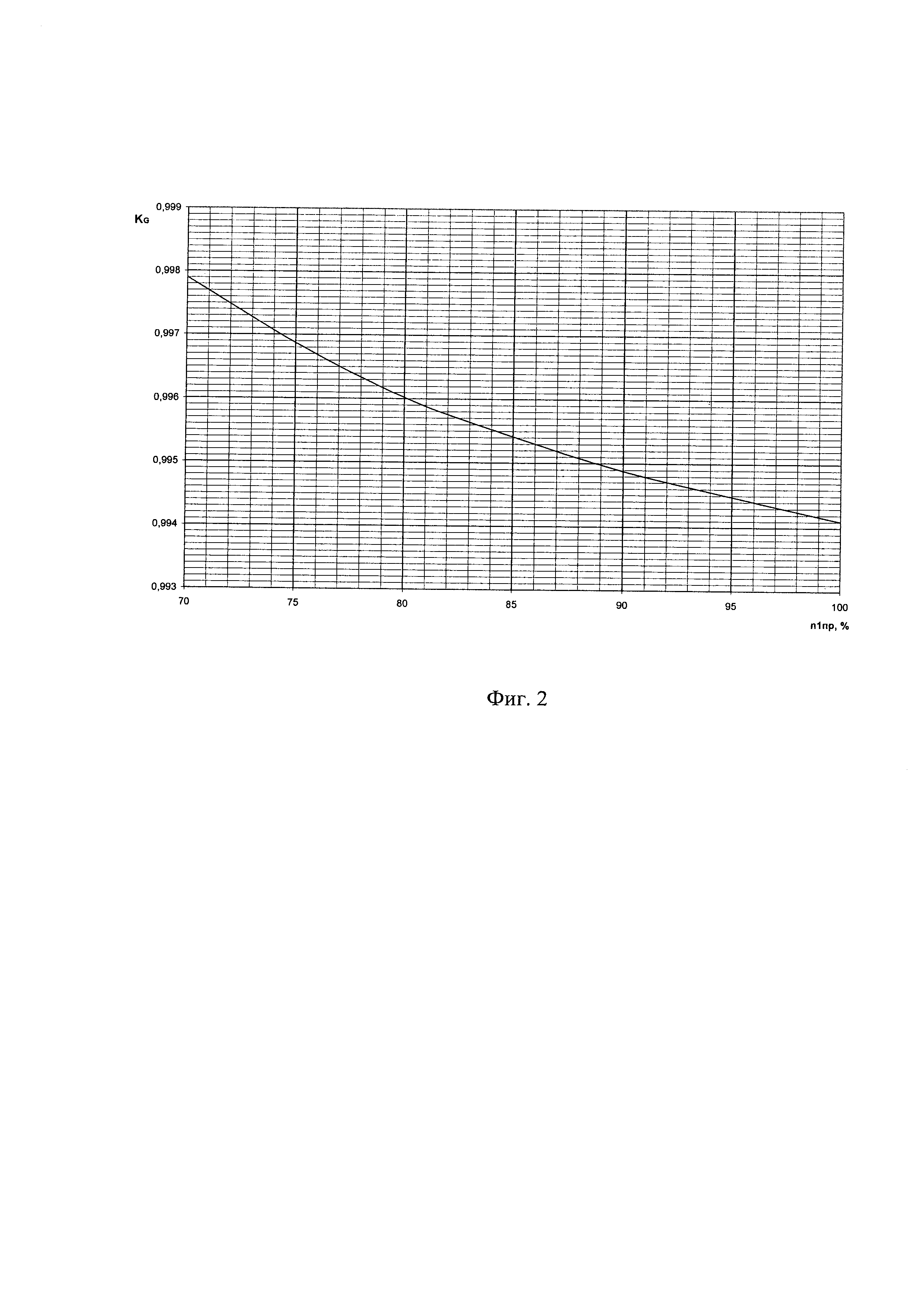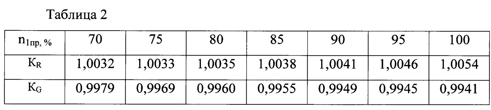 Изобретение относится к области авиадвигателестроения, а именно к авиационным газотурбинным двигателям (ГТД) и способам их испытаний. Известен способ испытаний авиационных ГТД, заключающийся в измерении параметров по режимам работы двигателя и приведении их к стандартным атмосферным условиям (Ю.А. Литвинов, В.О. Боровик. "Характеристики и эксплуатационные свойства авиационных турбореактивных двигателей". М.: "Машиностроение", 1979, стр. 136-137). При реализации известного способа не предусмотрено влияние противообледенительной системы на параметры двигателя, что приводит к некорректному определению параметров при околонулевых температурах окружающей среды при включенной противообледенительной системе и недостоверным результатам испытаний. Задача изобретения заключается в обеспечении возможности корректного определения параметров двигателя при испытаниях с включенной противообледенительной системой. Техническим результатом, достигаемым при использовании настоящего изобретения, является возможность корректного определения параметров двигателя при испытаниях в условиях обледенения с включенной противообледенительной системой и получение достоверных результатов испытаний. Указанный технический результат достигается тем, что в известном способе испытания ГТД, включающем измерение параметров по режимам работы двигателя и приведение их к стандартным атмосферным условиям, согласно настоящему изобретению для типа двигателей, включающих противообледенительную систему, предварительно проводят испытания на выбранном режиме работы, измеряют параметры при выключенной и при включенной системе противообледенения в рабочем диапазоне частот вращения роторов, вычисляют поправочные коэффициенты к измеренным параметрам путем отношения значений параметров, измеренных с включенной противообледенительной системой, к значениям параметров, измеренных с выключенной противообледенительной системой, формируют зависимости поправочных коэффициентов на измеряемые параметры от частоты вращения роторов Ki=f(n), а при проведении испытаний других двигателей в условиях обледенения с включенной противообледенительной системой умножают измеренные значения параметров на полученные коэффициенты. Предлагаемый способ испытаний реализуется следующим образом. Пример Один опытный образец двигателя подвергают испытаниям на испытательном стенде в рабочем диапазоне частот вращения роторов и измеряют тягу и расход топлива на режимах n1пр=70%, 75%, 80%, 85%, 90%, 95%, 100% при включенной и выключенной противообледенительной системе. В таблице 1 представлены значения тяги R и расхода топлива Gt, измеренные при на режимах n1пр=70%, 75%, 80%, 85%, 90%, 95%, 100% при включенной и выключенной противообледенительной системе: Вычисляют поправочные коэффициенты КR и КG, учитывающие влияние противообледенительной системы на параметры двигателя, путем отношения значения параметра, измеренного с включенной противообледенительной системой, к значениям параметра, измеренного с выключенной противообледенительной системой (таблица 2): По полученным значениям строят зависимости поправочных коэффициентов KR и KG в зависимости от приведенных оборотов ротора n1пр (фиг. 1 и фиг. 2). При испытаниях другого опытного образца двигателя в условиях обледенения при включенной систе