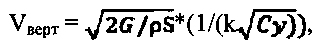где ρ - плотность воздуха (кг/м3), G - вес летательного аппарата (Н), S* - площадь крыла (м2), 1/k - тангенс угла планирования, Cy - коэффициент подъемной силы.