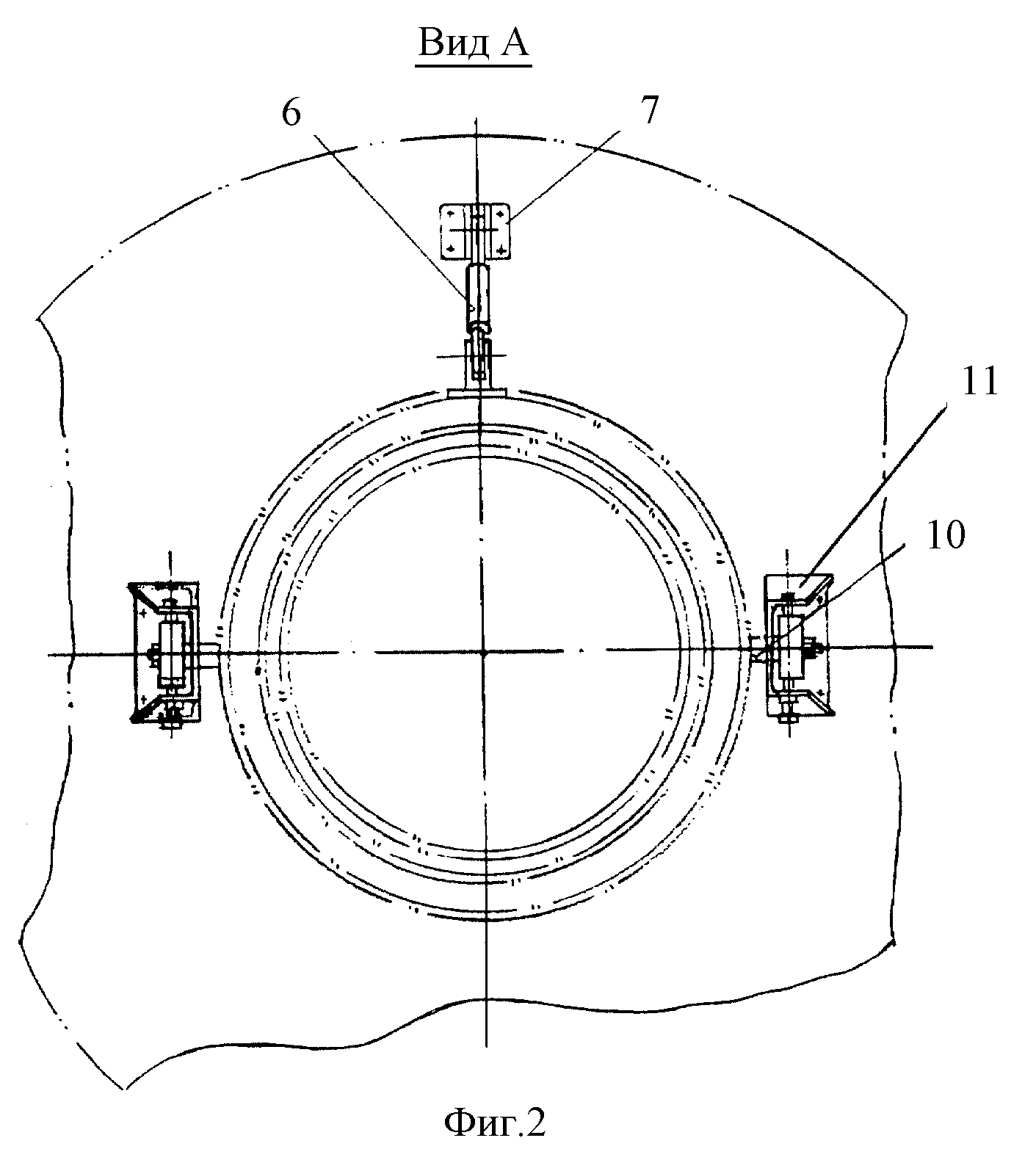 крепления агрегатов (в качестве агрегатов на чертежах изображено крепление выхлопной трубы к двигателю вспомогательной силовой установки (ВСУ) самолета). На фиг.2 - то же, вид А по