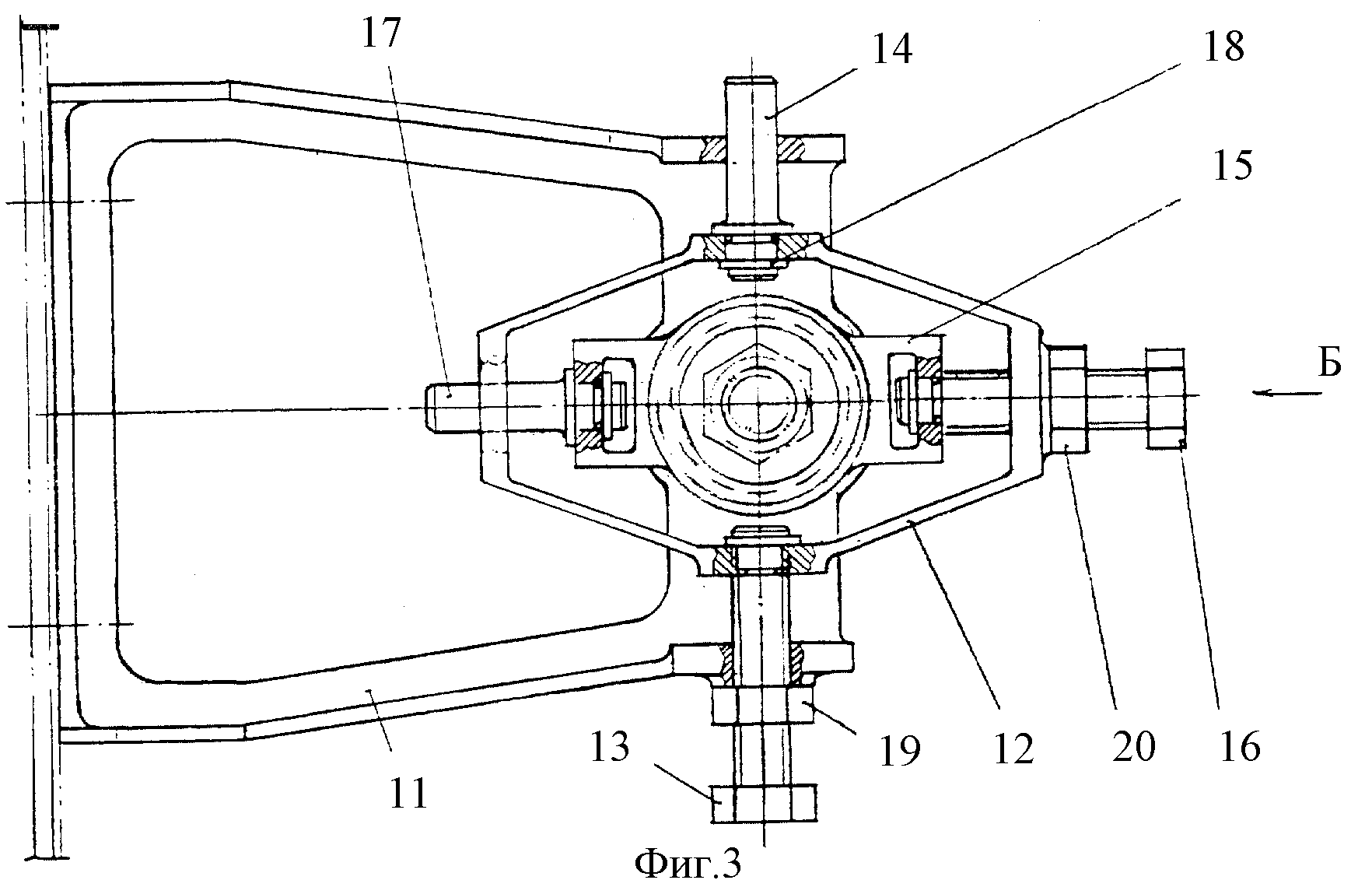 винтов 13, 16, установленных в серьгах 12, 15 боковых узлов крепления. При окончательной регулировке зазоров в состыковываемых агрегатах затягивают контргайки 19, 20, установленные на