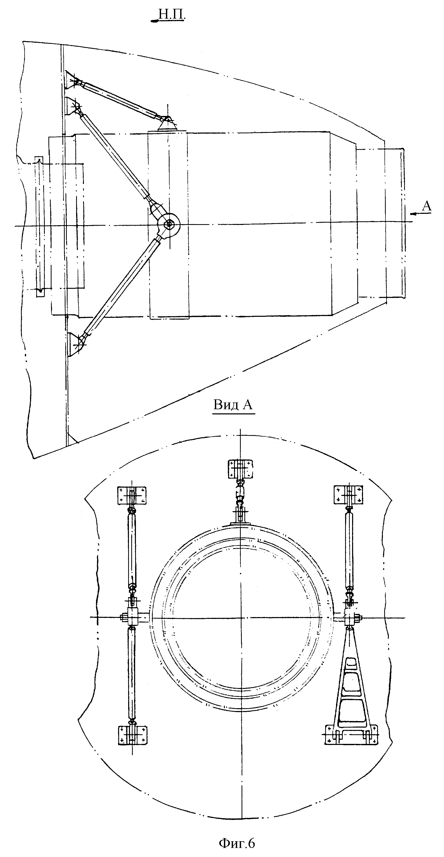 фиг.3. На фиг.6 изображен прототип. Устройство для крепления агрегатов, преимущественно для крепления выхлопной трубы к двигателю вспомогательной силовой установки