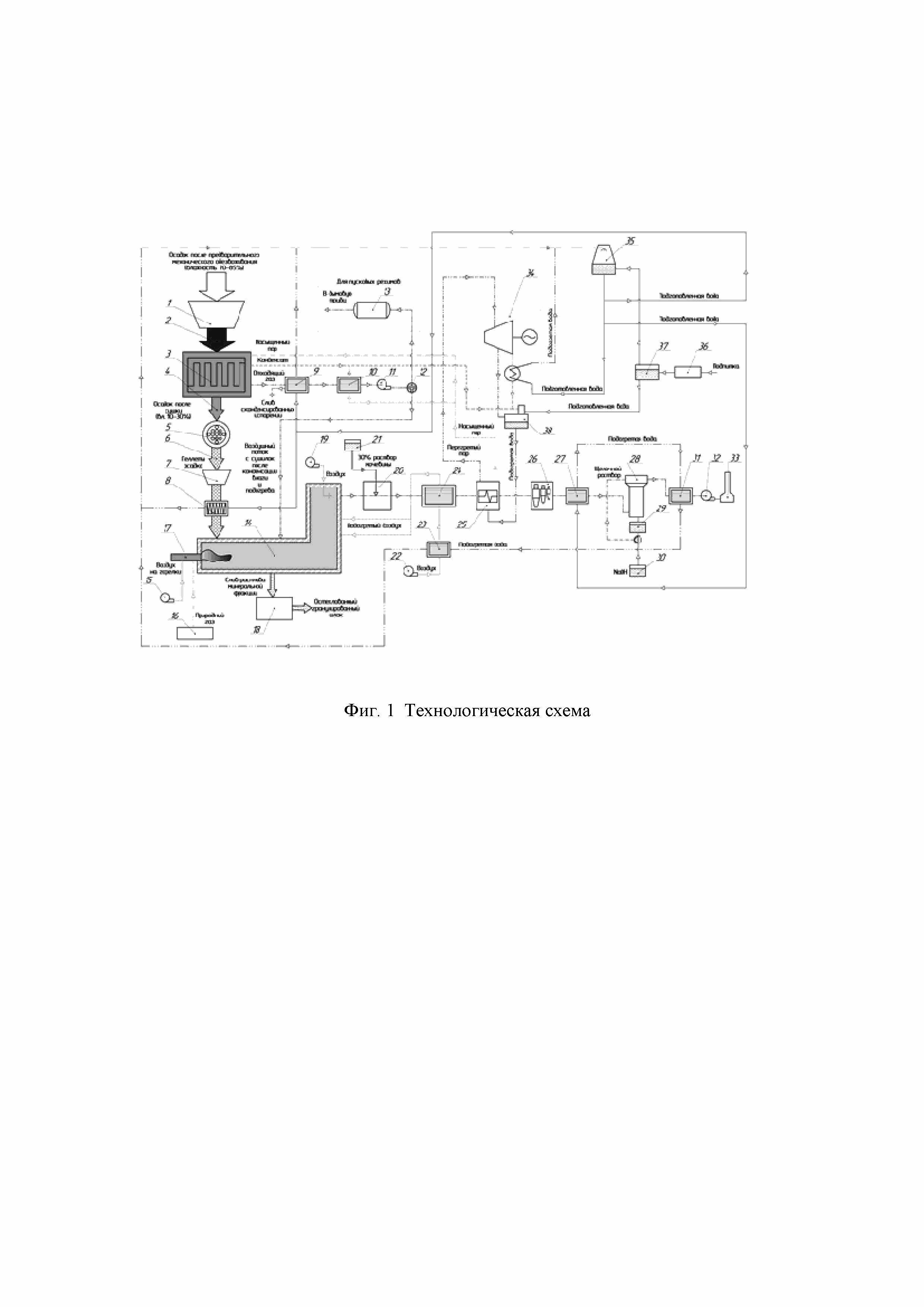 Изобретение относится к области утилизации органических отходов и шламов, в частности осадков сточных вод, с получением гранулированного остеклованного шлака для дальнейшего его использования. Техническим результатом является сокращение объёма образующихся или накопленных в результате работы очистных сооружений отходов. Способ включает сушку отходов перед подачей в плавильную камеру, загрузку их в плавильную камеру, сжигание органических составляющих на поверхности расплавленного шлака, полученного из минеральных составляющих отходов в плавильной камере, корпус которой охлаждают теплоносителем, утилизацию тепла получаемых газов и их очистку. При этом высушенный осадок подают на пеллетизацию, после чего подают в бункер накопитель, из которого подают в плавитель распределённым образом на поверхность шлакового расплава, который находится на дне плавителя, при этом температура в объёме плавителя должна быть не менее 1200°С и не более 1600°С без охлаждения корпуса плавителя теплоносителем, уровень жидкого шлака поддерживают внутри плавителя за счет минеральной фракции вновь поступающего на поверхность расплава исходного сырья, осуществляют распределённое дутье в плавитель, ввод окислителя, предварительно подогретого отходящим газом на теплообменниках, избыточного к стехиометрическому отношению окислитель/органическая компонента сырья, при этом избыток над стехиометрическим соотношением окислитель/органическая компонента сырья для полного окисления органики должен составлять 1,5-2 – для воздуха, 1,1-1,3 – для кислорода (по массе), осуществляют слив расплава из плавителя, отходящий газ эвакуируют из объёма плавителя через отверстие в плавителе с помощью системы дымоудаления, при этом отходящий газ на выходе из зоны дожигания разбавляют холодным воздухом до температуры 1000-1100°С, отходящий газ поступает в циклонный реактор восстановления NO, где его смешивают с раствором мочевины и происходит подавление содержания термических окислов азота, после чего отходящий газ направляют в теплообменник подогрева дутья и в котел-утилизатор, после охлаждения в котором отходящий газ направляют на газоочистку. 2 н. и 30 з.п. ф-лы, 3 ил.