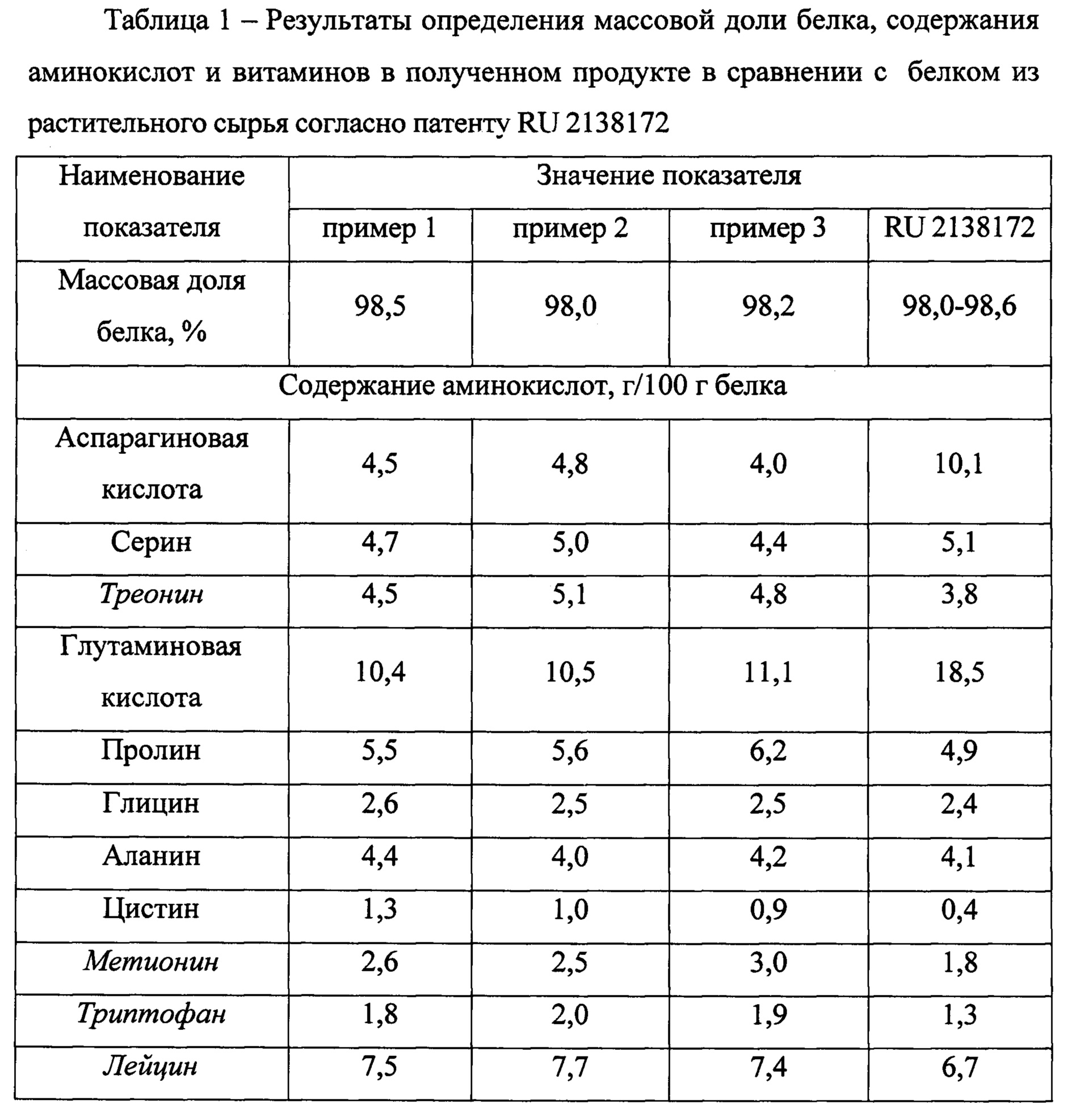 Изобретение относится к технологии комплексной переработки дикорастущего сырья с получением биологически активных веществ (БАВ) для использования в пищевой и фармацевтической промышленности. Семена сосны кедровой сибирской Pinus sibirica du tour (кедровый орех) представляют собой ценный источник биологически активных комплексов. Ядра кедрового ореха богаты витаминами группы В, Е, K, РР, А, С, а также железом, фосфором, цинком, магнием, медью и особенно марганцем. В них высоко содержание жира, белка, лизина, метионина и триптофана - наиболее дефицитных аминокислот. В составе кедрового ореха обнаружены ненасыщенные жирные кислоты: пальмитолеиновая, олеиновая, линолевая, линоленовая, гадолеиновая, эйкозадиеновая, эйкозатриеновая и насыщенные жирные кислоты: пальмитиновая, стеариновая, арахиновая и бегеновая. Большое внимание кедровые семена привлекают как масличное сырье. Кедровое масло по своим вкусовым качествам не уступает оливковому и превосходит льняное, конопляное, подсолнечное. Оно находит применение в различных отраслях пищевой промышленности: кондитерской, плодовоовощной, хлебобулочной, может использоваться как столовое масло. Кедровое масло получают из ядра кедрового ореха методом холодного или термического отжима. Кедровые жмых, полученный при извлечении масла из кедровых орехов, относится к вторичным сырьевым ресурсам, однако имеет большое значение как дополнительный источник полноценного белка, легкоусвояемых углеводов, витаминов и минеральных веществ. В состав кедрового жмыха входит, г/100 г сухих веществ: белка - 35,2; липидов - 24,5; углеводов - 35,0. Витаминный состав кедрового жмыха, мг/100 г: витамин Е - 11,2; витамин В3-3,25; витамин В2 - 1,83; витамин В1 - 0,6. Основным направлением использования кедрового жмыха является производство функциональных продуктов питания (халва, мороженое, конфеты и пирожные, джемы, творожные продукты) и биологически активных добавок к пище. В то же время целесообразно извлечение из жмыха ядра кедрового ореха БАВ с высокой добавленной стоимостью и широким потенциалом использования: белковых, витаминных, углеводных и минеральных комплексов. Из уровня техники известен ряд технических решений, направленных на получение пищевого растительного белка для его дальнейшего использования в производстве комбинированных биологически полноценных продуктов и белковых композиций. Так, известен способ получения белка из растительного сырья, преимущественно из чечевицы (а.с. 1741730, опубл. 23.06.92), предусматривающий измельчение сырья, экстракцию белка раствором гидроокиси натрия с массовой долей 0,05-0,07% при жидкостном коэффициенте 1:10 в течение 20-30 мин при температуре 28-30°C, осаждение уксусной кислотой до достижения рН 4,7-5,2, двойную промывку водой до рН 6-7 и удаление влаги методом сушки. В качестве недостатков известного изобретения следует признать длительность и высокие температуры экстракции белков из измельченного растительного сырья, в частности чечевичной муки, что способствует переходу в экстракт ряда биологически активных антипитательных веществ: ингибиторов трипсина, гемоглютелинов, гайтрогенов, экстрогенов, аллергенов, а также олигосахаров, снижающих степень чистоты целевого продукта и ухудшающих его функционально-технологические свойства. Предлагается способ получения белка из растительного с