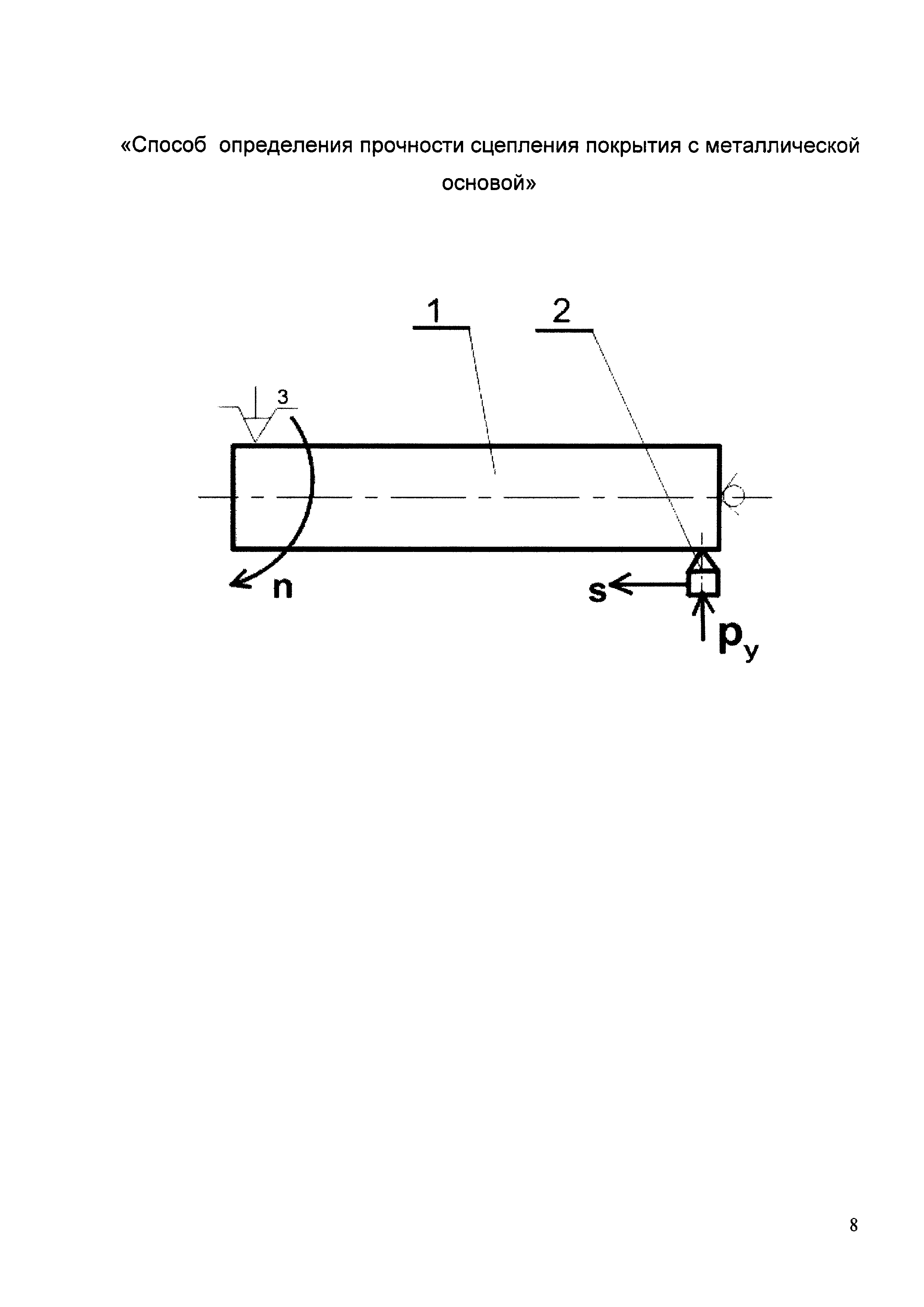 Изобретение относится к контролю качества покрытий с металлом и может быть использовано для количественной оценки прочности сцепления покрытия с металлической основой. Известны "Методы контроля прочности сцепления покрытий", пункт 5 ГОСТ 9.302, где: - по пункту 5.5 - "Метод изгиба" образец с покрытием изгибают под углом 90° в одну сторону, затем в другую до излома; - по пункту 5.12 - "Метод выдавливания" (штамповки) по ГОСТ 10510, основанный на выдавливании сферических лунок по Эриксену. Эти методы лишь частично позволяют судить о качестве покрытия без количественной оценки прочности сцепления покрытия с основой, а следовательно, достоверность их невелика. Наиболее близким по технической сущности и достигаемому техническому результату к заявленному изобретению является способ определения прочности сцепления соединения покрытия с тонколистовым металлом в процессе деформирования (см. патент РФ №2231044, кл. G01N 19/04, 2004 г.), согласно которому соединение деформируют растяжением с изгибом посредством его прокатки через два формообразующих ролика, один из которых содержит треугольные выступы, а другой - соответствующие им треугольные впадины, углы при вершинах которых изменяются в пределах от 60 до 95° с интервалом в 5°, причем прокатку исследуемого соединения проводят за один оборот роликов, начиная с угла в 60° и заканчивая углом в 95°, а прочность сцепления покрытия с подложкой определяют по соотношению площадей с нарушенным сцеплением покрытия с подложкой и участков с ненарушенным сцеплением. Для известного способа характерны большая трудоемкость его осуществления, обусловленная необходимостью выполнения нескольких различных схем пластического деформирования листового материала, а также невысокая достоверность, связанная с определением размеров участков с нарушенным и ненарушенным покрытиями. Техническим результатом настоящего изобретения является снижение трудоемкости осуществления способа и повышение его достоверности. Указанный технический результат обеспечивается тем, что в способе определения прочности сцепления покрытия с металлической основой, согласно которому образец с покрытием испытывают воздействием механических нагрузок, по результатам действия которых определяют прочность сцепления покрытия с металлической основой, новым является то, что в качестве механической нагрузки используют усилие давления, прикладываемое к покрытию образца алмазным наконечником индентора, причем поверхность образца разделяют на зоны, каждую из которых последовательно нагружают усилием давления с последующим контролем целостности покрытия, причем усилие давления на каждой последующей зоне увеличивают и проводят испытание до тех пор, пока не будет выявлена зона с нарушением целостности покрытия, а показатель прочности сцепления определяют по приложенному усилию давления на зоне образца, предшествующей зоне с нарушением сцепления покрытия с основой. Сущность заявленного способа поясняется графическими материалами, на которых представлена схема осуществления способа с использованием образца в виде цилиндра. Заявленный способ осуществляют следующим образом. Для реализации способа изготавливают образец в виде пластины или цилиндра с центровыми отверстиями по его торцам, на образующую цилиндра или поверхность пластины