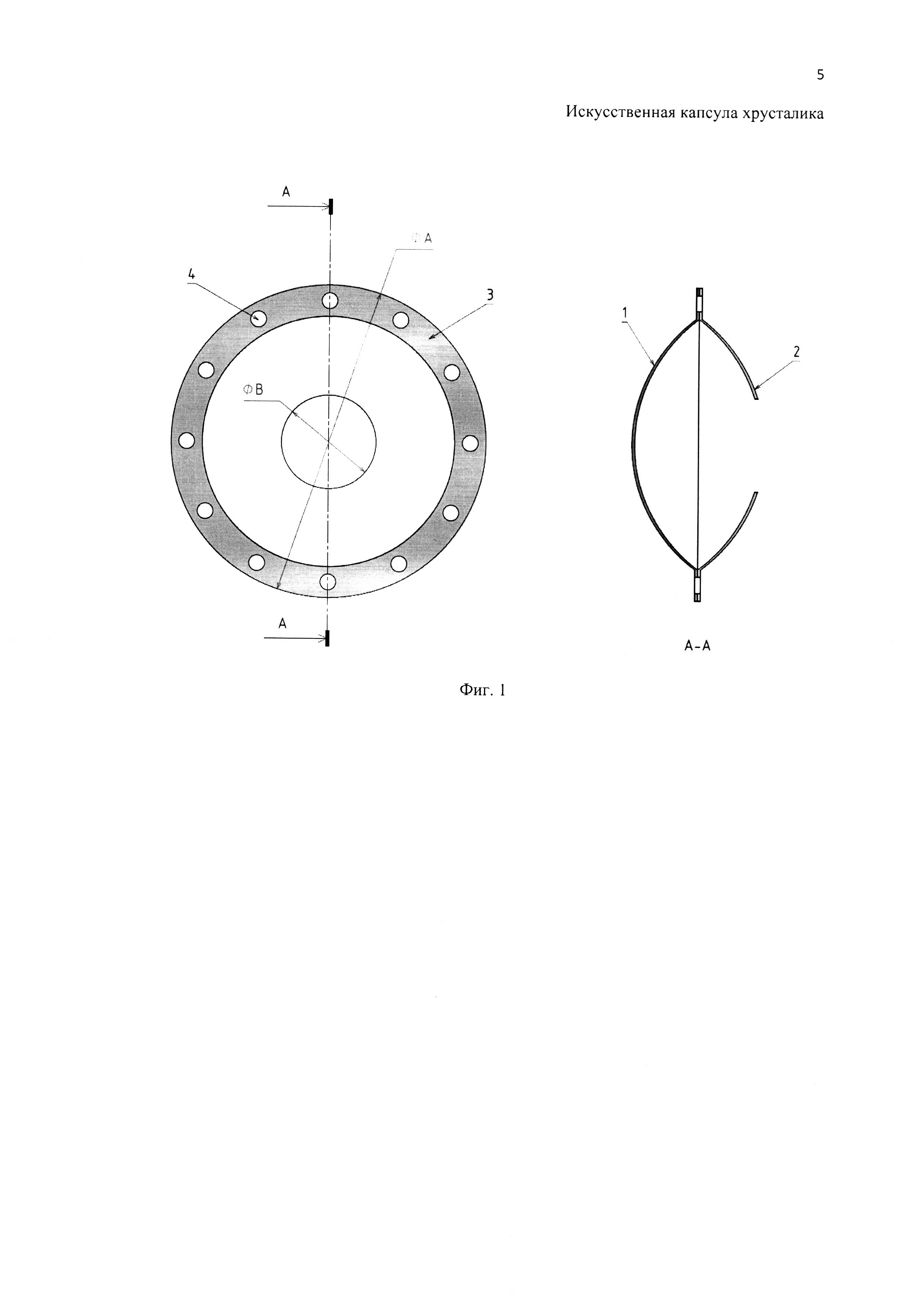 Изобретение относится к медицине, а именно офтальмохирургии. Искусственная капсула хрусталика выполнена из биосовместимого прозрачного полимерного материла и состоит из сферического сегмента и сферического пояса, соединенных по периметру и окруженных каемкой с отверстиями, предназначенных для подшивания. Применение данного изобретения позволит исключить выход силиконового масла в переднюю камеру и обеспечить возможность имплантации правильно рассчитанной ИОЛ в физиологическое положение хрусталика. 3 з.п. ф-лы, 1 ил.
