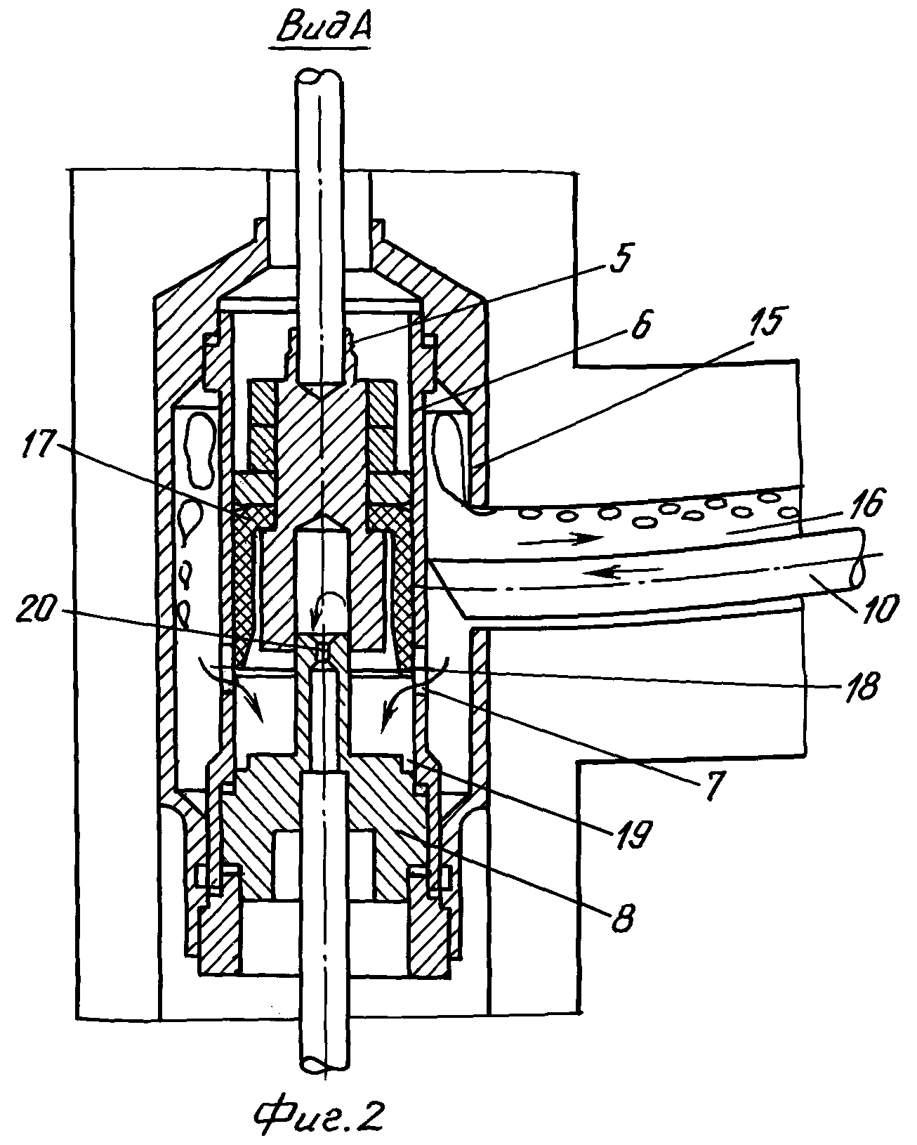 Изобретение относится к криогенной технике, а именно к устройствам дозированной выдачи жидкости и в том числе для капельного дозирования криогенной жидкости. Особенно целесообразно применение его для капельной дозированной подачи жидкого азота в герметизируемые емкости, перемещаемые транспортером, например бутылки, банки, пакеты, и т.п. емкости с пищевыми продуктами и напитками, а также биологическими или фармацевтическими веществами для создания в них безопасной инертной среды и избыточного давления после герметизации (закупорки) этих емкостей. При дозированной выдаче криогенной жидкости, например жидкого азота, его капля с температурой Т=-196°С попадает в емкость с продуктом и начинает испаряться при так называемом пленочном режиме кипения, "плавая" на генерируемой газовой подушке по поверхности продукта. Это обусловлено тем, что не происходит смачивание жидкостью поверхности стенки емкости или продукта, пока ее температура выше температуры границы устойчивости метастабильного состояния, которая, например, для азота = -160°С. Теплопередача от стенки к жидкой капле через генерируемую теплопроводную паровую прослойку относительно мала и для азота равна 150 Вт/(м2·К). Соответственно, период пленочного кипения капли азота объемом около 1 см3 составляет около 25 секунд, а время, необходимое для герметизации емкости не превышает 10 сек. Следовательно, такой объем капли будет максимальным при дозированной выдаче криогенной жидкости. При кипении капли образуется паровой объем азота, который в сотни раз превышает объем кипящей капли, вследствие чего происходит вытеснение и замещение более теплого воздуха из свободного пространства емкости над продуктом, т.е. в емкости образуется инертная сухая среда без запаха. Применение дозированной выдачи криогенной жидкости позволяет продлить срок хранения продукта с сохранением его первоначального качества, а также создать необходимое избыточное давление в емкости после ее закупорки, что тем самым позволяет улучшить эксплуатационно-товарные характеристики мягких емкостей при внешнем механическом и температурном воздействии в процессе нанесения этикеток, транспортировки и хранения в условиях температур от -40°С до +40°С. Известно устройство для дозированной выдачи криогенных жидкостей по патенту США №5743096, МПК 7 F17C 007/02, выбранное в качестве прототипа. Устройство содержит сосуд для криогенной жидкости с клапаном для заправки и поддержания уровня, штуцер для отвода пара из сосуда и дозатор, включающий клапан с управляемым приводом и цилиндр с входными отверстиями, выходное отверстие в седле, при этом входные отверстия в цилиндре сообщены с полостью сосуда для криогенной жидкости. Прототип содержит также канал для подъема парожидкостной смеси. Указанные сосуд для криогенной жидкости, дозатор и патрубок имеют теплоизоляцию. Концевой формирователь впрыскиваемой жидкости снабжен подогревателем для исключения льдообразования. Недостатком прототипа является невозможность обеспечения выдачи равных объемов криогенной жидкости в каждую перемещающуюся на конвейере емкость, особенно при впрыске капель с объемом в диапазоне от 0,2 см3 до 1 см3 при производительности линии розлива до 5 емкостей в секунду. Это происходит потому, что в прототипе нельзя исключить теплопритоки через тепло