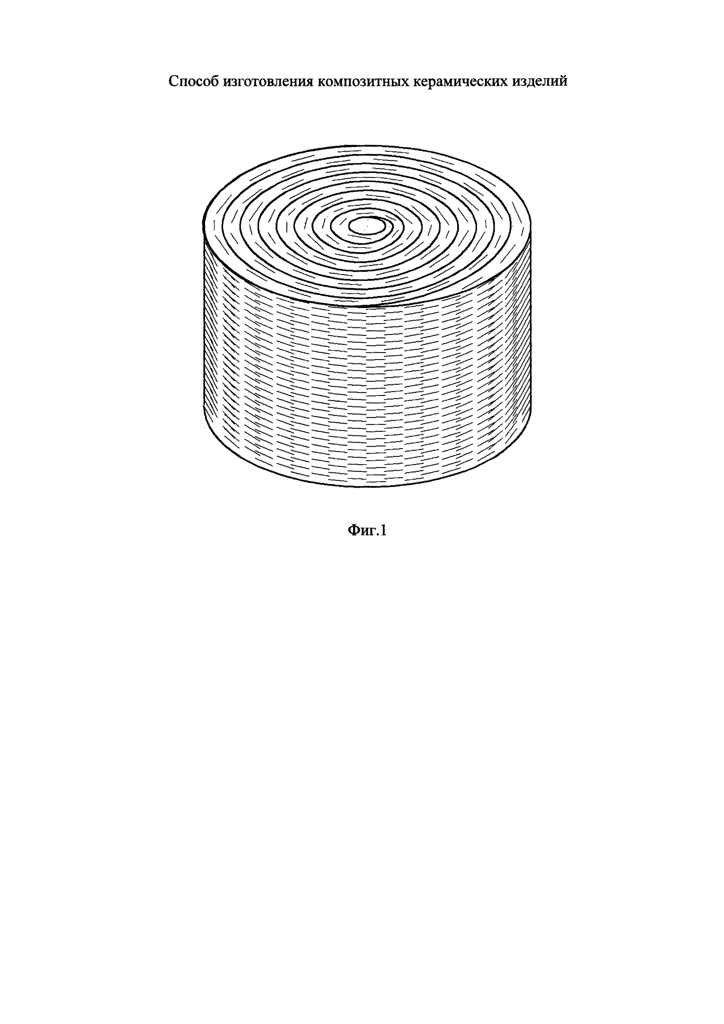 Способ изготовления композитных керамических изделий, включающий подготовку исходной шихты, содержащей порошковую матрицу, нитевидные армирующие кристаллы карбида кремния и вязкое связующее, формование экструзией из исходной шихты плоской заготовки с ориентацией в ней нитевидных армирующих кристаллов в направлении экструзии, формирование из заготовки в вязкотекучем состоянии брикета, отгонку из брикета связующего и горячее прессование изделия, отличающийся тем, что плоскую заготовку в вязкотекучем состоянии наматывают на оправку с образованием цилиндрического брикета, соосного оправке, оси брикета в процессе отгонки связующего придают вертикальное положение, а горячее прессование изделия осуществляют в направлении оси цилиндрического брикета.