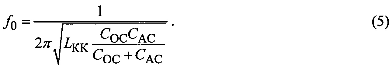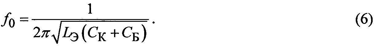 Управляемый напряжением каскодный генератор, содержащий активный элемент, выполненный на первом и втором транзисторах, которые соответственно включены по схеме «общий эмиттер - общая база», где эмиттер первого транзистора соединен с первым разделительным конденсатором, последовательно включенные первый, второй, третий и четвертый резисторы, в которых общая точка первого и второго резисторов подключена к базе второго транзистора и через первый конденсатор - к общей шине, общая точка второго и третьего резисторов соединена с базой первого транзистора, с первой обкладкой второго конденсатора и с первой индуктивностью, которая в свою очередь соединена последовательно со вторым разделительным конденсатором, а точка соединения третьего и четвертого резистора является отрицательной клеммой источника питания устройства, которое, кроме перечисленного, содержит первый, второй, третий и четвертый варикапы, причем катод первого варикапа соединен со второй индуктивностью, а также блокировочный конденсатор, присоединенный к общей шине, и третий и четвертый разделительные конденсаторы, отличающийся тем, что введен пятый нагрузочный резистор, который с одной стороны подключен к свободной обкладке блокировочного конденсатора и положительной клемме источника питания, вторая клемма которого соединена с общей шиной генератора, а с другой стороны - к первому резистору, к коллектору второго транзистора и через третий разделительный конденсатор - к общей точке соединения второй индуктивности и катода первого варикапа, анод которого подключен к общей шине, кроме того, для управления варикапами введен источник питания с первым, вторым и третьим развязывающими элементами, причем их общая точка является его положительной клеммой, а его вторая клемма соединена с общей шиной, причем второй вывод первого развязывающего элемента подключен через четвертый разделительный конденсатор - к выходу генератора, а также к свободному выводу второй индуктивности и к катоду второго варикапа, анод которого соединен с общей шиной, второй вывод второго развязывающего элемента подключен ко второму разделительному конденсатору и к катоду третьего варикапа, анод которого соединен с общей шиной, второй вывод третьего развязывающего элемента подключен к первому разделительному конденсатору и к катоду четвертого варикапа, анод которого соединен с общей шиной, кроме прочего к эмиттеру первого транзистора подключены второй вывод второго конденсатора и второй вывод четвертого резистора, а величины основных элементов генератора удовлетворяют следующему соотношению: где ƒ0 - частота генерации устройства, COC - емкость второго конденсатора, САС - эквивалентная емкость последовательного контура, образованного емкостями второго и четвертого варикапов и второй индуктивностью, LКК - эквивалентная индуктивность последовательного контура, образованного первой индуктивностью и емкостями первого и третьего варикапов, CБ - емкость первого конденсатора, CК - эквивалентная емкость контура, образованного емкостями первого, второго варикапов и второй индуктивностью, LЭ - эквивалентная индуктивность контура, образованного первой индуктивностью, емкостью первого конденсатора и емкостями третьего и четвертого варикапов.