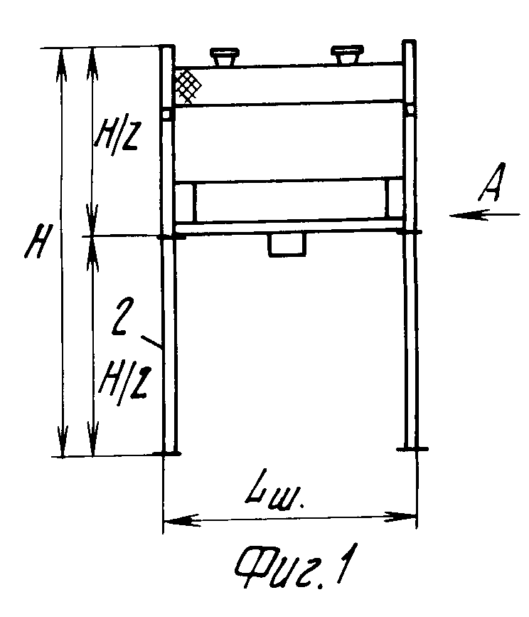 стойками 2. Кроме того, для обеспечения эффективной работы вентиляторов 7 предпочтительно, чтобы вылет стоек 2 из каркаса 1 составлял не менее 0,5 от общей высоты
