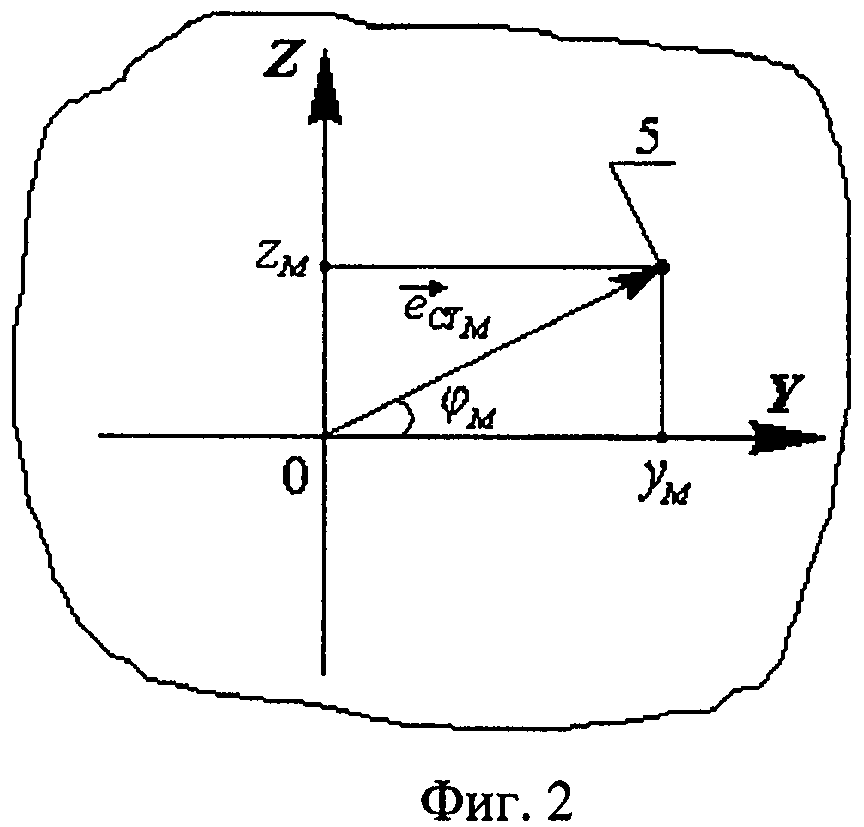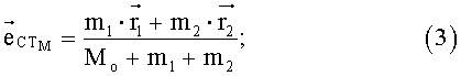 - расстояние от оси симметрии образцовой меры моментов инерции до центра масс контрольного груза m2, установленного вблизи торца 3 в плоскости, перпендикулярной оси симметрии, с учетом его углового положения в системе координат образцовой меры моментов инерции;