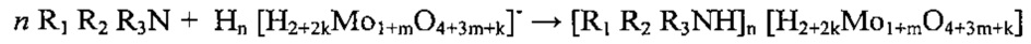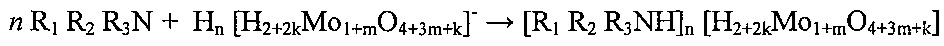 1. Способ гидроконверсии тяжелого углеводородного сырья с получением жидких углеводородных смесей в присутствии дисперсного катализатора, включающий приготовление водного раствора прекурсора катализатора на основе соединения молибдена, эмульгирование водного раствора прекурсора катализатора в углеводородном сырье или его части, смешение подготовленного сырья, содержащего эмульгированный прекурсор катализатора, с водородсодержащим газом, нагрев полученной газожидкостной смеси до сульфидирования прекурсора катализатора, гидроконверсию в восходящем потоке сырья в присутствии образующегося из прекурсора катализатора, разделение полученных продуктов в системе сепараторов и рециркуляцию водородсодержащего газа на стадию смешения, отличающийся тем, что в качестве прекурсора катализатора используют водный раствор полимолибденовой кислоты общей формулы Hn[H2+2kMo1+mO4+3m+k], где m>7, k>2, n находится в пределах от 1 до 5, имеющий значение рН в интервале от 0,5 до 3, перед эмульгированием прекурсора катализатора в углеводородное сырье вводят органический компонент, являющийся экстрагентом по отношению к указанному прекурсору катализатора и выбранный из первичных, вторичных и третичных аминов с числом атомов углерода в алкильных заместителях не менее 8, органических соединений, включающих пиридиновые, хинолиновые или пиррольные структурные элементы, и промышленных азотсодержащих экстрагентов, гидроконверсию осуществляют при давлении 5-9 МПа, а размер частиц катализатора составляет менее 100 нм. 2. Способ по п. 1, отличающийся тем, что значение рН водного раствора полимолибденовой кислоты находится в интервале от 1,0 до 2,5. 3. Способ по п. 1, отличающийся тем, что мольное отношение экстрагента и прекурсора (в пересчете на моль MoO3) составляет от 2:1 до 20:1, а соотношение объемов органической и водной фаз при эмульгировании - от 20:1 до 200:1. 4. Способ по п. 3, отличающийся тем, что соотношение объемов органической и водной фаз при эмульгировании составляет от 25:1 до 100:1. 5. Способ по п. 1, отличающийся тем, что вязкость сырья, содержащего экстрагент, при температуре эмульгирования в интервале 50-90°C составляет от 0,5 до 2,5 Па⋅сек. 6. Способ по п. 1, отличающийся тем, что перед смешением водородсодержащий газ подогревают до 420-450°C, а гидроконверсию осуществляют при соотношении водород:сырье = (500-1500):1 нл/л, температуре 420-450°C и длительности пребывания сырья в реакционной зоне 0,33-2 часа. 7. Способ по п. 1, отличающийся тем, что часть непревращенного остатка гидроконверсии рециркулируют на стадию смешения. 8. Способ по п. 7, отличающийся тем, что другую часть непревращенного остатка гидроконверсии используют для регенерации прекурсора катализатора, который рециркулируют на стадию эмульгирования. 9. Способ гидроконверсии тяжелого углеводородного сырья с получением жидких углеводородных смесей в присутствии дисперсного катализатора, включающий приготовление водного раствора прекурсора катализатора на основе соединения молибдена, эмульгирование водного раствора прекурсора катализатора в сырье или его части, смешение подготовленного сырья, содержащего эмульгированный прекурсор катализатора, с водородсодержащим газом, нагрев полученной газожидкостной смеси до сульфидирования прекурсора катализатора, гидроконверсию в восходящем потоке сырья в присутствии 