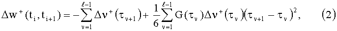 Способ определения параметров модели погрешностей измерений акселерометров инерциальной навигационной системы (ИНС) по измерениям спутниковой навигации, включающий измерения кажущихся ускорений движущегося в инерциальном пространстве объекта, производимые акселерометрами ИНС объекта в приборной инерциальной системе координат (ПИСК), а также сеансы навигационных определений по сигналам систем "Глонасс" и GPS, по которым в моменты времени τν, ν =1, 2, 3… проведения сеансов определяют корректирующие поправки к вектору скорости и к вектору координат навигационной траектории в БИСК, отличающийся тем, что в ходе движения, начиная с некоторого момента ti в моменты τν, ν=1, 2, …, l проведения сеансов навигационных определений, где первый момент τ1 совпадает с ti, из полученной на очередном сеансе корректирующей поправки к вектору скорости вычитают сигналы, пропорциональные произведению гравитационного градиента на полученную корректирующую поправку, умноженную на квадрат временного интервала между моментами τν и τν+1 соседних сеансов, из получаемых разностей по мере прохождения сеансов в моменты τν накапливают суммы, начиная с того же начального момента ti по показаниям акселерометров ИНС накапливают кажущиеся скорости по осям ПИСК до достижения модулем вектора кажущейся скорости заданного значения, в этот момент ti+1 фиксируют в вычислительном устройстве (ВУ) объекта компоненты кажущейся скорости, накопленные на интервале [ti, ti+1], корректирующая поправка Δv+(ti+1) к вектору скорости, относящаяся к моменту ti+1, становится последней в накапливаемой на данном интервале сумме разностей, у сумм разностей, выработанных по корректирующим поправкам l состоявшихся на интервале [ti, ti+1] сеансов, меняют знаки на противоположные и определяют тем самым накопленные на интервале [ti, ti+1] ошибки компонент кажущейся скорости, вызванные погрешностями измерений инерциальной навигационной системы, запоминают их, эти ошибки компонент кажущейся скорости суммируют с запомненными на том же интервале компонентами кажущейся скорости по осям ПИСК и определяют уточненный вектор кажущейся скорости этого интервала в проекциях на оси БИСК, определяют орт этого вектора и проектируют на него вектор ошибок компонент кажущейся скорости, вызванных погрешностями измерений инерциальной навигационной системы, по этим данным определяют и запоминают в ВУ оценку ошибки модуля измеренной в ПИСК кажущейся скорости, обусловленную погрешностями измерений инерциальной навигационной системы, а также относительные проекции трех векторов кажущейся скорости, сформированные по показаниям каждого отдельного акселерометра ИНС на орт уточненного вектора кажущейся скорости, повторяют такие операции еще не менее чем на двух интервалах активного движения, характеризующихся взаимно неколлинеарными направлениями накапливаемых на них и на первом интервале векторов кажущейся скорости, все операции вплоть до определения ошибок компонент кажущейся скорости, вызванных погрешностями измерений инерциальной навигационной системы, повторяют хотя бы на одном интервале