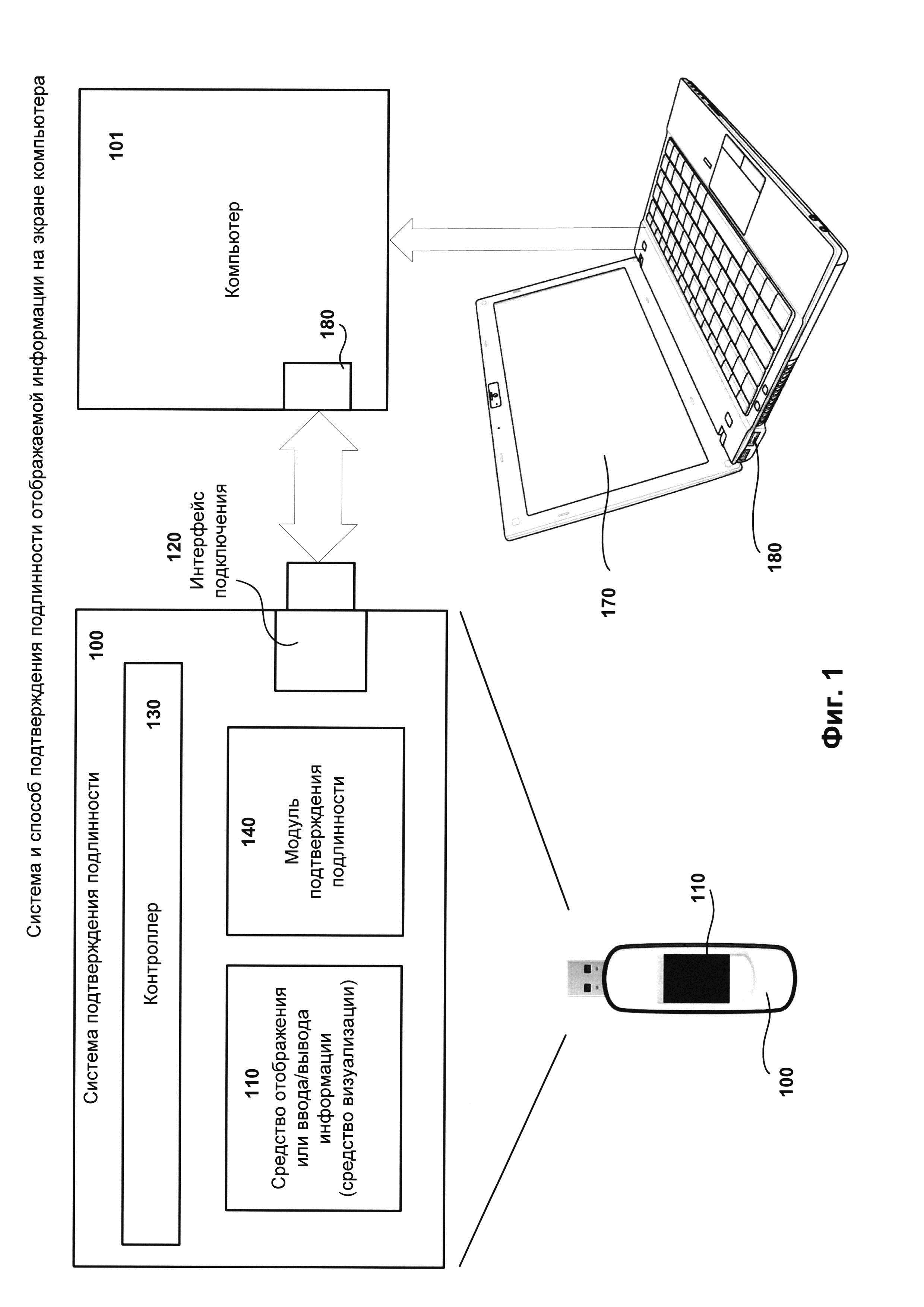 Область техники Изобретение относится к средствам защиты от подмены электронных документов, например, таких как финансовые и ценные бумаги, во время их утверждения (одобрения), а более конкретно к средствам обеспечения подлинности отображаемой информации (например, электронного документа) на экране компьютера в реальном времени. Уровень техники Компьютерная безопасность стала неотъемлемой частью современных информационных (компьютерных) технологий. Особенно, когда идет речь о банковских операциях, передаче конфиденциальных данных, в частности персональных, и взаимодействиях с корпоративными сетями. В то же время подавляющее большинство пользователей используют стандартные вычислительные устройства (стационарный компьютер, ноутбук, смартфон и др.), которые не позволяют обеспечить необходимый уровень защиты при работе с информацией, требующей конфиденциальности. Так, устройства могут быть скомпрометированы злоумышленниками, а особой опасностью для указанных устройств является таргетированная атака, во время которой будет получен как доступ к данным на устройстве, так и к его управлению. Таргетированной (англ. target - цель) атакой называется персонализированная атака, направленная на конкретную цель. При этом такие устройства зачастую является привычными для работы пользователя, которому сложно, а зачастую и невозможно отказаться от их использования или заменить их каким-либо другим устройством, более безопасным. При этом пользователь не может отказаться не только от самих вычислительных (аппаратных) устройств, но и в большинстве случаев от установленного на них программного обеспечения (приложений). Один из вариантов решения проблемы по обеспечению необходимого уровня защиты при работе с информацией, требующей конфиденциальности, на устройствах заключается в использовании компактного внешнего устройства, взаимодействующего с устройствами пользователя. Такое устройство будет выполнять операции (вычисления) внутри себя, а так как эти операции будут не доступны с устройства пользователя, которое может быть скомпрометировано, то операции будут безопасными. В качестве примера такого устройства выступает USB eToken (защитный электронный ключ). eToken широко применяется для целей аутентификации, формирования ключей и в прочих задачах, имеющих отношение к информационной безопасности. Особенностью такого устройства является то, что устройство выполняет вычисления, к которым нельзя получить доступ с компьютера, т.е. с устройства, на котором производятся действия, требующие защиты. Однако как написано в начале, сами вычислительные устройства (например, компьютер) пользователя подвергаются различным атакам, во время которых устанавливается вредоносное программное обеспечение (ПО) на компьютер. После чего вредоносное ПО может стать посредником между устройством (eToken) и приложением, которое производит конфиденциальные действия (например, подписывает документ или производит банковскую транзакцию), и получить возможность перехватывать и изменять различные данные (например, сообщения, пароли, ключи). Такой метод называется еще атака «человек посередине» (англ. man-in-the-middle), во время которого вредоносное приложение (ПО) становится посредником (еще одним звеном) между устройством и другим приложением. Кроме того, при так