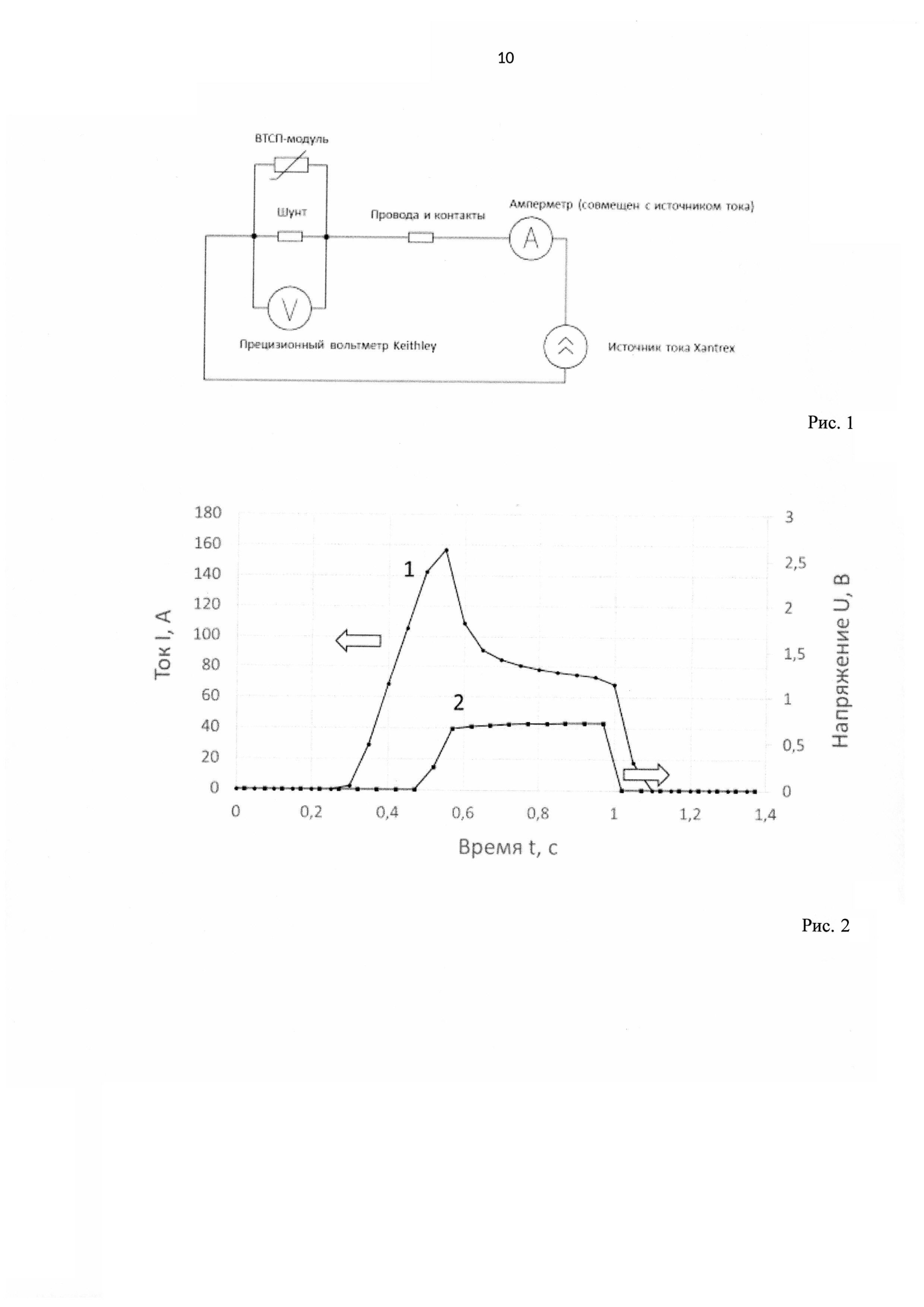 1. Модуль ограничителя тока, характеризующийся тем, что включает, по меньшей мере, один сверхпроводящий элемент, расположенный в керамической капсуле и находящийся в термическом контакте с материалом капсулы, где капсула выполнена из термостойкой теплопроводной керамики с коэффициентом теплопроводности не менее 1 Вт/м/К, электрическим сопротивлением не менее 105 Ом∙м и электрической прочностью не менее 400 В/м. 2. Модуль по п. 1, характеризующийся тем, что капсула выполнена из оксидной керамики с коэффициентом теплопроводности от 1,4 до 2,3 Вт/м/К, отверждаемой при температуре, не превышающей 400°C. 3. Модуль по п. 2, характеризующийся тем, что капсула выполнена из керамики, содержащей до 75 масс. % Аl2O3, до 15 масс. % MgO, 11-18 масс. % Mg2(OH)2PO4 и до 2 масс. % Н3ВО3. 4. Модуль по п. 3, характеризующийся тем, что капсула выполнена из керамики, дополнительно содержащей до 40 масс. % оксида, карбида или нитрида, выбранного из группы, включающей Аl2O3, SiC, BN, TiN. 5. Модуль по п. 1, характеризующийся тем, что сверхпроводящий элемент представляет собой высокотемпературную сверхпроводящую ленту второго поколения. 6. Модуль по п. 1, характеризующийся тем, что включает сверхпроводящий элемент, расположенный в капсуле в виде спирали. 7. Модуль по п. 1, характеризующийся тем, что включает несколько прямолинейных сверхпроводящих элементов, расположенных в капсуле параллельно друг другу. 8. Ограничитель тока, характеризующийся тем, что включает модуль ограничителя тока в соответствии с любым из предшествующих пунктов формулы, клеммы для включения упомянутого модуля в электрическую цепь и контейнер с криогенной теплопроводящей средой.