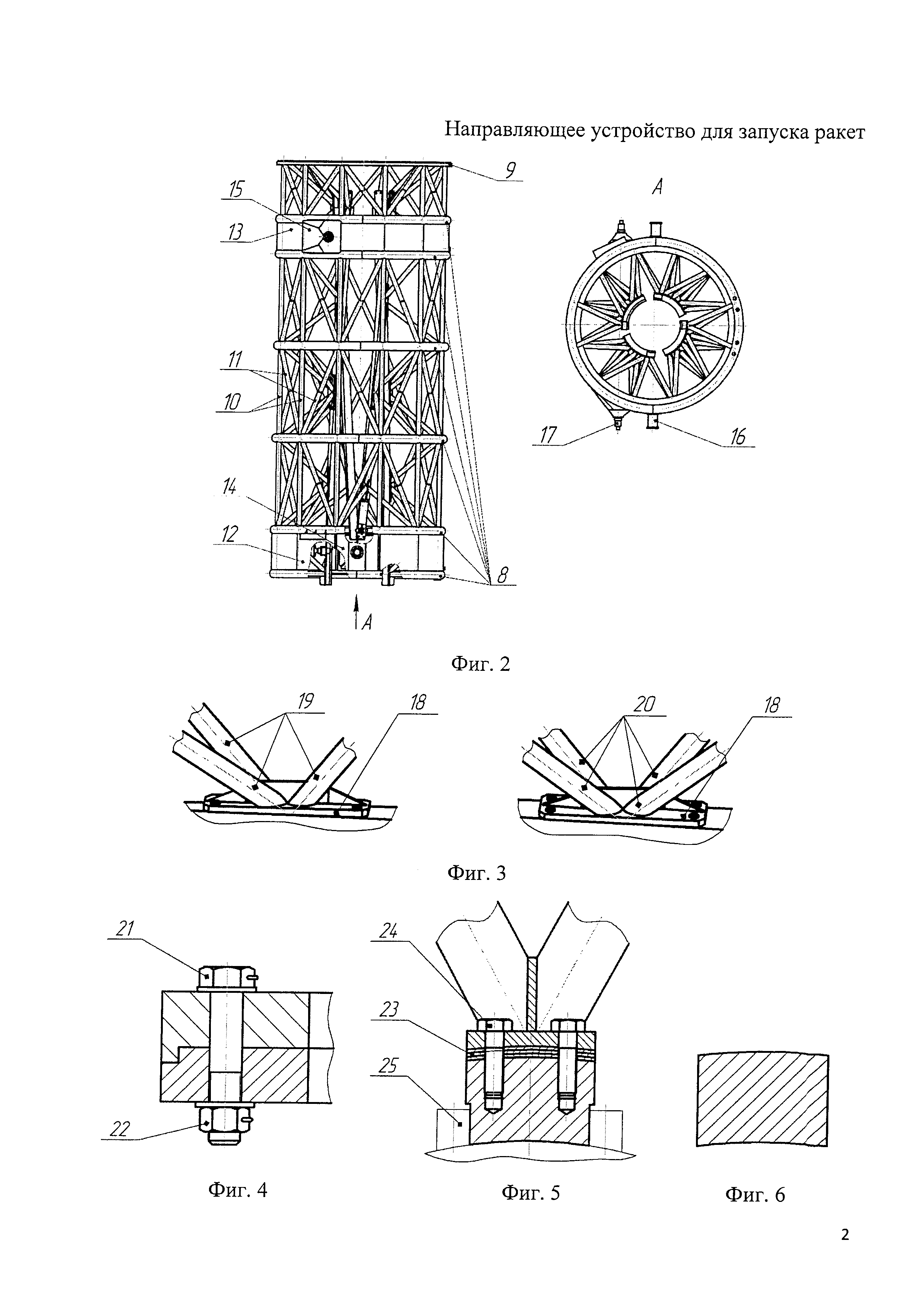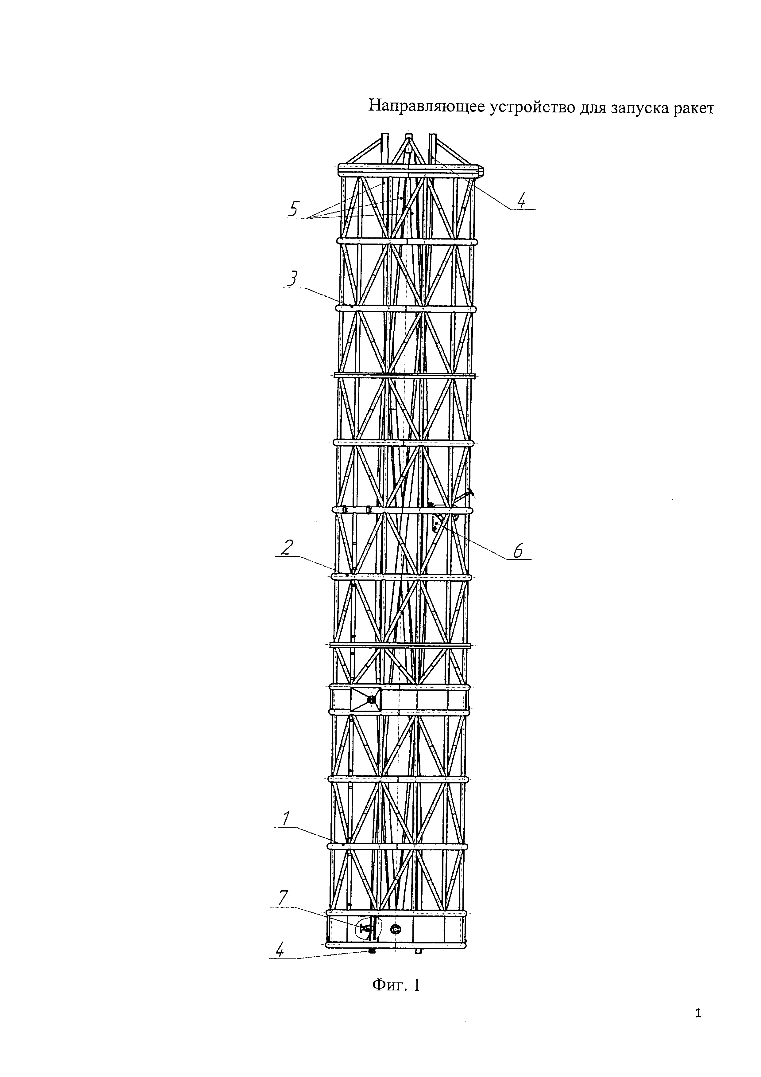 1. Направляющее устройство для запуска ракет, содержащее ферменный каркас, выполненный из шпангоутов, соединенных продольными трубами и раскосами, и усиленный металлическими листами, внутри которого закреплены винтовые направляющие полозы для скольжения ракеты, формирующие калибр, причем один полоз является ведущим, отличающееся тем, что ферменный каркас выполнен состыкованным из нескольких секций, винтовые направляющие полозы выполнены цельнометаллическими составными по длине, их наружные и внутренние поверхности имеют радиусную форму, а по бокам ведущего полоза выполнены проточки для зацепления ракеты, кроме того, в местах крепления полозов и каркаса в зазоры дополнительно устанавливается набор прокладок для регулирования диаметра и прямолинейности оси калибра. 2. Направляющее устройство по п.1, отличающееся тем, что ферменный каркас выполнен из трех сварных секций. 3. Направляющее устройство по п.1, отличающееся тем, что каждый из винтовых направляющих полозов представляет собой фрагмент толстостенной трубы. 4. Направляющее устройство по п.1, отличающееся тем, что в качестве прокладок используют металлические пластины.