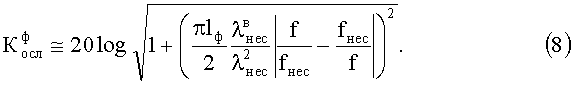 , тогда коэффициент ослабления волноводного фильтра на запредельных частотах можно записать в виде