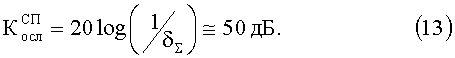 с учетом (12) и минимального расстояния до источника получаем внеполосное превышение динамического диапазона канала