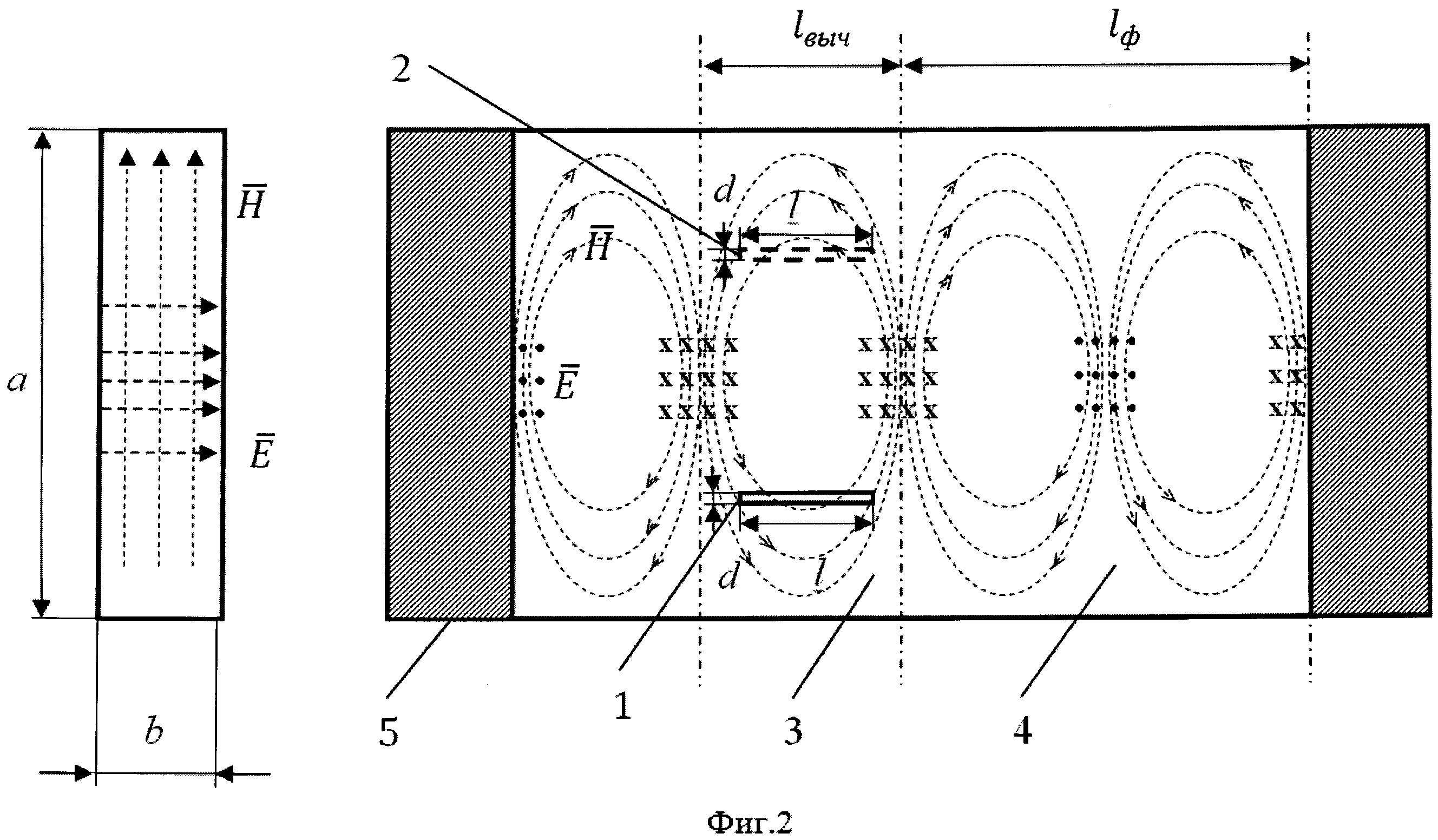 , в результате произвольного электромагнитного воздействия на внутриволноводное пространство не могут быть возбуждены в нем, т.к. главным условием возбуждения определенного типа волн в волноводе является наличие в его сечении соответствующей структуры электромагнитного поля или поверхностных токов [15], а следовательно, соответствующего возбуждающего устройства [16]. Полуволновые щелевые антенны устройства возбуждают в волноводе только один тип волны - H10, который предназначен для переноса информации на несущей частоте. Поэтому все колебания с частотами, большими чем fнес, могут присутствовать в волноводе устройства исключительно в виде ТЕМ-волн, излучаемых из пространства щелей внутрь волновода. При этом, вообще говоря, в прямоугольном волноводе могут распространяться только те ТЕМ-волны, частоты колебаний которых превышают критическую