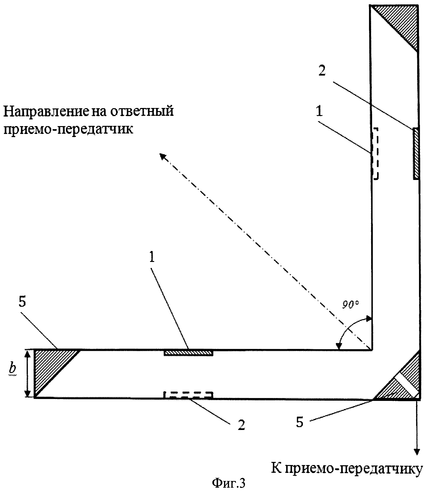 Устройство защиты узкополосных приемно-передающих каналов радиотехнических систем, содержащее основную и дополнительную антенны, соединенные вычитающим элементом, отличающееся тем,что содержит еще N≥1 пару из основной и дополнительной антенн и N≥1 вычитающий элемент, а также (N+1) узкополосных фильтров, которые образуют (N+1) взаимно ортогональных идентичных плеча устройства, состоящих каждое из одной пары основной и дополнительной антенн и последовательно включенных вычитающего элемента и узкополосного фильтра, при этом все антенны выполнены резонансными и идентичны друг другу, антенны попарно - основная и дополнительная - связаны с вычитающим элементом и фильтром, выполненными в виде объединенных отрезков экранированного волновода, в котором установлен режим бегущей волны, связь основной и дополнительной антенн с соответствующим волноводным вычитающим элементом в каждом плече осуществляется таким образом, чтобы синфазные сигналы с этих антенн возбуждали в волноводе противофазные поперечные пучности волноводного распределения электромагнитного поля, причем директрисы диаграмм направленности основной и дополнительной антенн в каждом плече устройства нормальны к плоскостям боковых стенок волновода, на котором они расположены, а их максимумы ориентированы в противоположные стороны, длины волноводных фильтров в плечах устройства равны и составляют не менее одной волноводной длины волны на несущей частоте приемно-передающего канала, а место стыковки плеч устройства соответствует одноименным пучностям продольного распределения электромагнитного поля в соответствующих волноводах и является местом подключения приемо-передатчика, причем ортогонально стыкуемые плечи по отношению к плоскости, в которой лежит биссектриса прямого угла между ними, являются зеркальными отображениями друг друга.