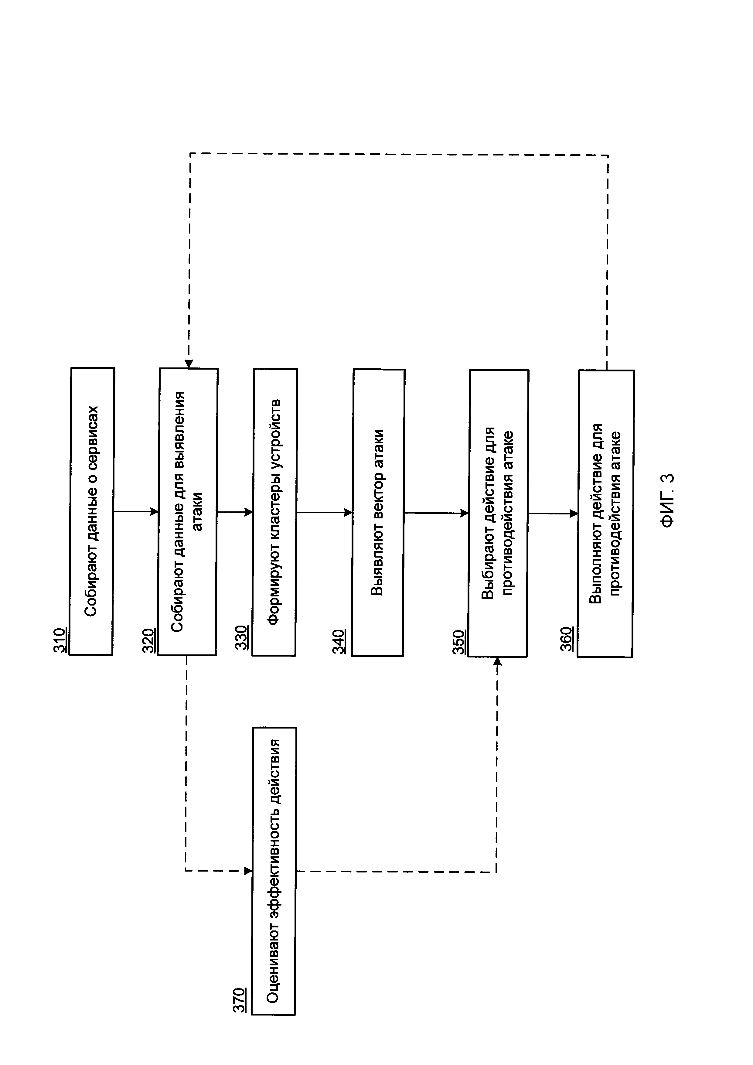 1. Система противодействия атаке на вычислительные устройства, посредством которых пользователи взаимодействуют с сервисами, сохраняющими данные о пользователях, при этом указанная система содержит: i) средство сбора, выполняющееся на каждом вычислительном устройстве и предназначенное для: - сбора данных об упомянутых сервисах, с которыми взаимодействуют пользователи посредством вычислительных устройств; - сбора данных об упомянутых вычислительных устройствах; - сбора данных для выявления атаки, возникающей в результате утечки данных о пользователях с по меньшей мере одного упомянутого сервиса, при этом атака выявляется на основании по меньшей мере одного правила выявления атаки, полученного от средства анализа; - передачи всех собранных данных средству анализа; ii) средство анализа, выполняющееся на удаленном сервере и предназначенное для: - хранения правил выявления атаки на вычислительные устройства и передачи их средству сбора; - формирования кластеров вычислительных устройств, посредством которых пользователи взаимодействуют сервисами, сохраняющими данные о пользователях, на основании данных, полученных от средства сбора; - выявления вектора атаки на основании характеристик вектора атаки; - выбора по меньшей мере одного действия для противодействия атаке, и передаче его средствам противодействия атаке на вычислительные устройства соответствующего кластера в случае выявления совпадения характеристик вектора атаки на по меньшей мере одно устройство другого пользователя, устройства которого входят в соответствующий кластер; iii) средство противодействия атаке, выполняющееся на вычислительных устройствах и предназначенное для выполнения действий для противодействия атаке на вычислительные устройства, полученных от средства анализа. 2. Система по п. 1, в которой данными о пользователях являются персональные данные. 3. Система по п. 1, в которой характеристикой вектора атаки является источник или множество источников атаки. 4. Система по п. 1, в которой характеристикой вектора атаки является элемент или множество элементов, являющихся целью атаки. 5. Система по п. 1, в которой характеристикой вектора атаки является вид воздействия. 6. Система по п. 1, в которой характеристикой вектора атаки является инструмент воздействия. 7. Способ противодействия атаке на вычислительные устройства, посредством которых пользователи взаимодействуют с сервисами, сохраняющими данные о пользователях, реализуемый с помощью упомянутых средств и содержащий этапы, на которых: - собирают данные об упомянутых сервисах, с которыми взаимодействуют пользователи посредством вычислительных устройств, и данные об упомянутых устройствах; - собирают данные для выявления атаки, возникающей в результате утечки данных о пользователях с по меньшей мере одного упомянутого сервиса, при этом атака выявляется на основании по меньшей мере одного правила выявления атаки; - формируют кластеры вычислительных устройств, посредством которых пользователи взаимодействуют сервисами, сохраняющими данные о пользователях, на основании собранных данных: - выявляют вектор атаки на основании характеристик вектора атаки; - выбирают по меньшей мере одно действие для противодействия атаке и передают на устройства соответствующего кластера в случае выявления 