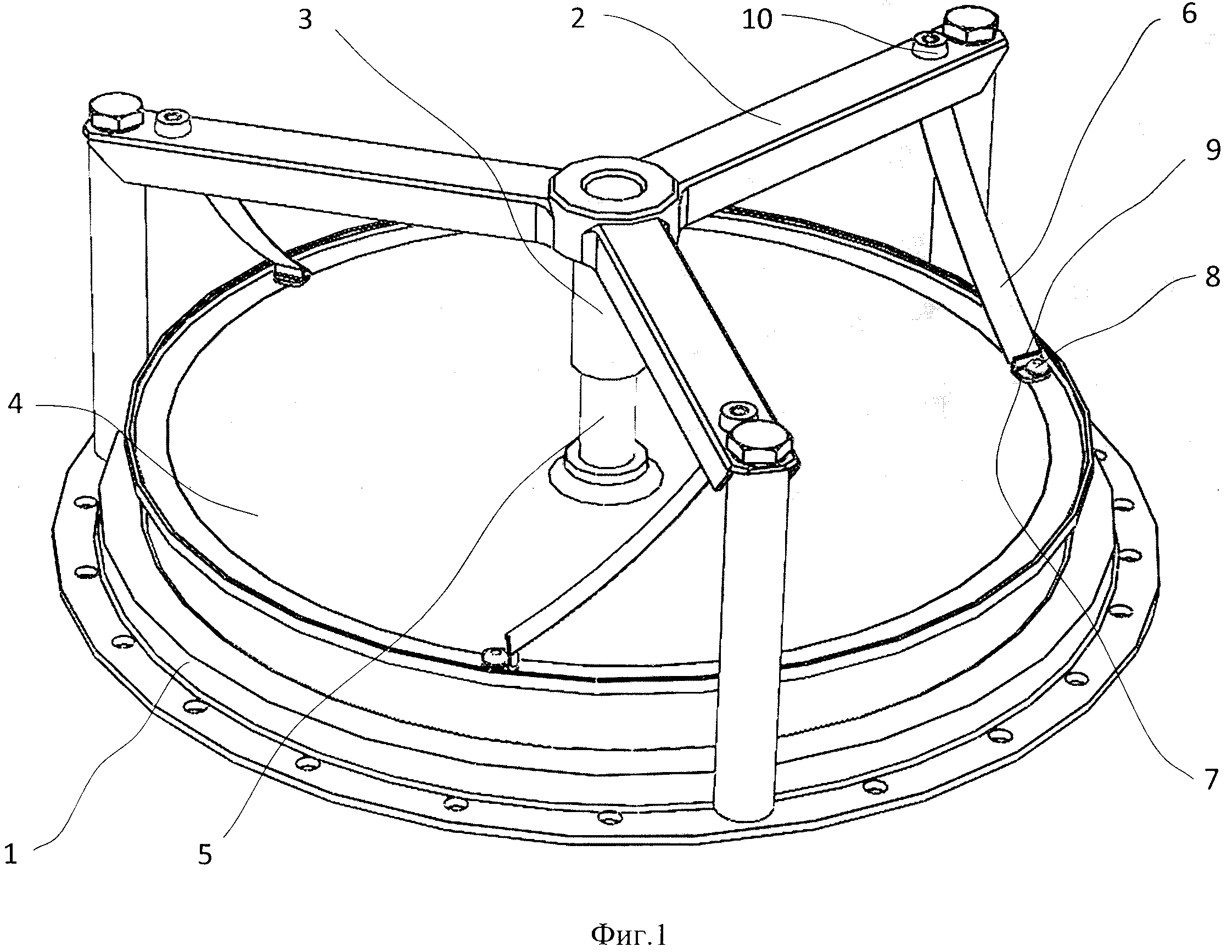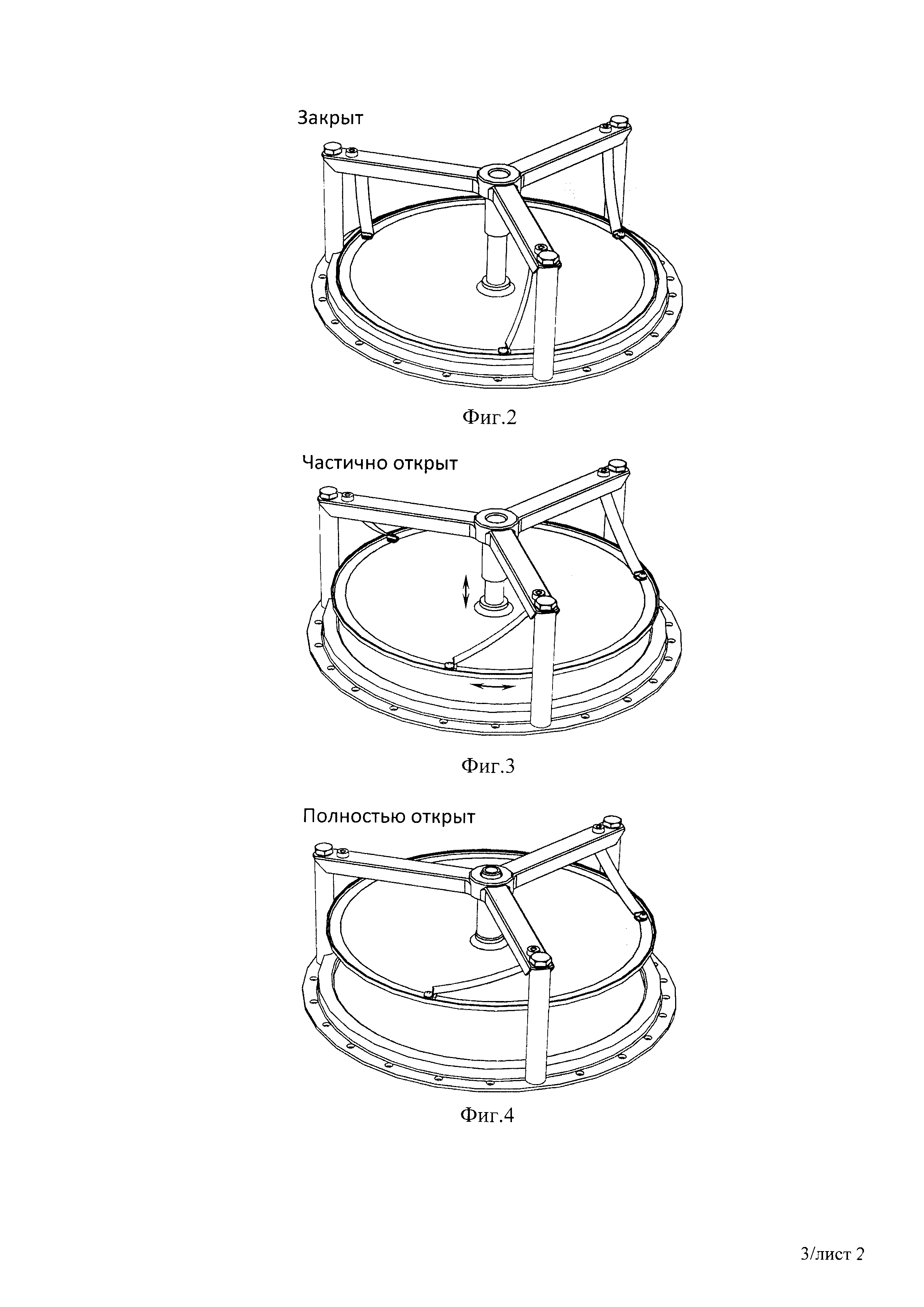Изобретение относится к авиации, в частности к воздухоплаванию, а именно к устройству автоматических газовых клапанов дирижабля. Автоматические газовые клапаны дирижабля используются для автоматического выпуска газа из оболочки во избежание ее разрушения, когда внутреннее давление превышает допустимое. Автоматический газовый клапан должен удовлетворять группе важных требований: - равнопрочность элементов конструкции; - малый общий вес и минимальный вес подвижных деталей кинематики; - простота конструкции при минимальном количестве деталей; - надежность и безударность действия кинематики; - сравнительно невысокая себестоимость изготовления; - длительная герметичность в условиях эксплуатации; - исключение возможности перекоса между посадочным поясом тарелки и седла клапана; - невозможность самопроизвольного открытия клапана от инерционных сил при пространственных эволюциях дирижабля; - низкое аэродинамическое сопротивление; - доступность для осмотра и регулировки; - простота монтажа и демонтажа. Известно устройство автоматического газового клапана дирижабля (Ю.С. Бойко «Воздухоплавание в изобретениях». М.: Транспорт. 1999 г., Патент Германии №365960, с. 89, рис. 75. Клапан фирмы Цеппелин), в котором тарелка клапана через шкив и ролики подвешена на тросах, а сам шкив посредством пружины связан с корпусом. Недостатком этого устройства автоматического газового клапана является ударная посадка тарелки клапана на седло в момент закрытия проходного сечения, что способствует случайному распределению удельной нагрузки по контактирующей поверхности посадочного пояса, ее неравномерному износу и, в конечном итоге, создает высокую вероятность нарушения герметичности уплотнения клапана. Нарушение герметичности приводит к росту потерь несущего газа из оболочки и сопровождается уменьшением подъемной силы дирижабля. Это особенно опасно при полетах с большим удалением от аэропортов или мест базирования. Известно устройство автоматического газового клапана дирижабля (Ю.С. Бойко «Воздухоплавание в изобретениях». М.: Транспорт. 1999 г., Патент Германии №365960, с. 87, рис. 73), в котором тарелка клапана подвешена непосредственно на пружине. Недостатком этого устройства автоматического газового клапана является прямая зависимость рабочего хода тарелки клапана от силы растяжения пружины при открытии проходного сечения. В такой конструкции неизбежные пульсации давления истекающего потока возбуждают автоколебания тарелки клапана относительно корпуса. В качестве прототипа выбрано устройство автоматического газового клапана дирижабля (Ю.С. Бойко «Воздухоплавание в изобретениях». М.: Транспорт. 1999 г., Патент Германии №365960, с. 89, рис. 75. Клапан фирмы Цеппелин). Основным недостатком этого устройства является ударная посадка тарелки клапана на седло в момент закрытия проходного сечения с высокой вероятностью наступления отмеченных выше последствий. Автоколебания тарелки клапана относительно корпуса у прототипа предотвращаются уменьшением плеча между осью вращения шкива и линией действия силы сопротивления пружины в процессе открытия клапана. Принцип переменного плеча для силы сопротивления пружины характерен для большинства современных газовых клапанов дирижаблей и в том или ином исполнении всегда должен быть обеспечен при создан