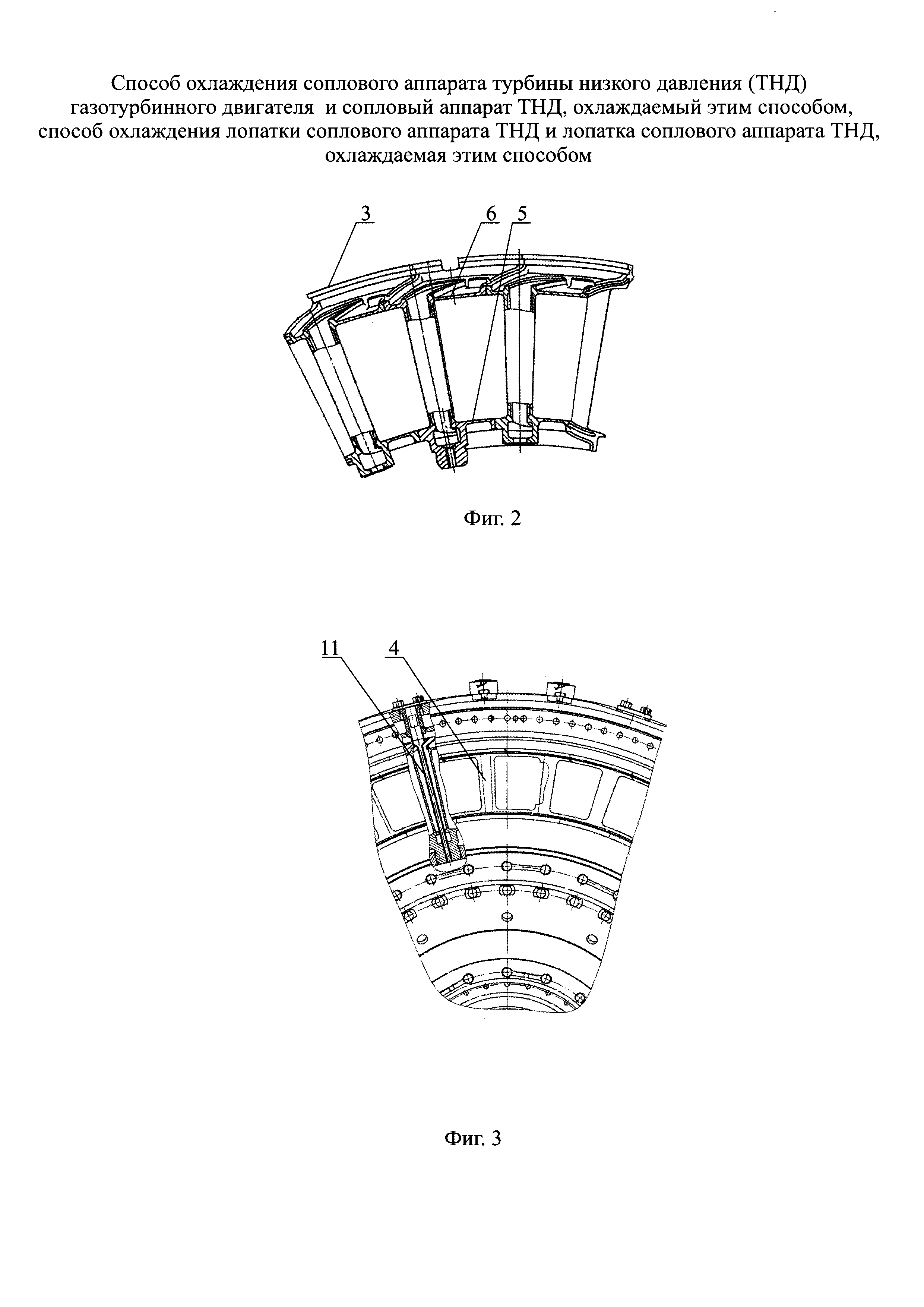 Группа изобретений относится к области авиадвигателестроения, а именно к способу охлаждения соплового аппарата турбины низкого давления газотурбинного двигателя (ГТД) в составе газотурбинной установки газоперекачивающего агрегата. Известен способ охлаждения соплового аппарата охлаждаемой турбины, включающего наружное и внутреннее кольца, сопловые лопатки с опорными полками. Лопатки выполнены с выпуклой и вогнутой стенками пера. Стенки лопатки выполнены с оребрением и содержат дефлекторы с образованием охлаждающих каналов. Охлаждающий дефлектор выполнен с перфорационными отверстиями (Н.Н. Сиротин, А.С.Новиков, А.Г. Пайкин, А.Н. Сиротин. Основы конструирования производства и эксплуатации авиационных газотурбинных двигателей и энергетических установок в системе CALS технологий. Книга 1. Москва. Наука 2011. стр. 547-552). Известен способ охлаждения соплового аппарата охлаждаемой турбины, включающего сопловые лопатки с внутренними полостями, сообщенными с системой охлаждения. В сопловых лопатках размещены дефлекторы. Коллектор канала охлаждения междисковой полости турбин высокого и низкого давления отделен от внутренних полостей сопловых лопаток и соединен с входным коллектором через транзитные трубки, установленные во внутренних полостях лопаток. Сопловые лопатки сгруппированы в блоки. Транзитные трубки установлены по одной на каждый блок (RU 2450142 С1, опубл. 10.05.2012). Известен способ охлаждения соплового аппарата, включающего сопловые лопатки охлаждаемой турбины, выполненные в виде конструктивного элемента, ограниченного верхней и нижней полками. Лопатки выполнены с вогнутой и выпуклой стенками пера, содержат раздаточные полости и дефлекторы с образованием охлаждающих каналов. Стенки лопатки и охлаждающий дефлектор выполнены с перфорационными отверстиями (RU 2514818 С1, опубл. 10.05.2014). К недостаткам известных решений относятся повышенная конструктивная сложность соплового аппарата, недостаточная конструктивная проработанность системы охлаждения наиболее теплонапряженных участков соплового аппарата, неадаптированность конкретно к техническим решениям ГТД газоперекачивающего агрегата, сложность получения компромиссного сочетания повышенных значений КПД и ресурса двигателя с одновременным повышением компактности и снижением материале- и энергоемкости. Задача, решаемая группой изобретений, объединенных единым творческим замыслом, состоит в повышении эффективности охлаждения лопаток соплового аппарата и ротора ТНД стационарного газотурбинного двигателя авиационного типа в составе газоперекачивающих агрегатов для транспортировки газа или в газотурбинной электростанции. Поставленная задача решается тем, что в способе охлаждения соплового аппарата турбины низкого давления (ТНД) газотурбинного двигателя (ГТД) в составе газотурбинной установки (ГТУ) газоперекачивающего агрегата (ГПА), согласно изобретению, сопловый аппарат ТНД подвергают воздушному охлаждению, при этом охлаждающий воздух подают из воздуховоздушного теплообменника (ВВТ) во входной коллектор тракта воздушного охлаждения СА, образованный полым корпусом наружного кольца СА и наделенный не менее чем двумя входными отверстиями, выполненными во внешнем цилиндрическом кольцевом элементе последнего, из входного коллектора не менее половины п