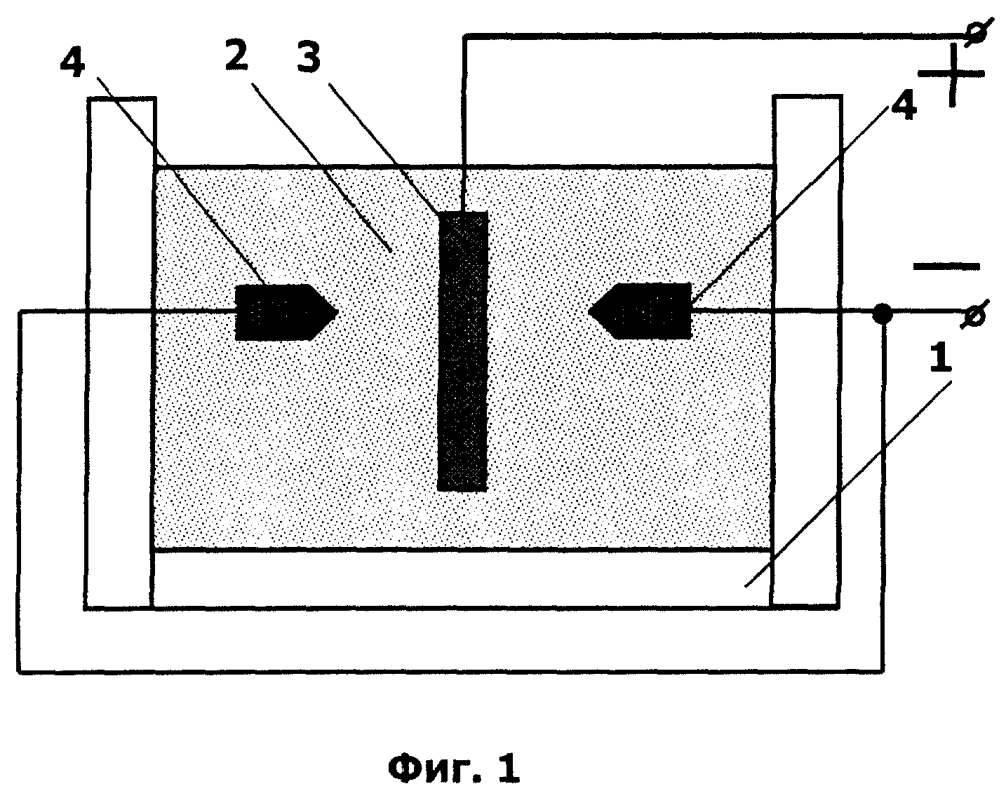 установлены платиновые катоды 4. Пластина 3 соединена с положительным полюсом источника электропитания (не показан). В качестве материала исходной монокристаллической пластины могут быть взяты