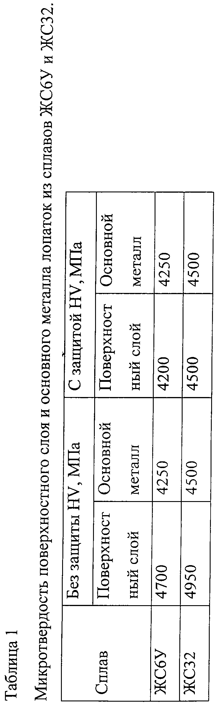 пределы заявленной дисперсности резко снижает прочностные характеристики лопатки из-за образования на ее поверхности окисленного слоя. Применение заявленного способа защиты поверхности